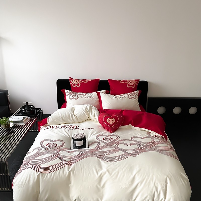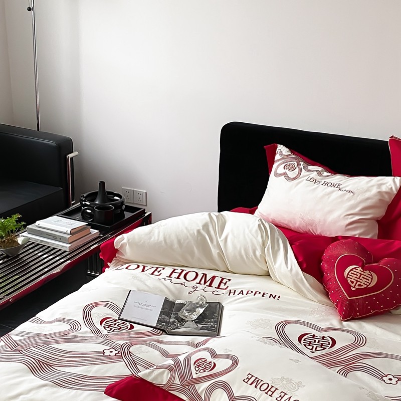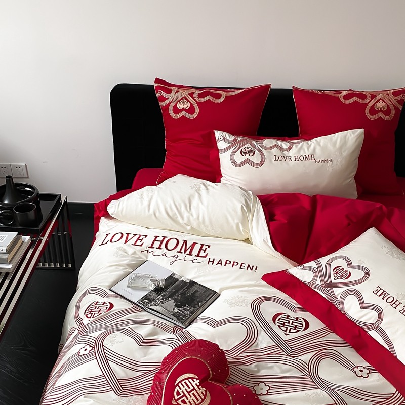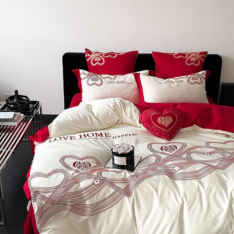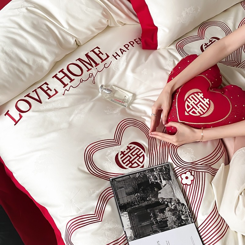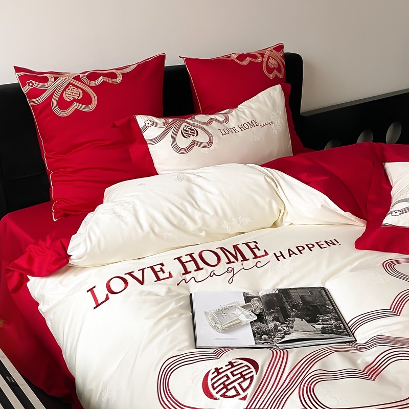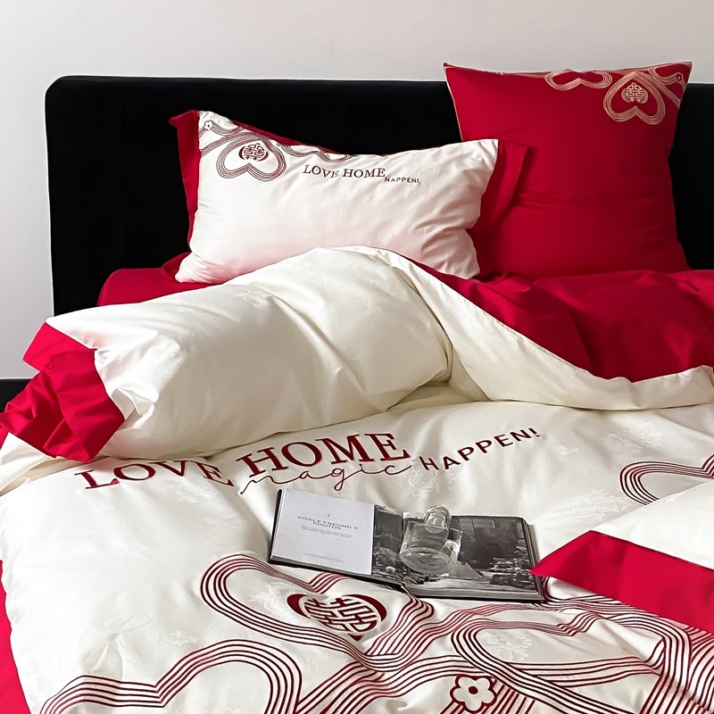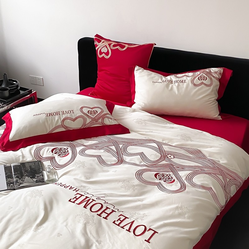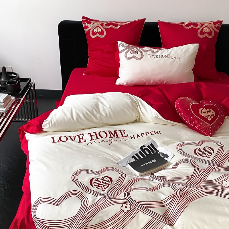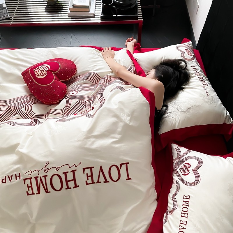 (总)用心 2026年新款双面长绒棉提花婚庆刺绣四件套,喜上喜,禧爱,吉祥