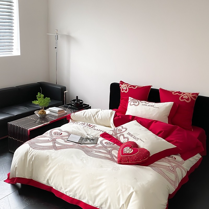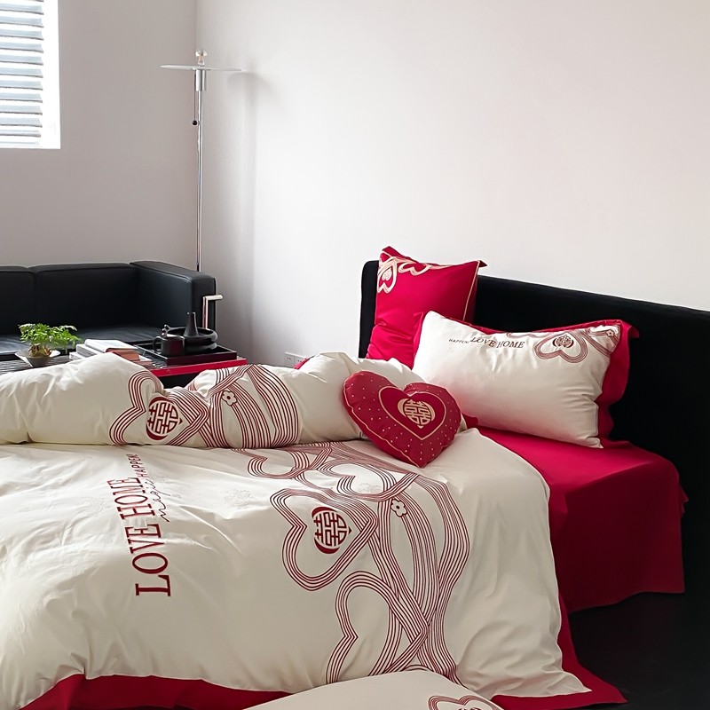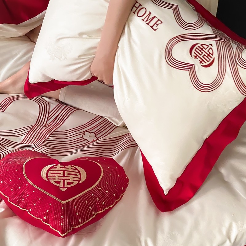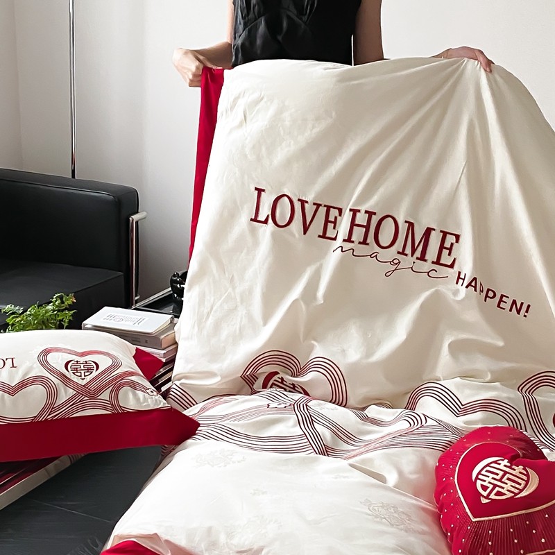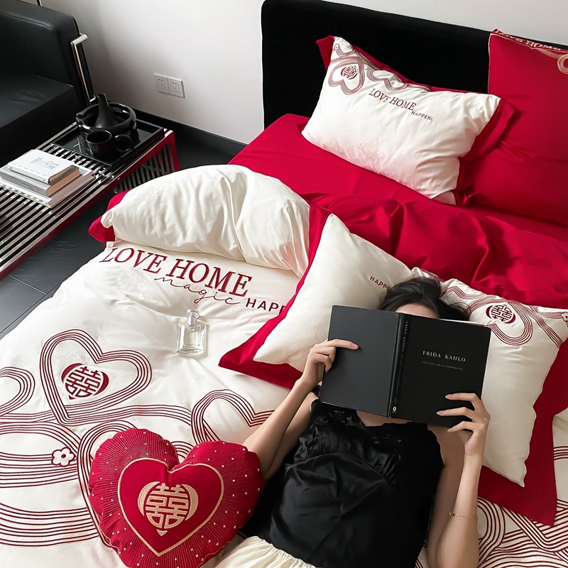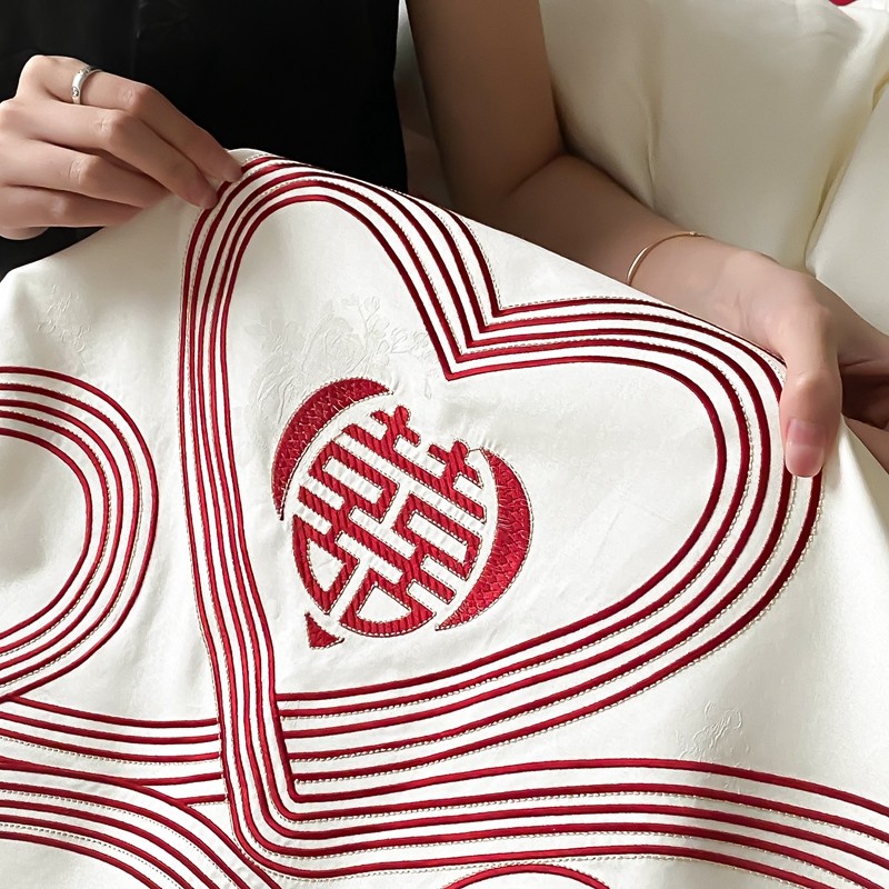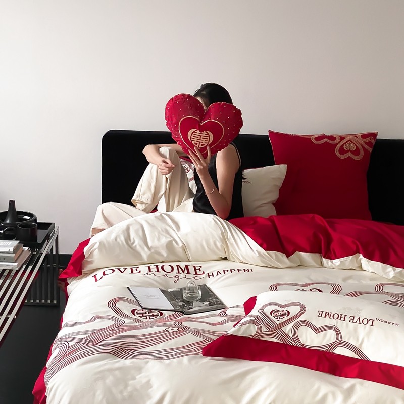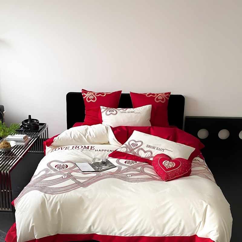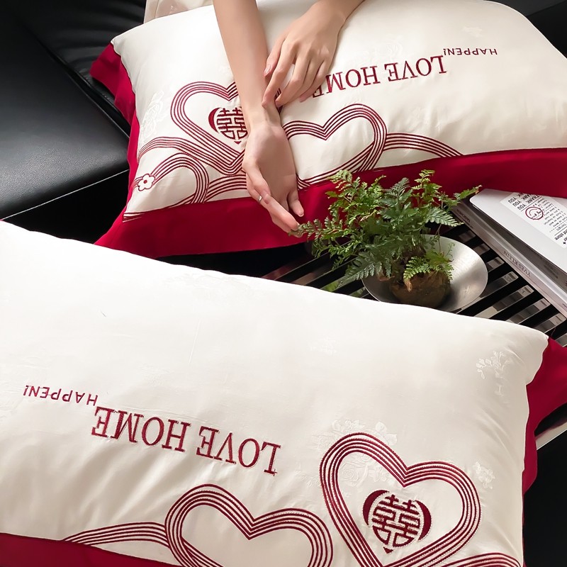 (总)用心 2026年新款双面长绒棉提花婚庆刺绣四件套,喜上喜,禧爱,吉祥