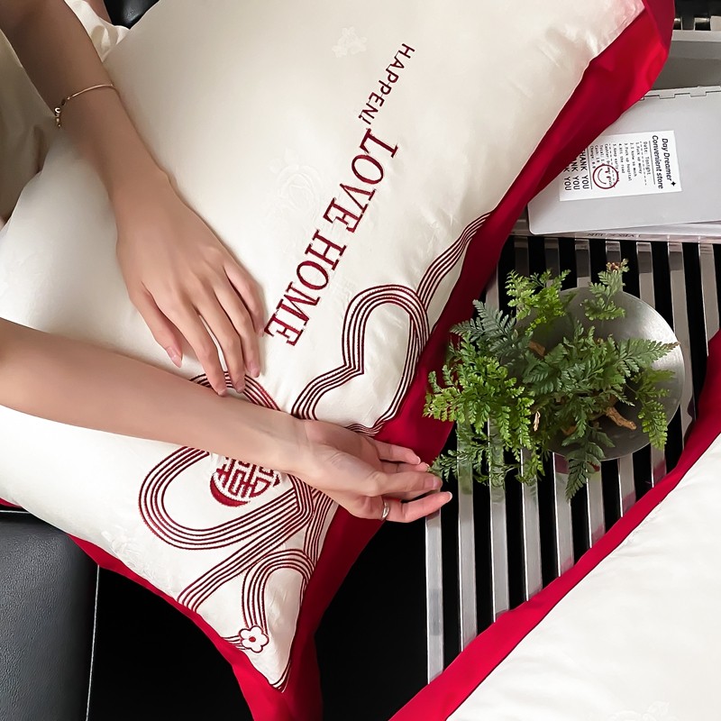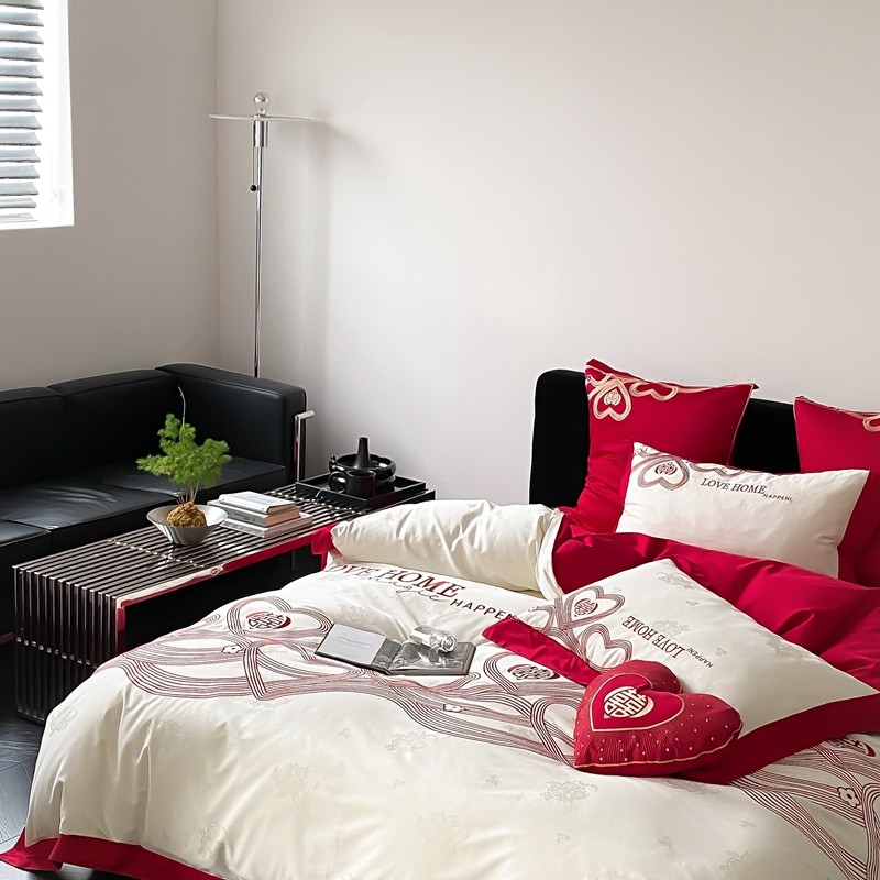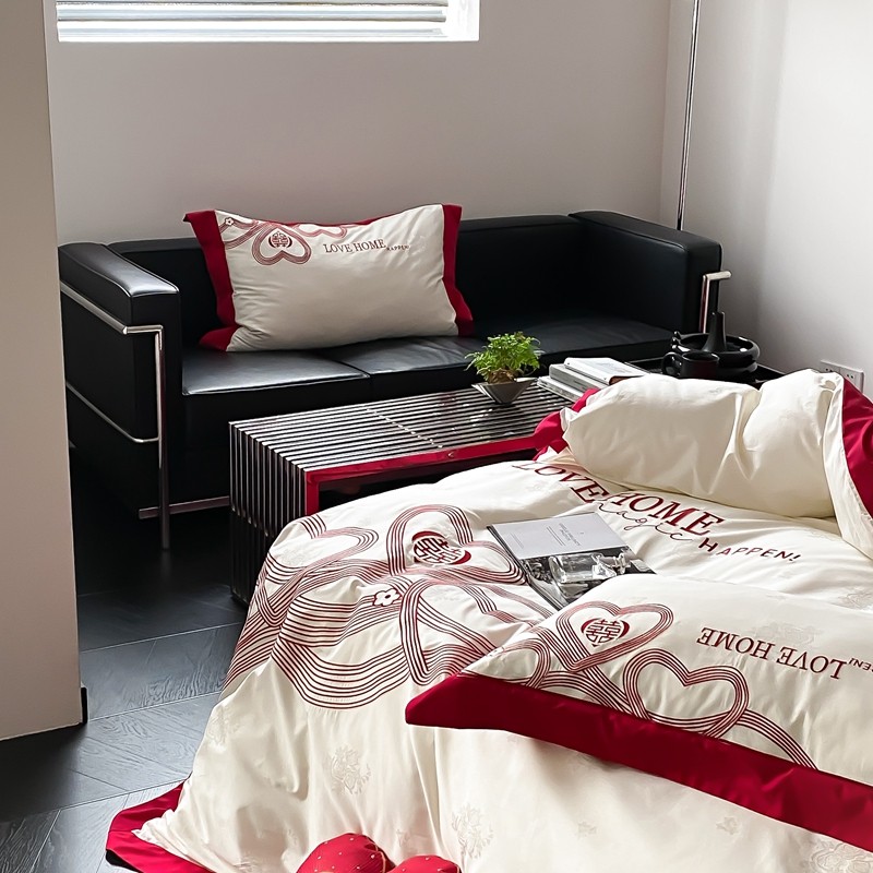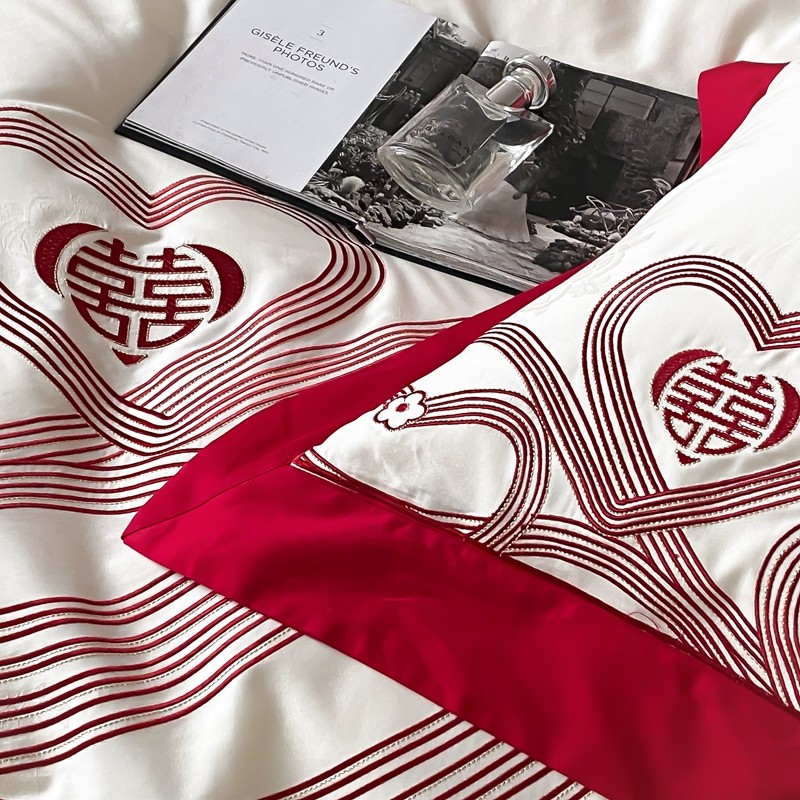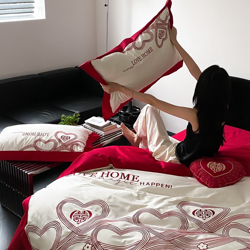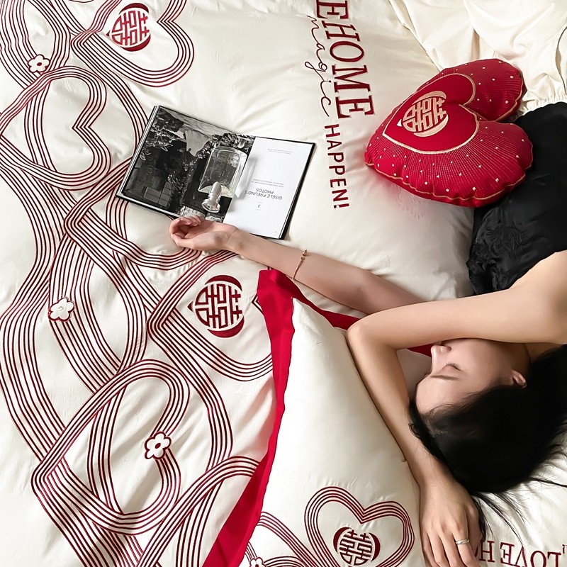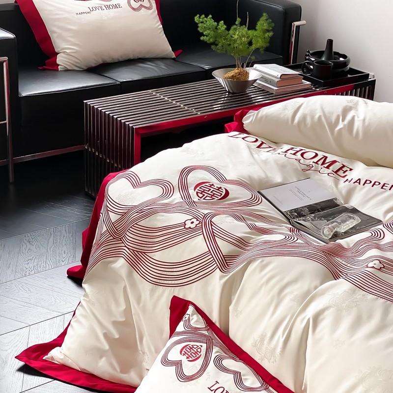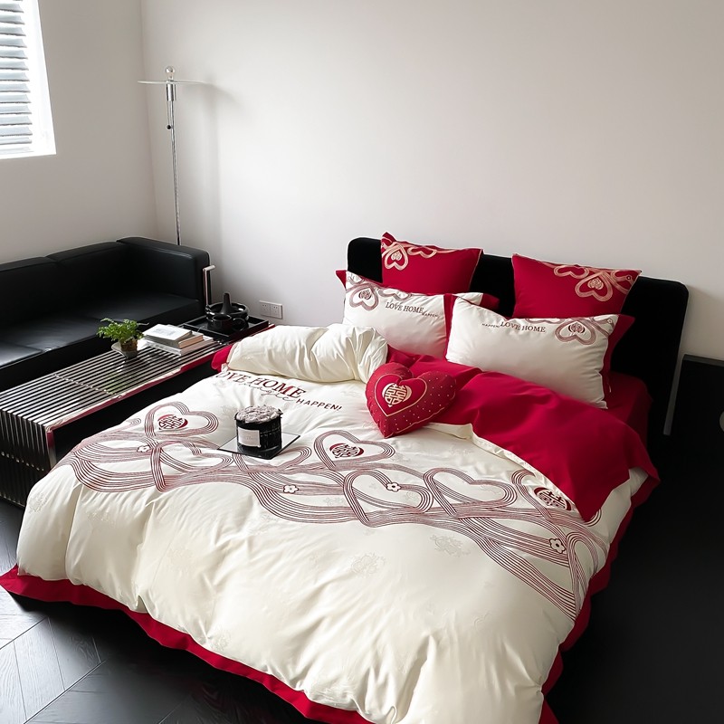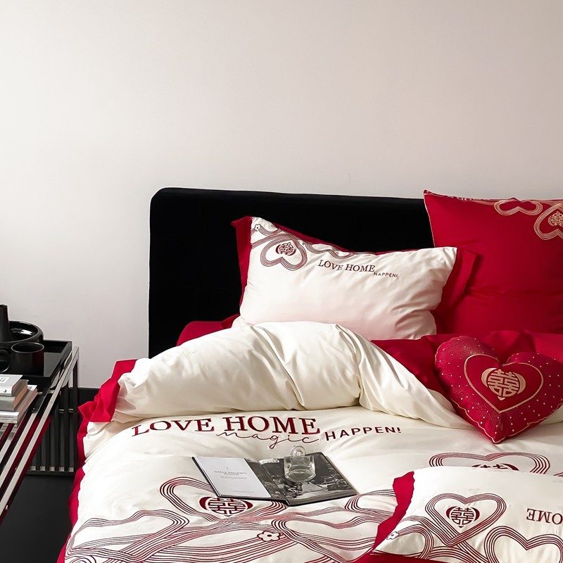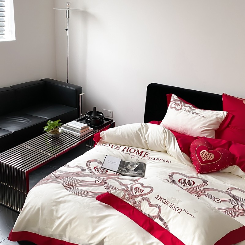 (总)用心 2026年新款双面长绒棉提花婚庆刺绣四件套,喜上喜,禧爱,吉祥