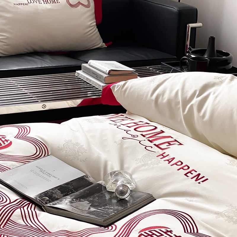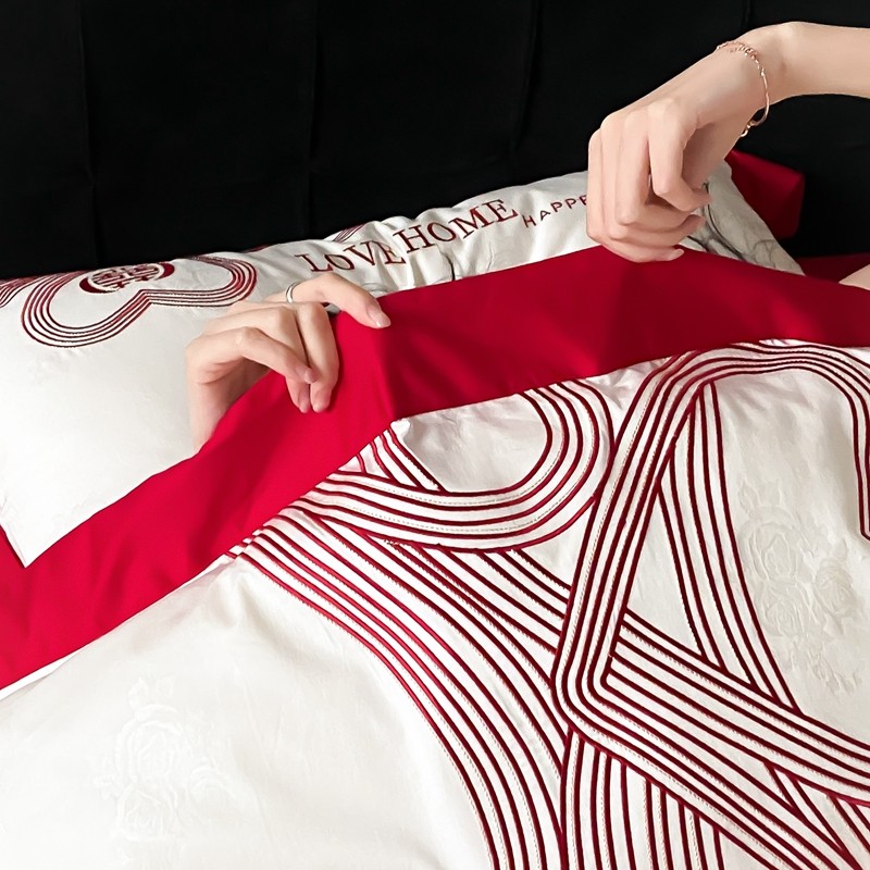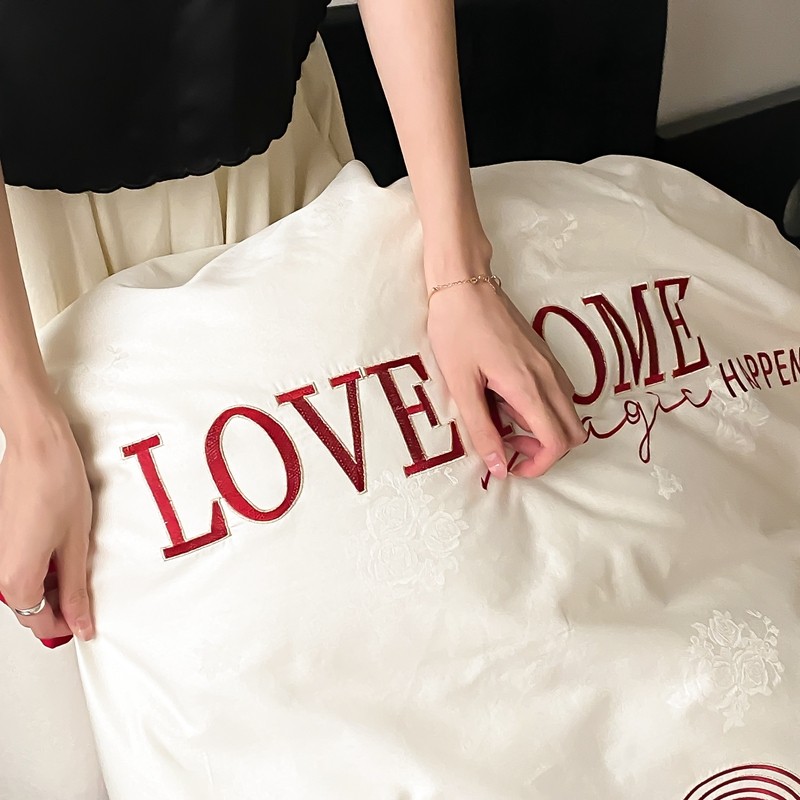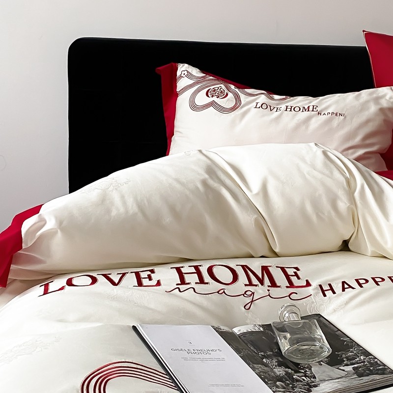 用心 2023新款长绒棉提花高端刺绣家居婚庆四件套 爱的小屋
