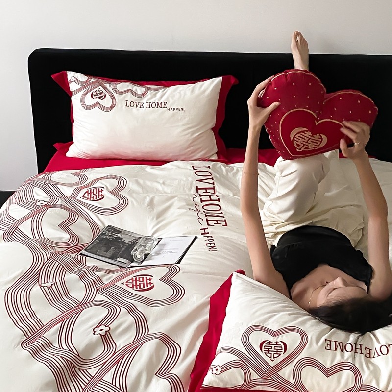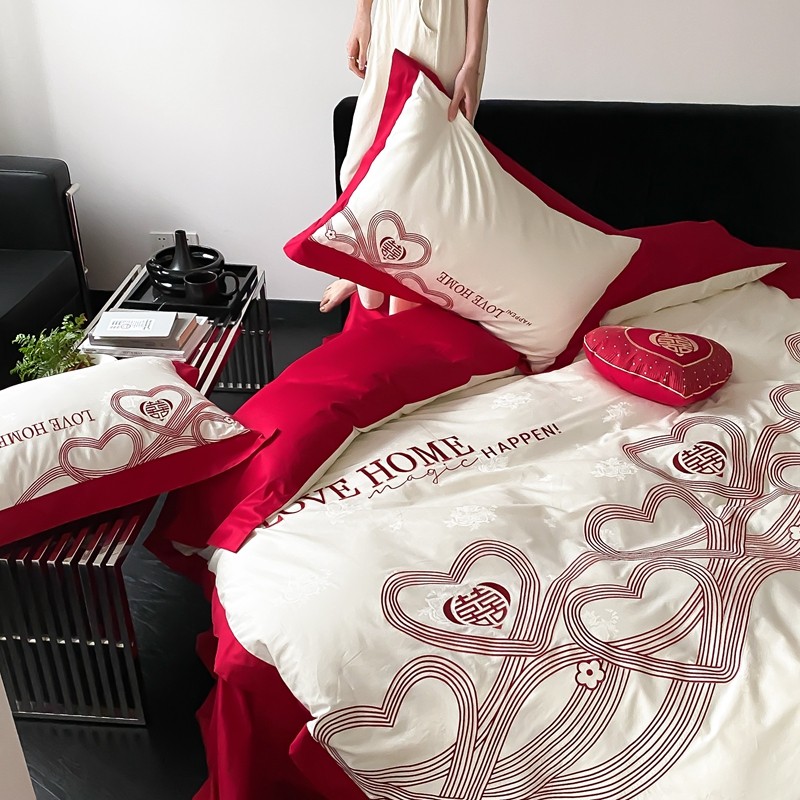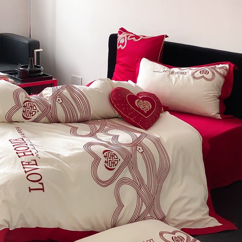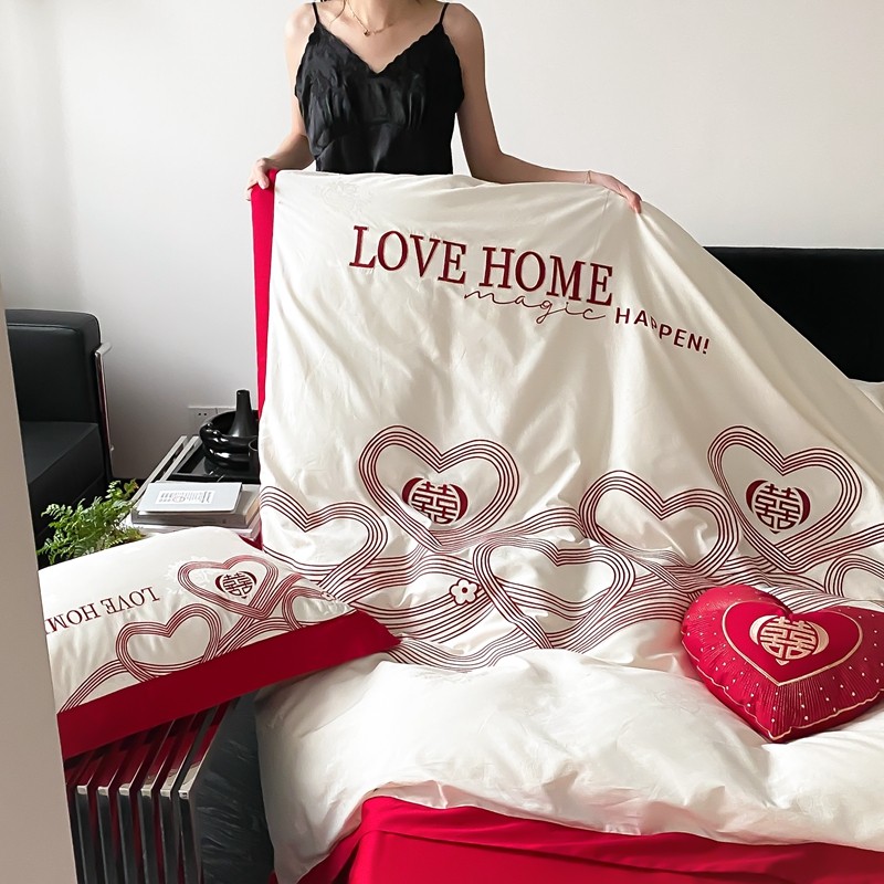 (总)用心 2022新款磨毛刺绣婚庆四件套,今生缘,甜蜜love,喜迎圆满