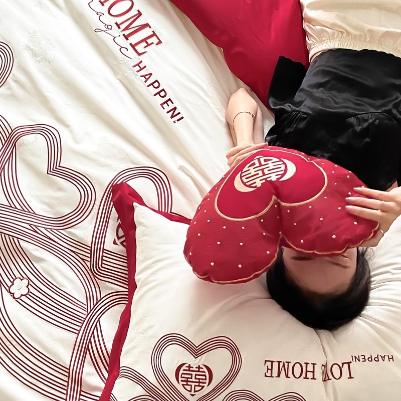 用心 2022新款数码印花婚庆四件套,云喜