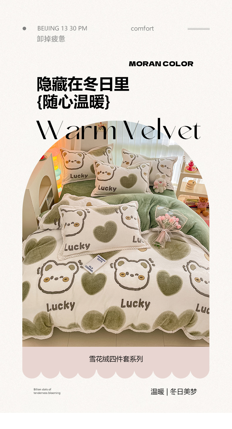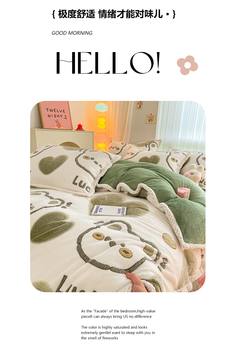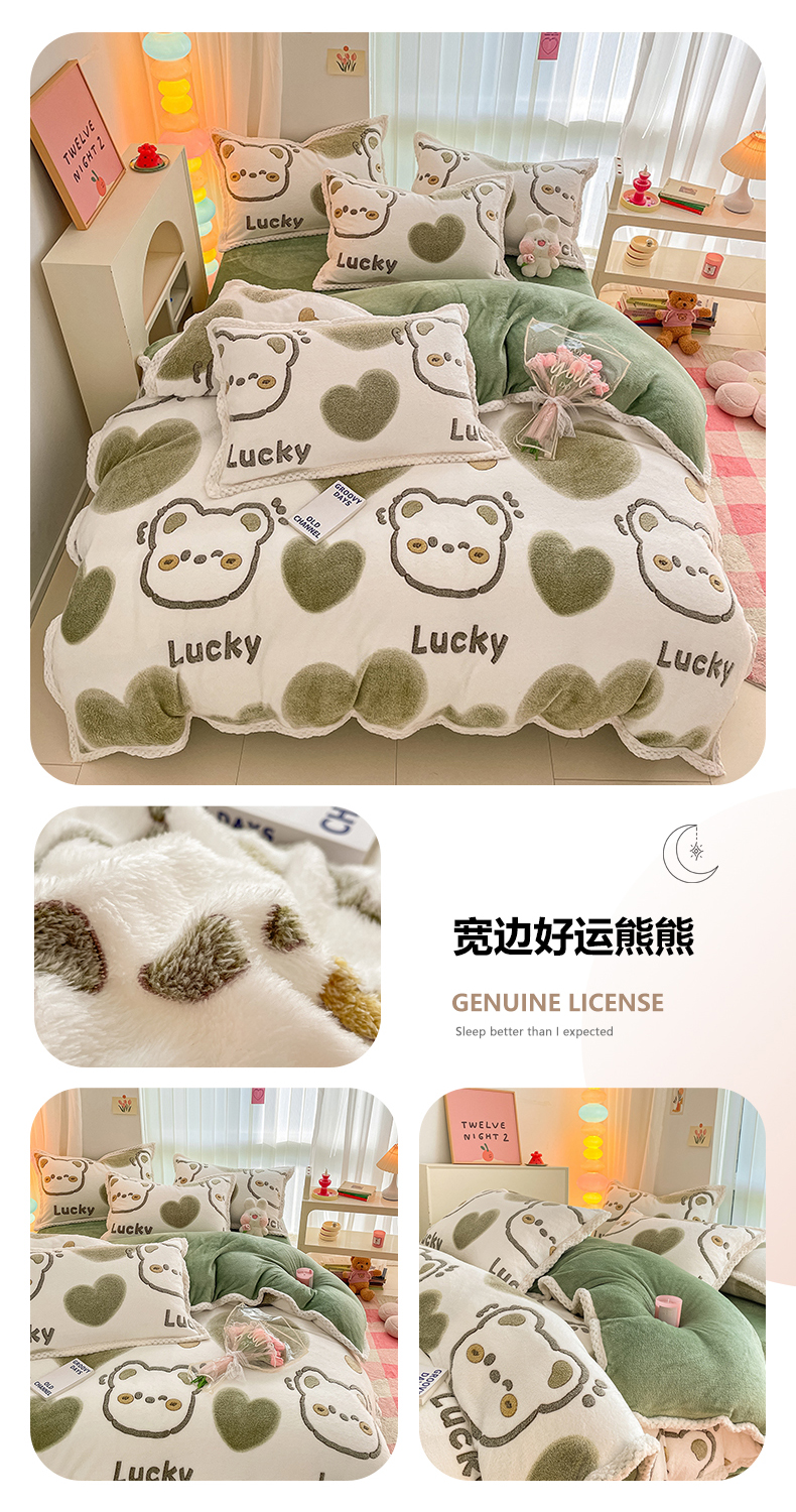 当前位置: 91家纺网 > 商品网购 > 床品套件 > 四件套 > 牛奶绒四件套 > 川悦生活 2023新款立体雪花绒宽边四件套 宽边好运熊熊