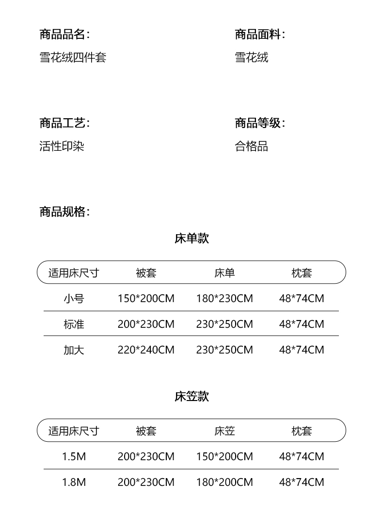 1.8m床笠款四件套 | ¥105.00 |