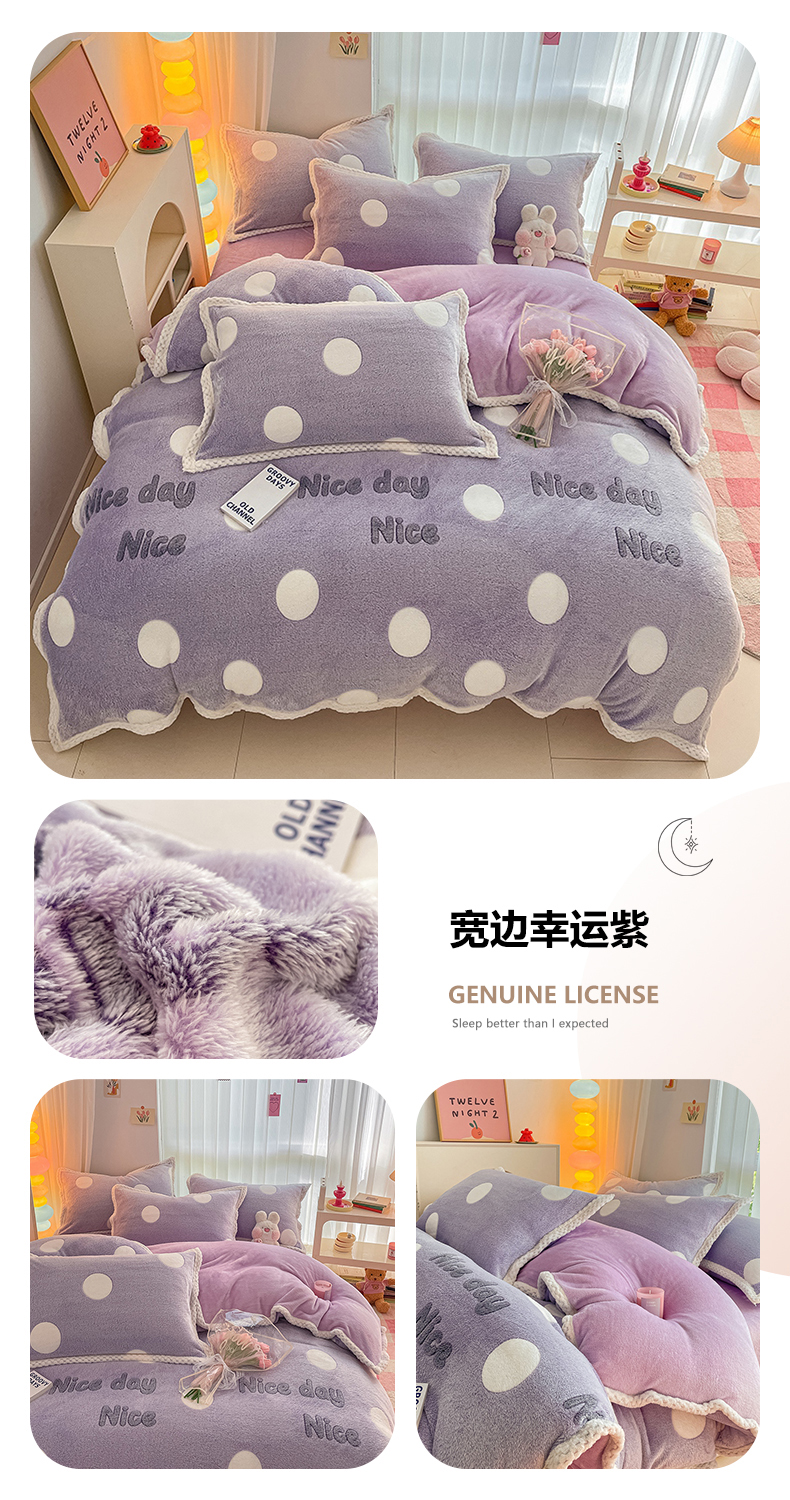 当前位置: 91家纺网 > 商品网购 > 床品套件 > 四件套 > 牛奶绒四件套 > 川悦生活 2023新款立体雪花绒宽边四件套 宽边幸运紫