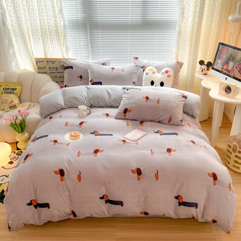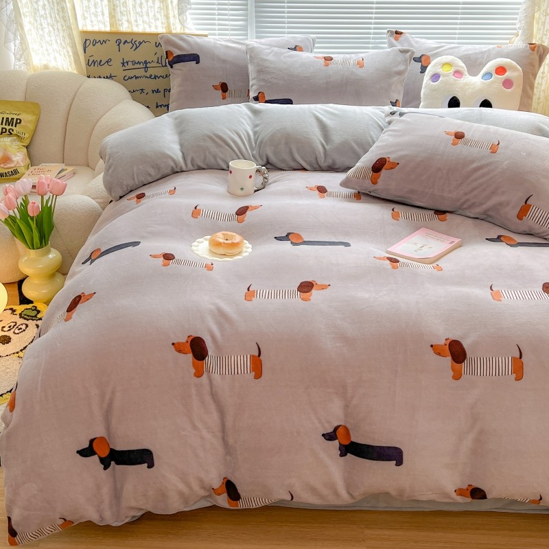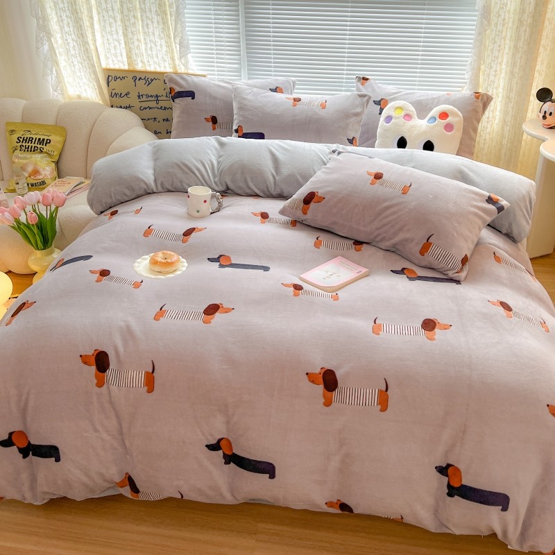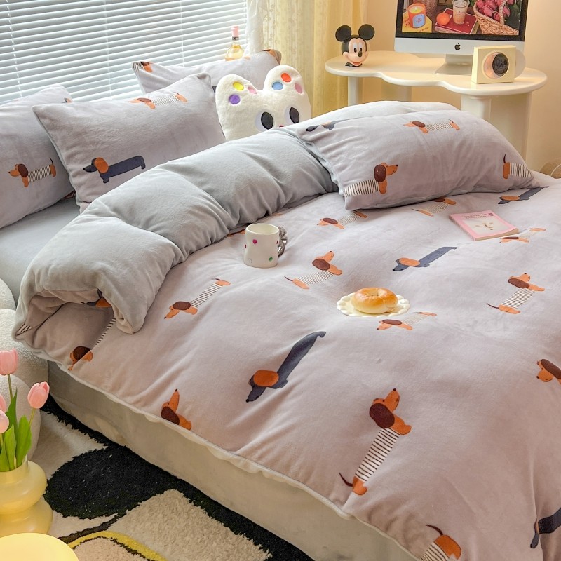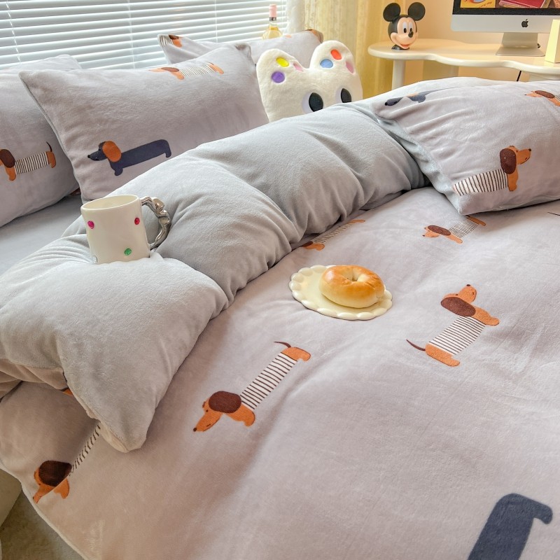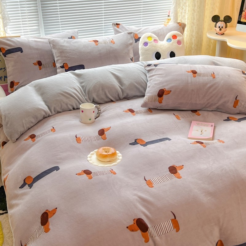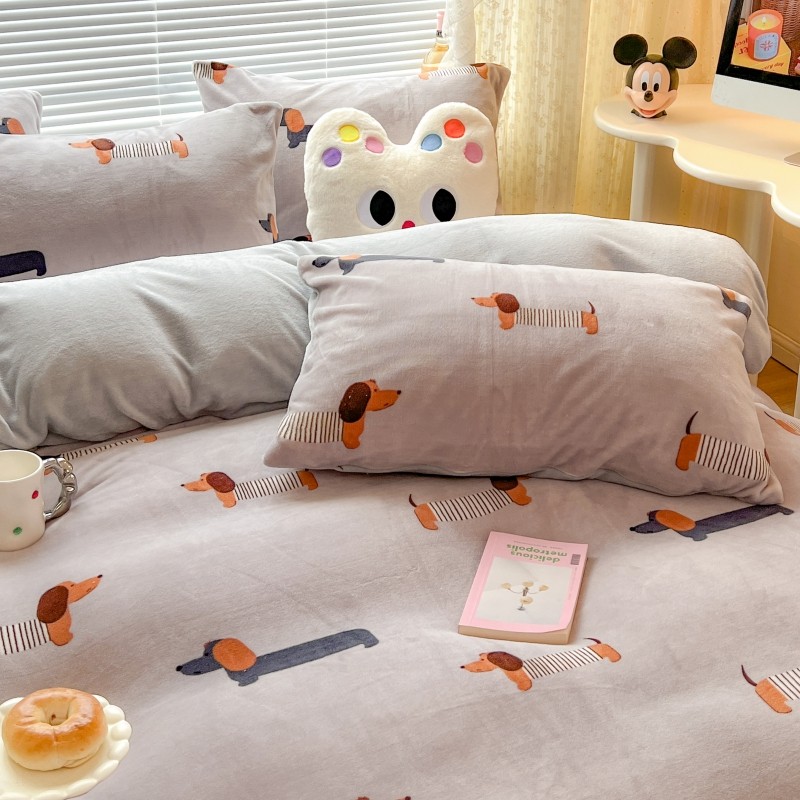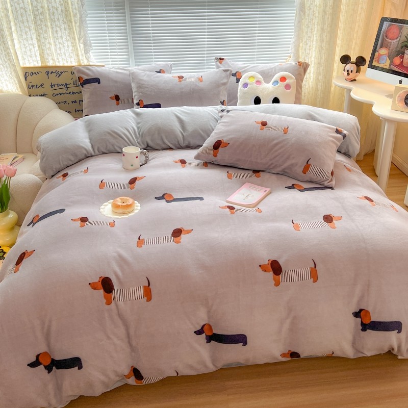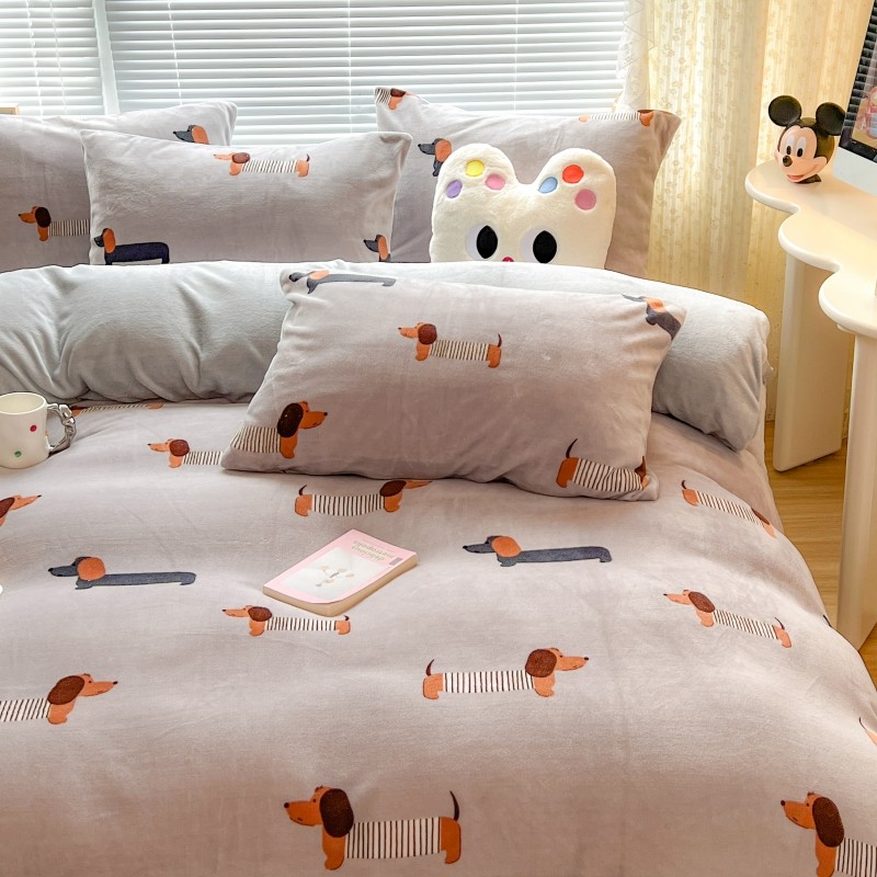 顾里 2023新款ins少女保暖牛奶绒奶油治 愈系四件套第 一批 腊肠狗