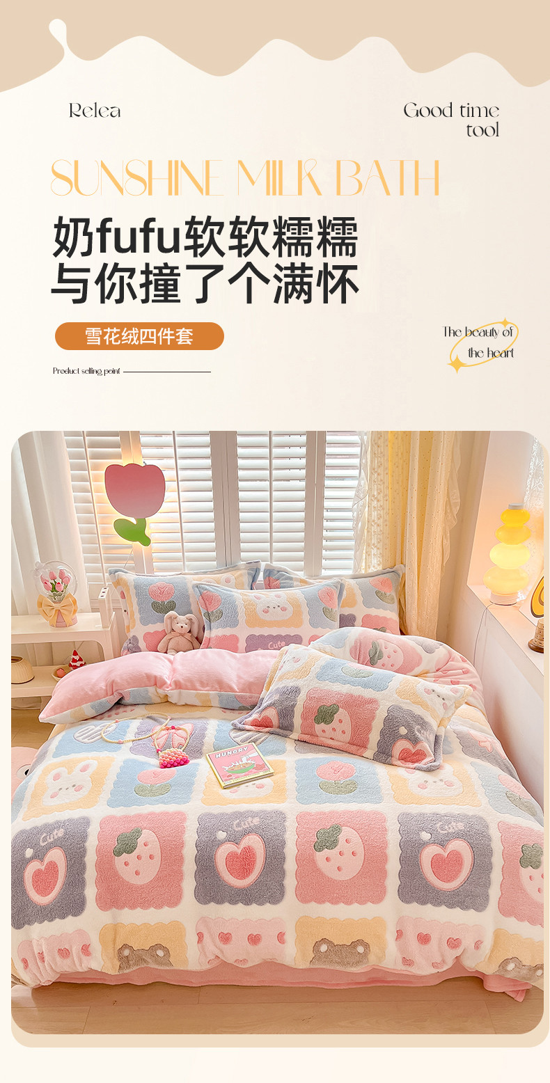 (总)川悦生活 2025新款立体雪花绒印花四件套学生床系列一场景一,ins樱桃,爱米兔,冰激凌小熊,波波熊,啵啵草莓,彩虹爱心粉,彩虹爱心蓝,彩虹爱语粉,彩虹爱语蓝,哒哒鸭丫,嘎嘎小熊,橘兔,可爱熊,可可小狗,快乐鸭鸭,蜜语奶兔,奶芙小花,奶咖小熊,奶味云朵,妮娜兔,巧克力熊,桃心爱语,甜蜜日常粉,甜系粉熊,甜系龙龙,小熊花园,幸福甜兔,熊小巴,郁金奶兔