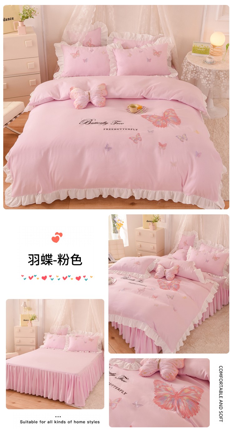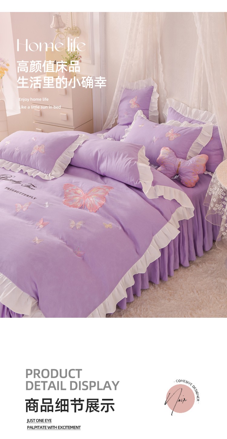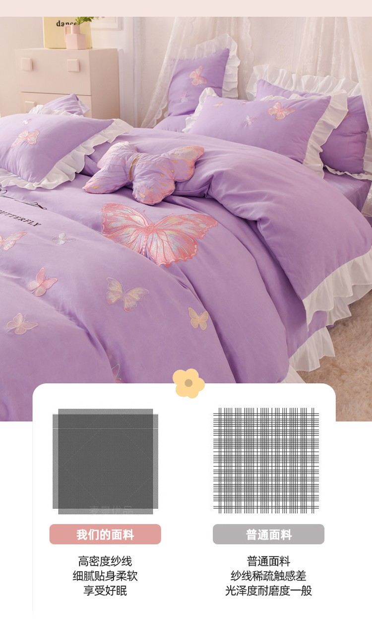 (总)欧冠 2023新款秋冬保暖云锦棉刺绣花边羽蝶系列四件套