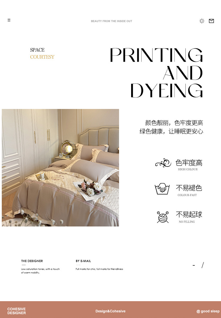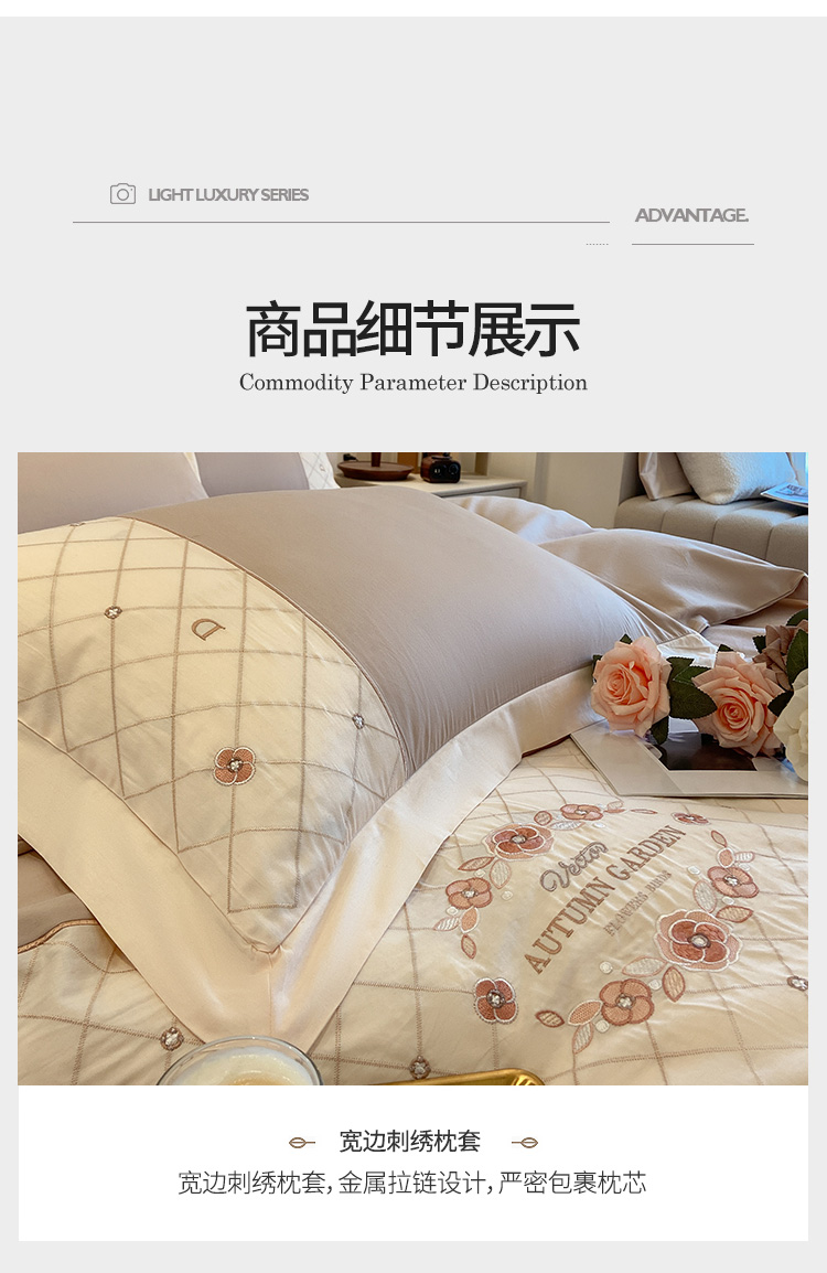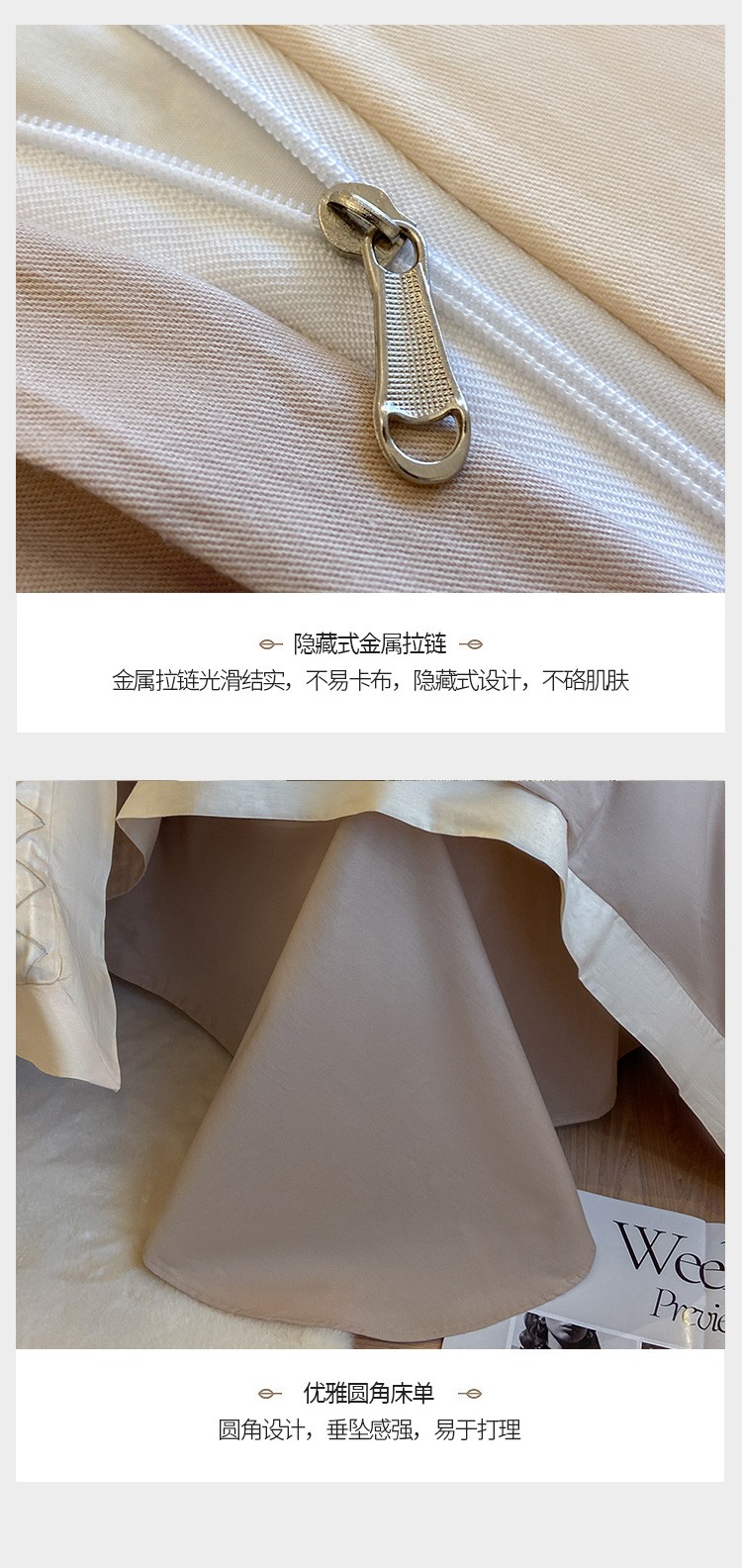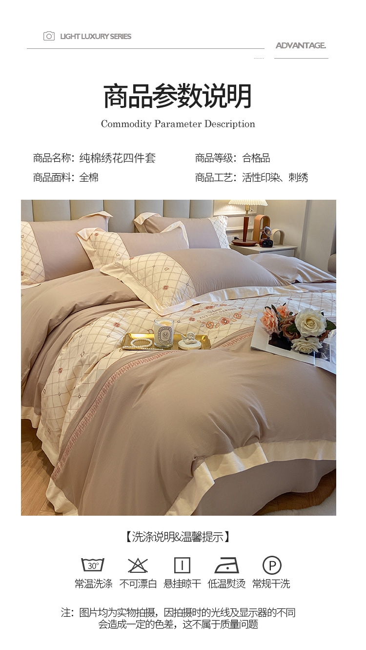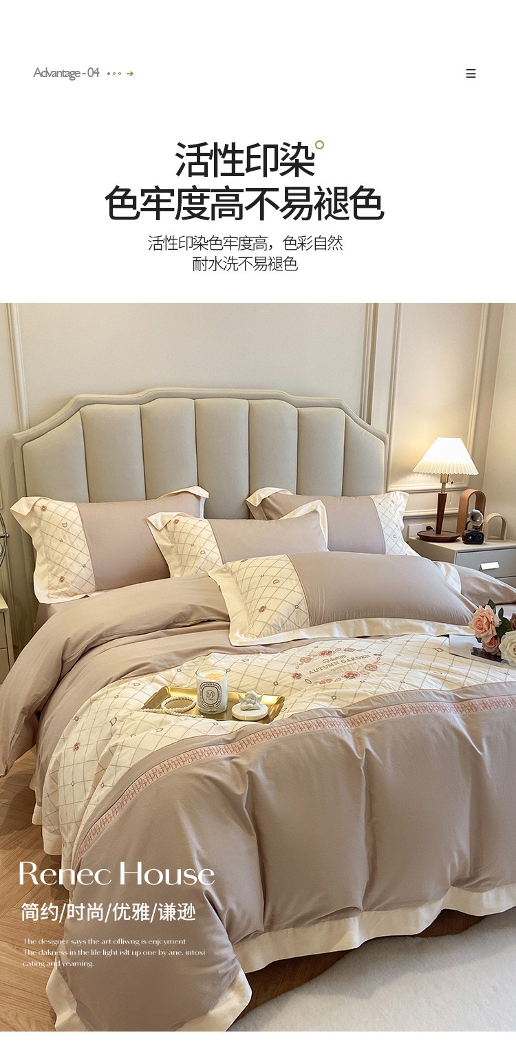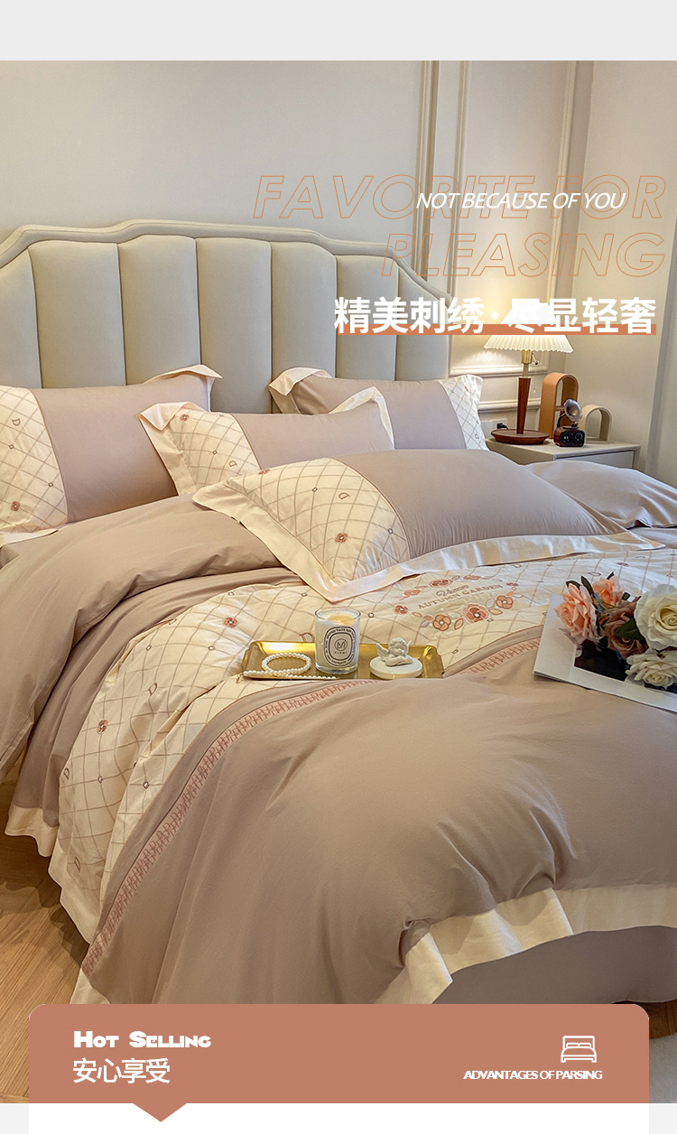 商品名称:欧冠 2023秋冬保暖60S全棉刺绣拼接菲曼系列四件套 菲曼-奶咖色