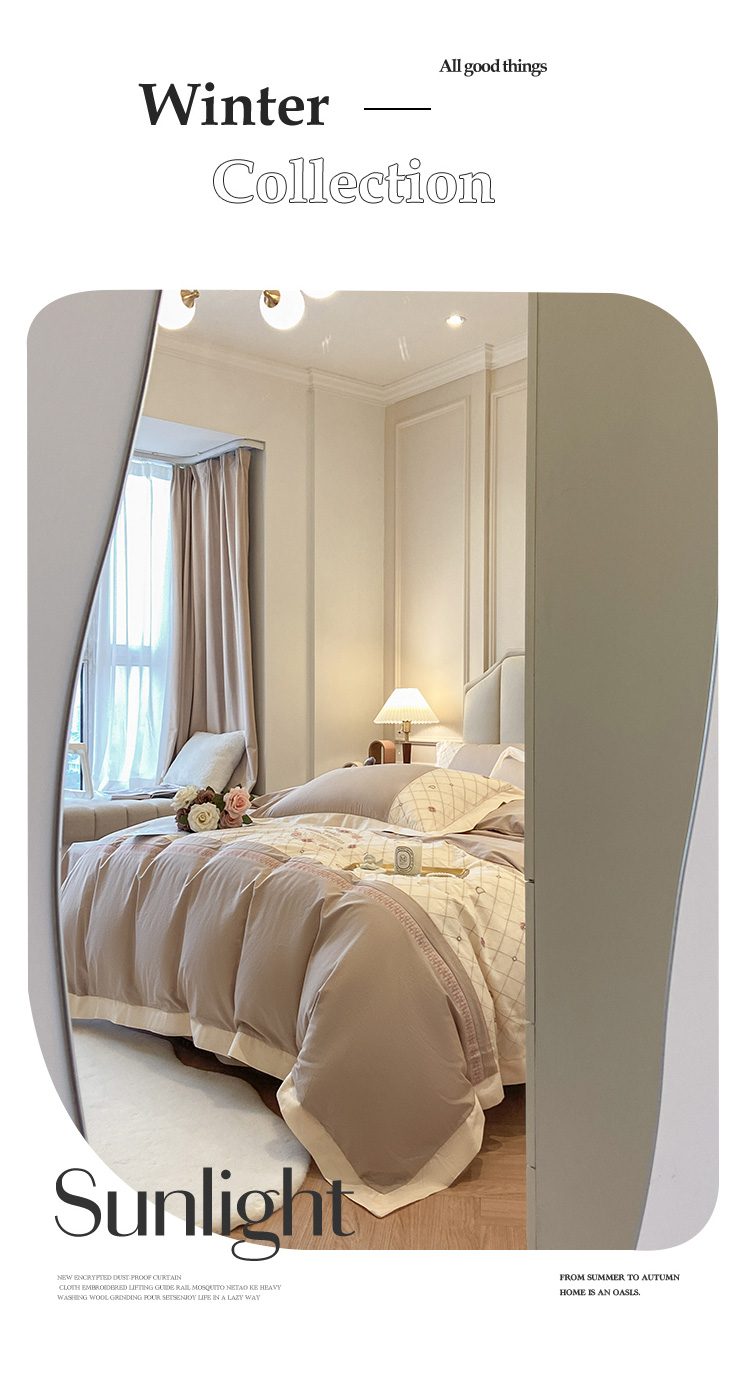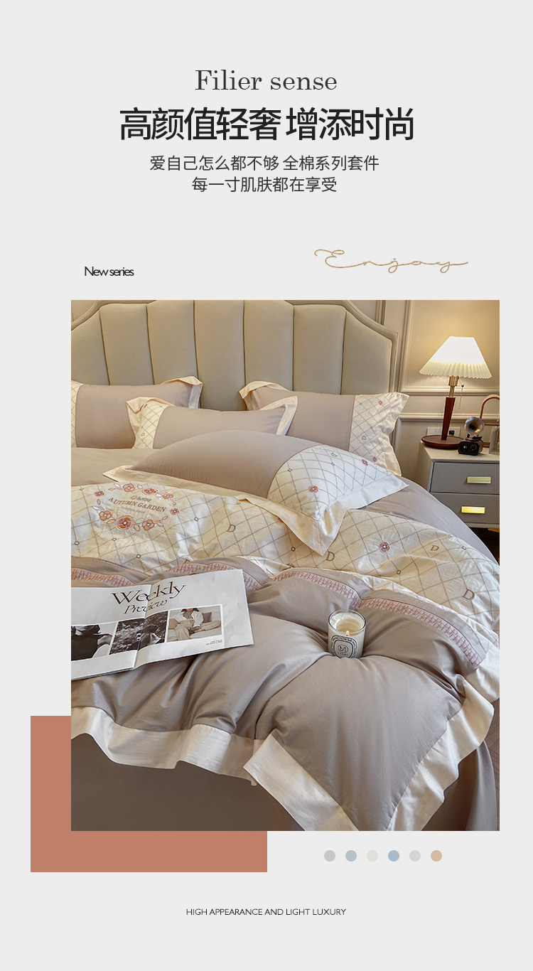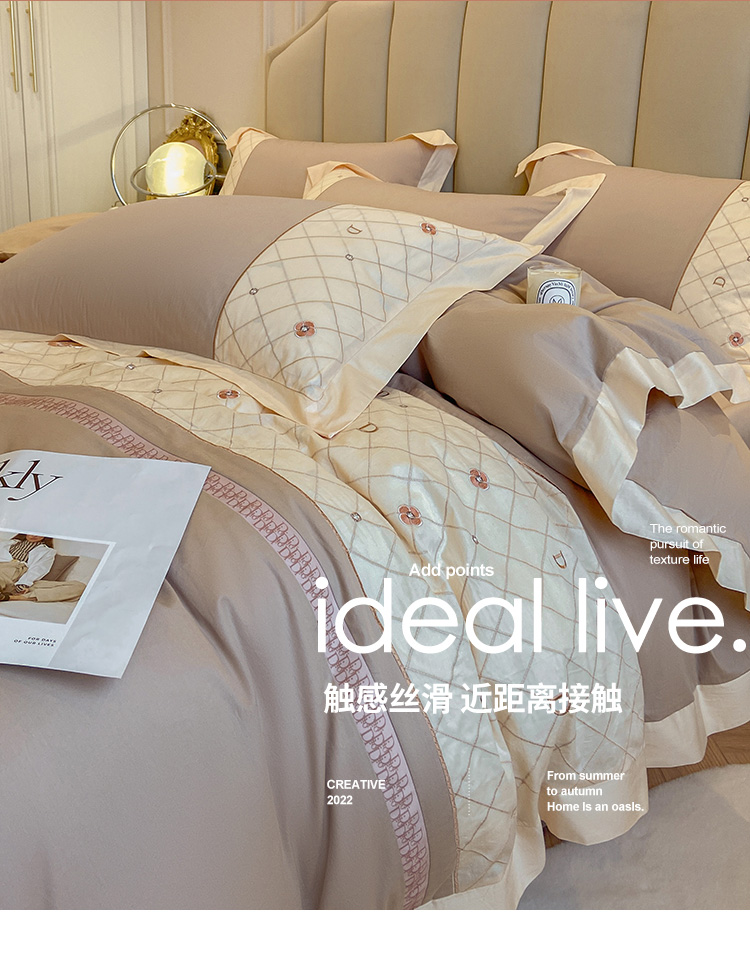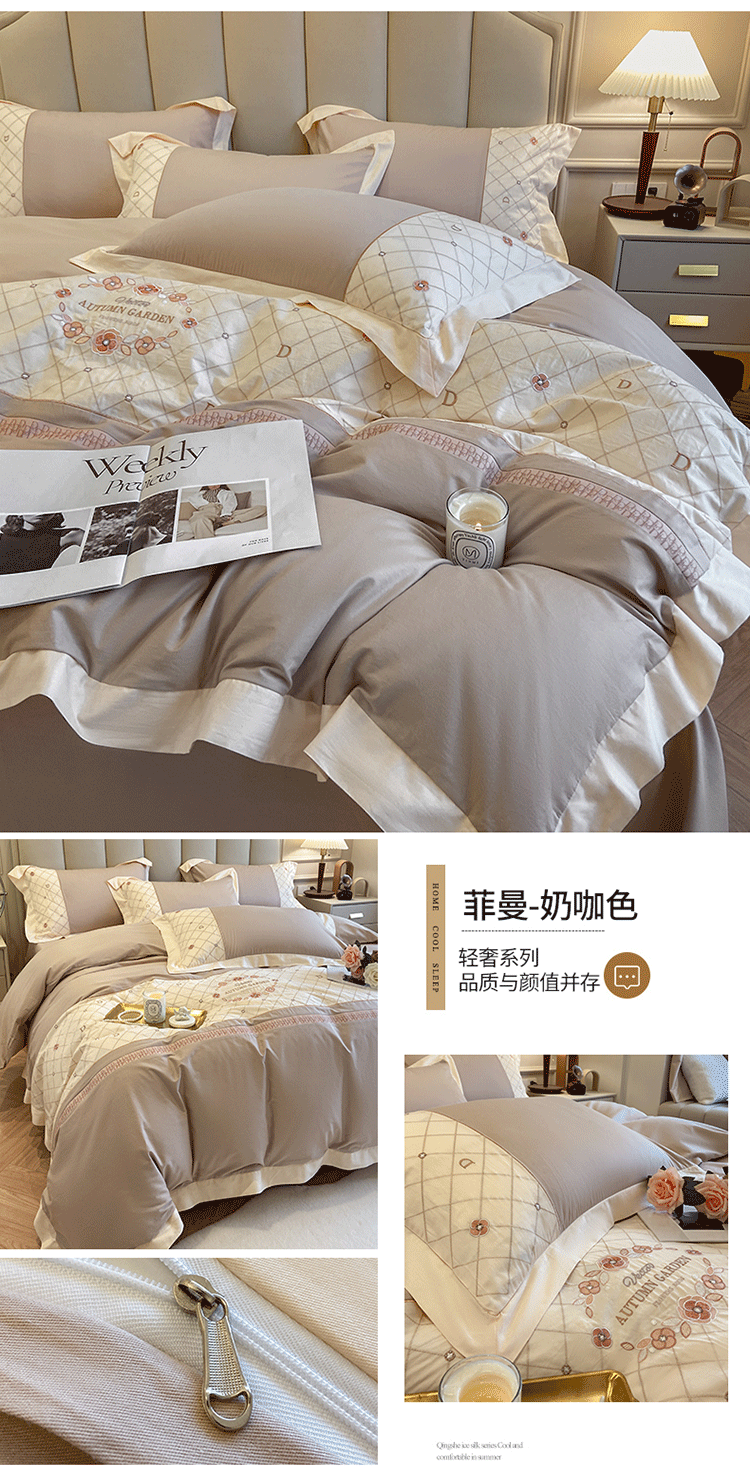 欧冠 2023秋冬保暖60S全棉刺绣拼接菲曼系列四件套 菲曼-奶咖色