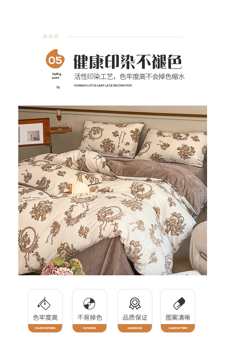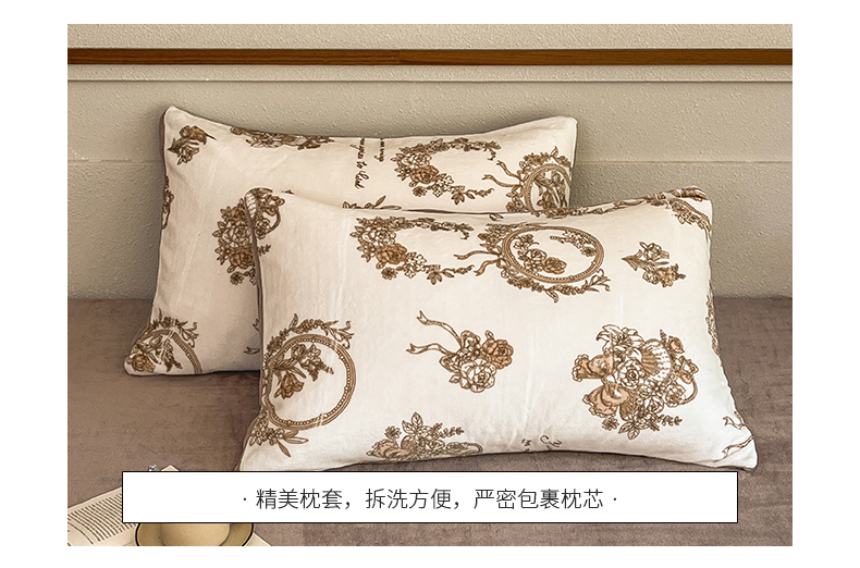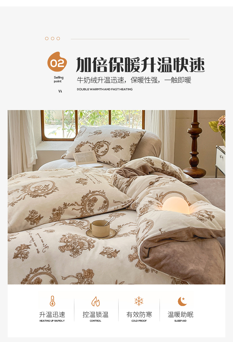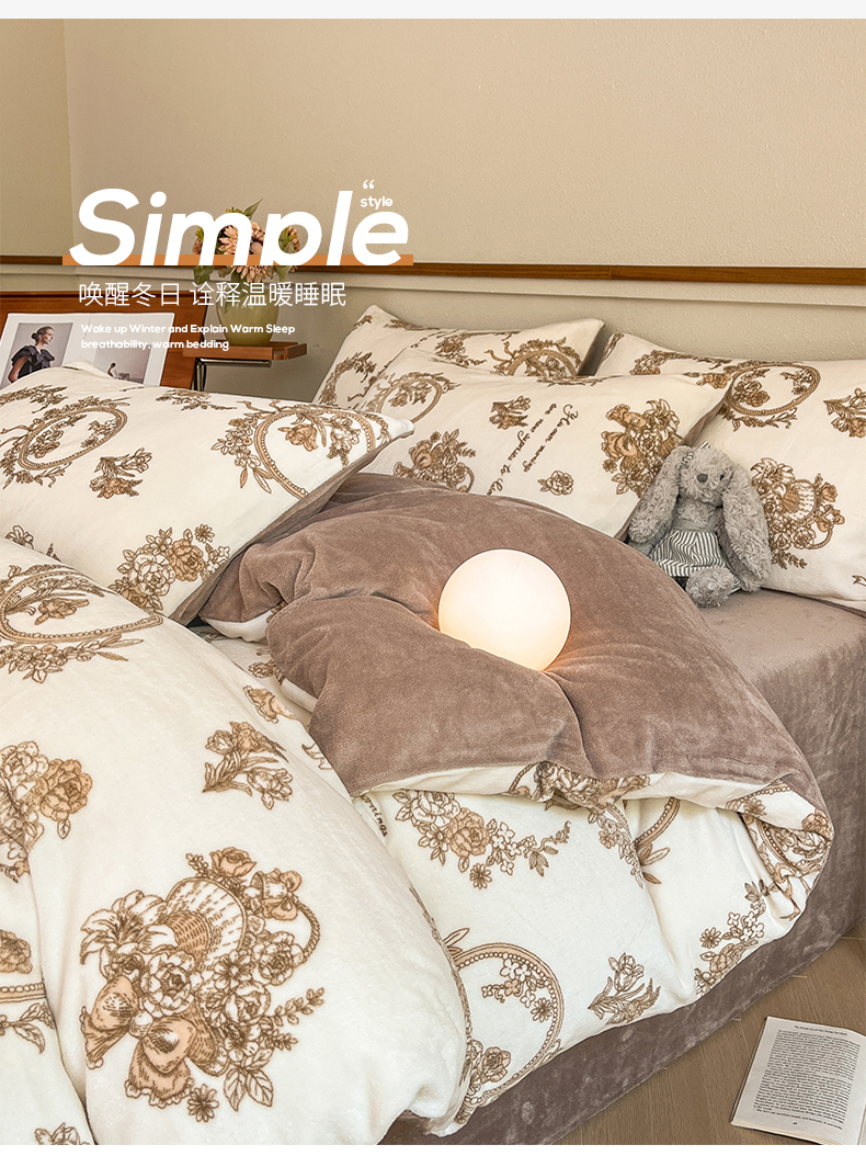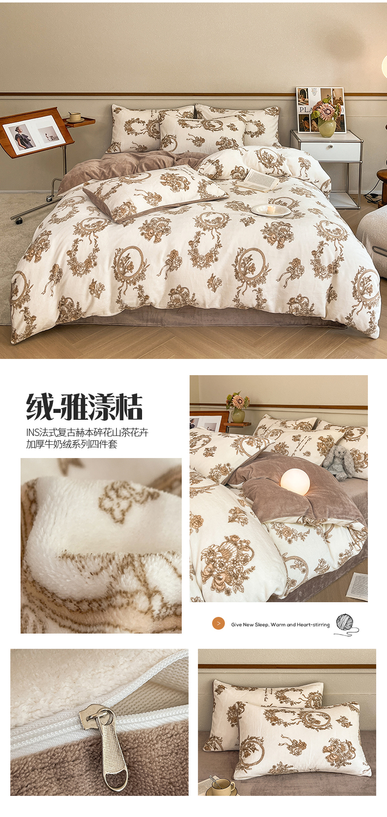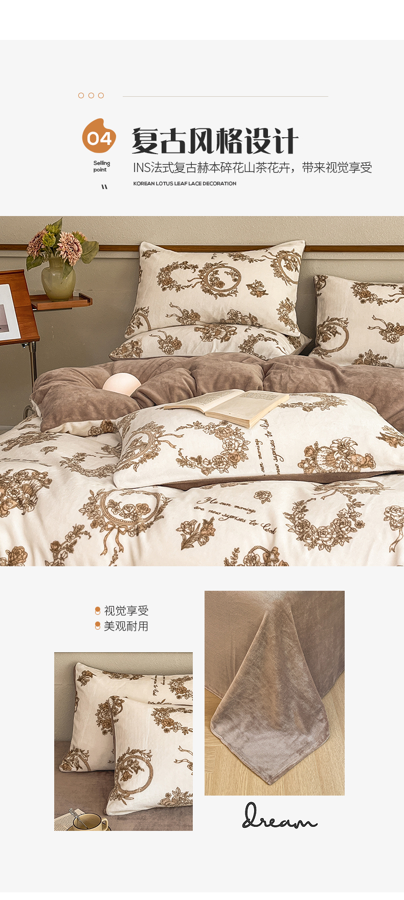 桃子家居 2023新款ins法式复古赫本碎花山茶花卉加厚牛奶绒系列四件套 绒-雅漾桔