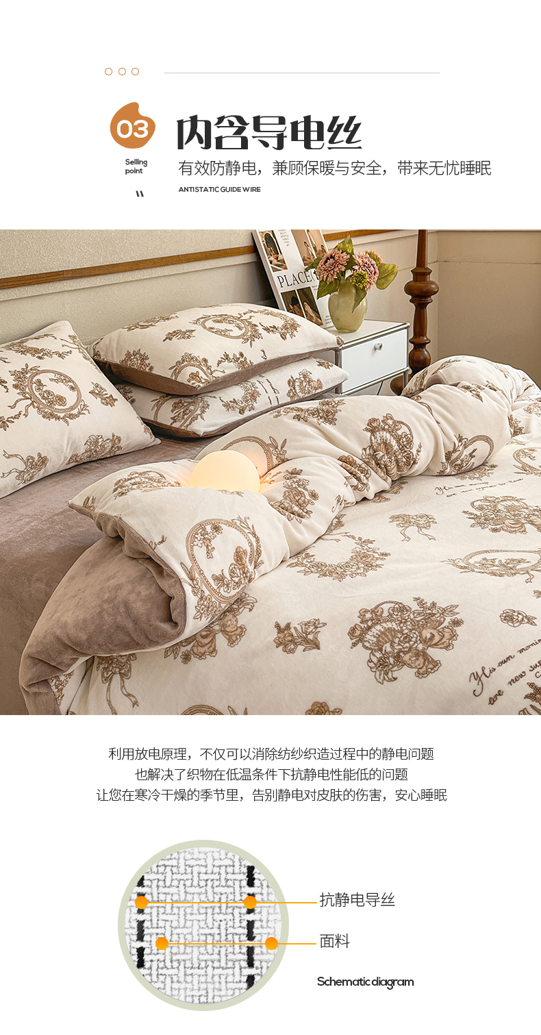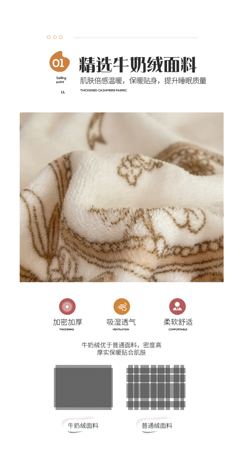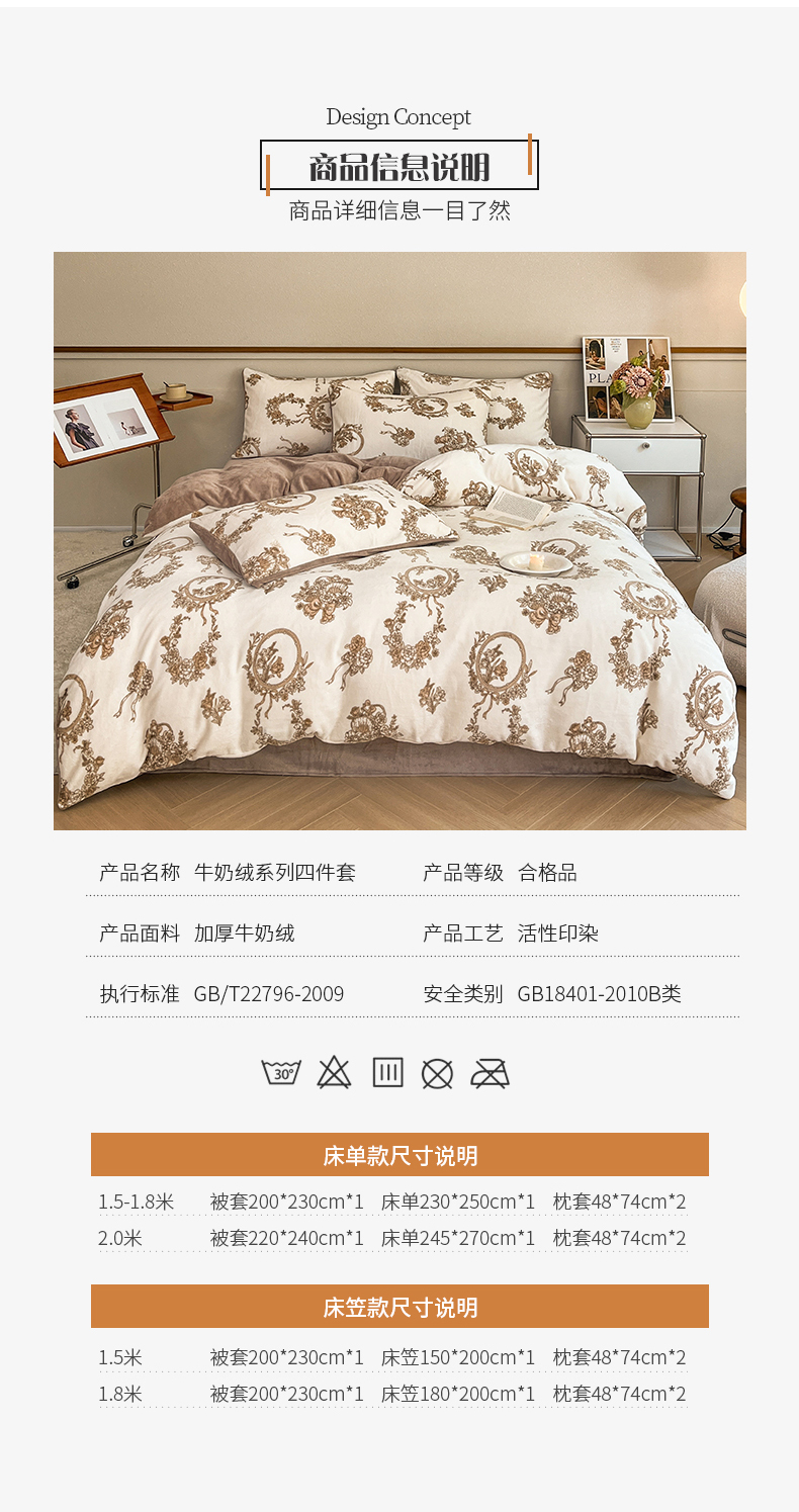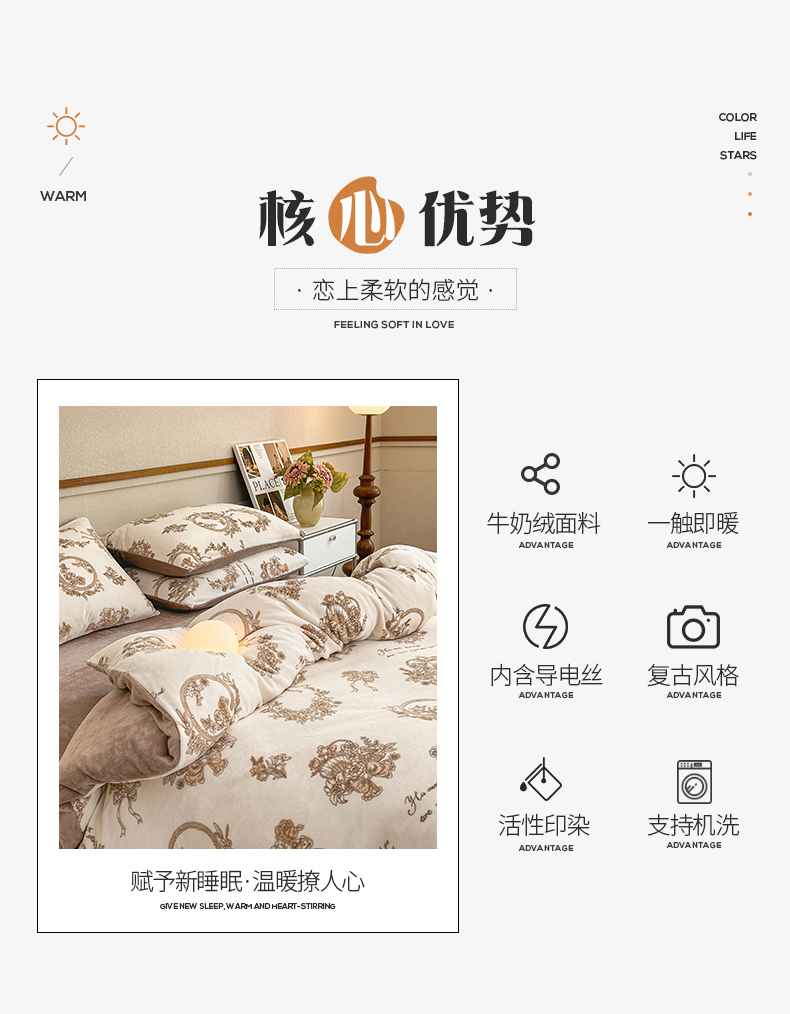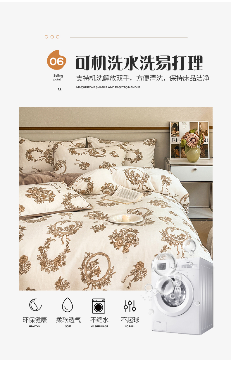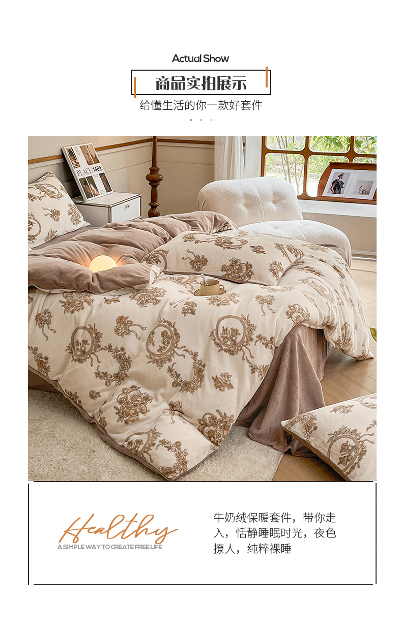 桃子家居 2023新款ins法式复古赫本碎花山茶花卉加厚牛奶绒系列四件套 绒-雅漾桔