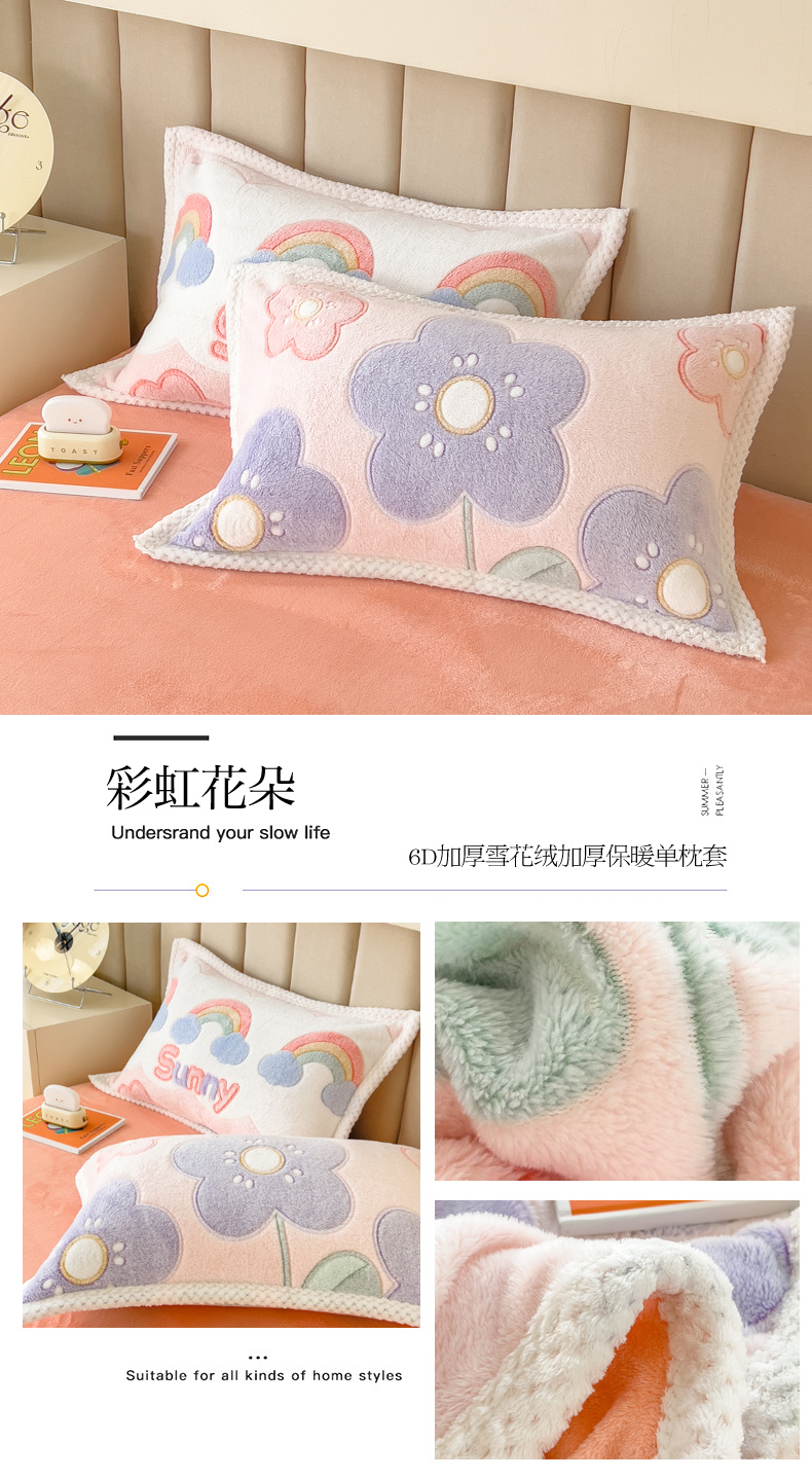 (总)2023新款立体6D雪花绒加厚保暖系列单枕套 48x74cm一对