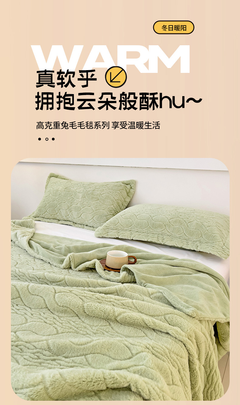 商品名称:N先生 2023秋冬新款高克重兔毛毛毯-语嫣系列 语嫣-绿
