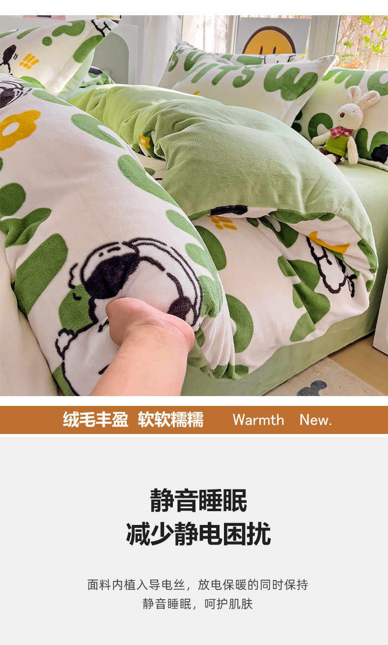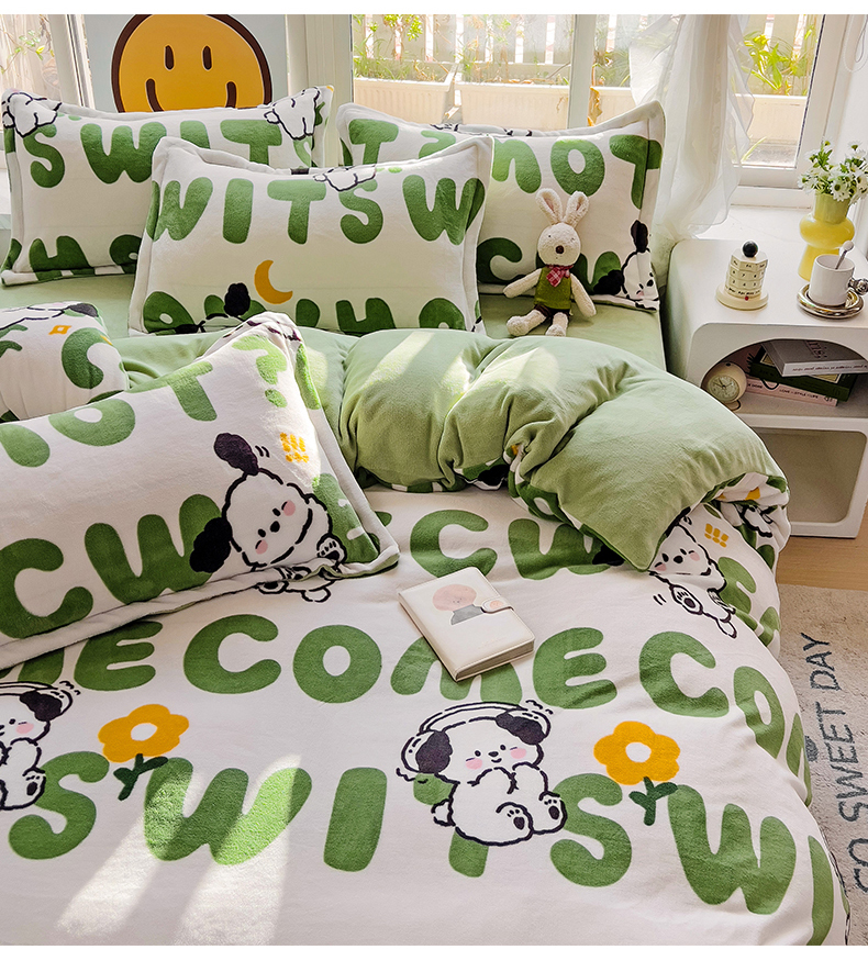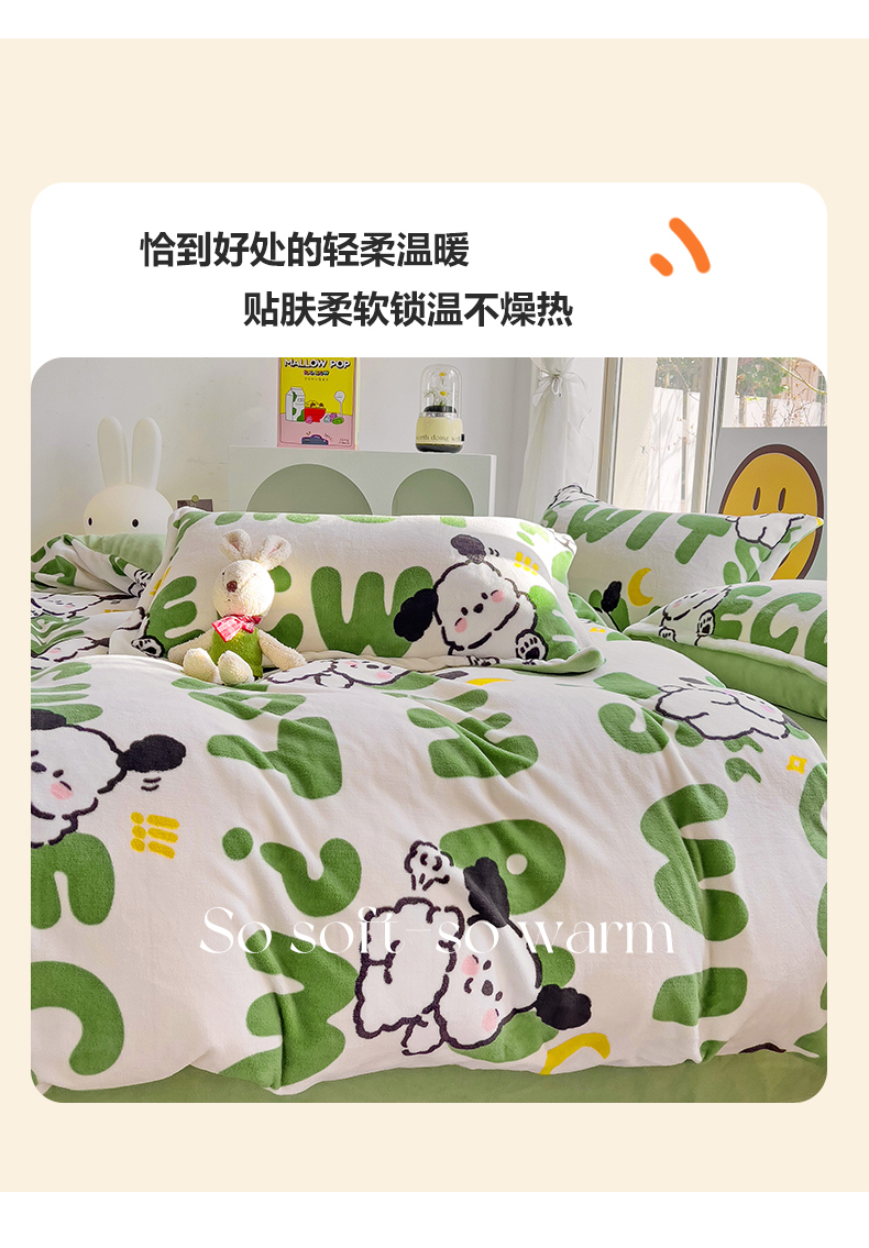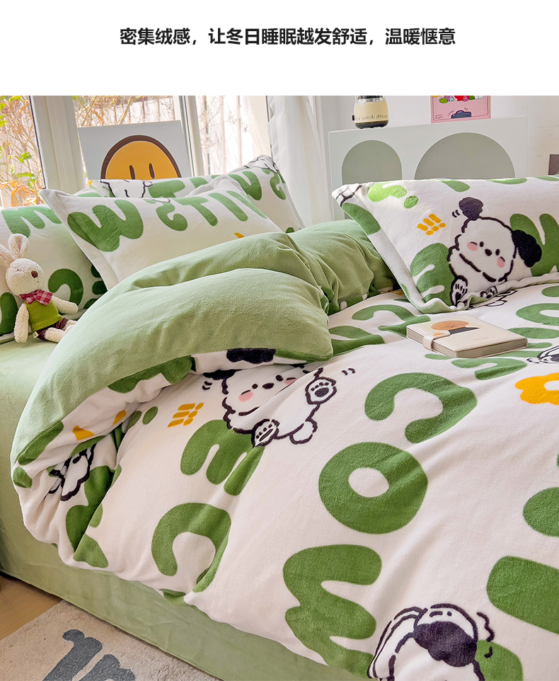 当前位置: 91家纺网 > 商品网购 > 床品套件 > 四件套 > 牛奶绒四件套 > 包小包 2023直播爆款220g高克重印花小清新牛奶绒四件套 欢乐狗狗