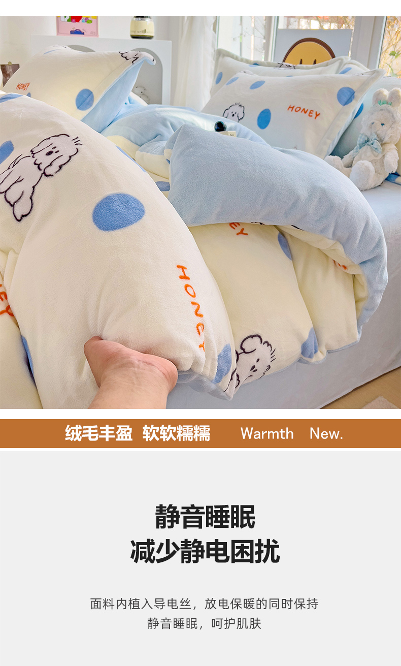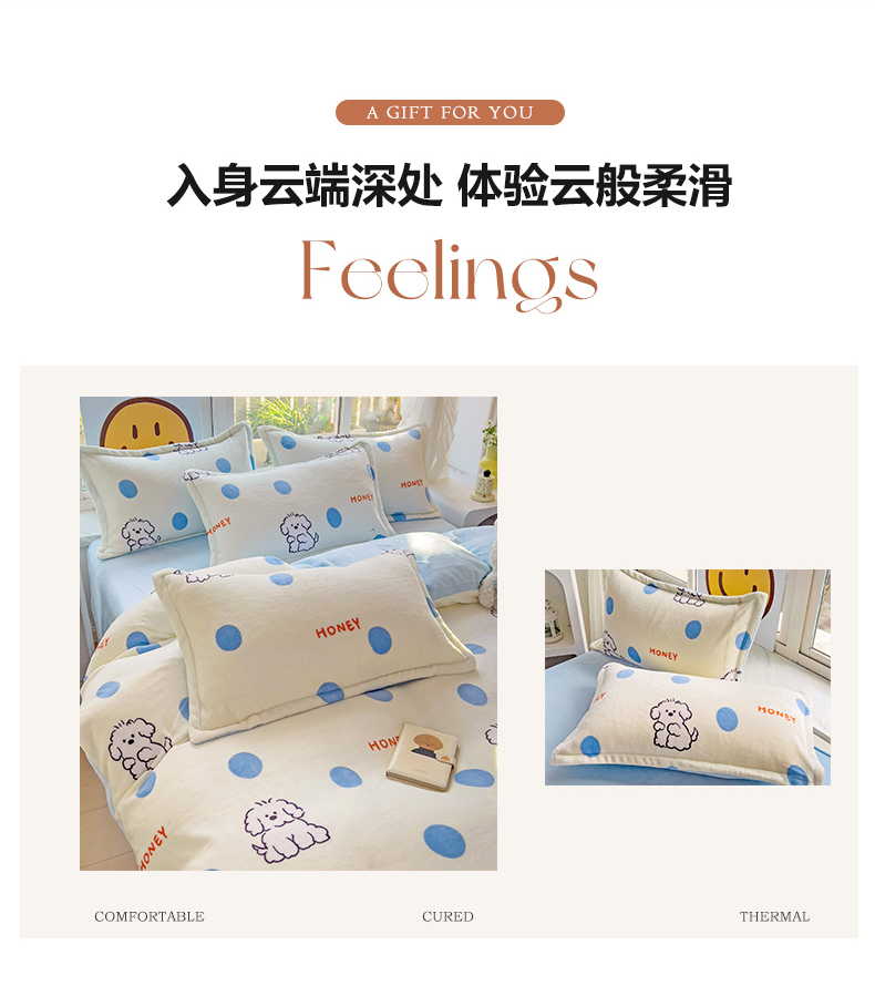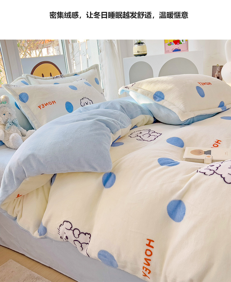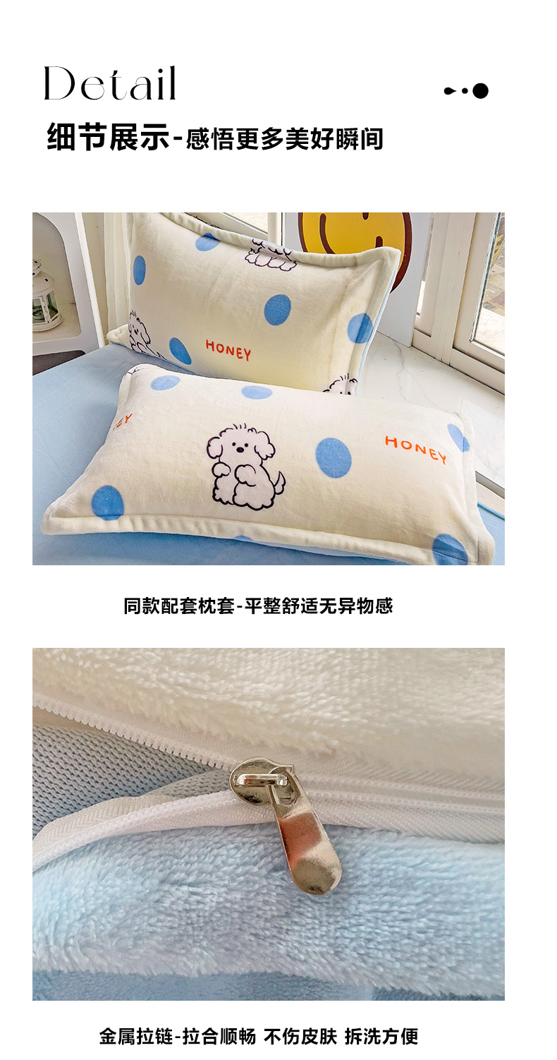 当前位置: 91家纺网 > 商品网购 > 床品套件 > 四件套 > 牛奶绒四件套 > 包小包 2023直播爆款220g高克重印花小清新牛奶绒四件套 小狗波点