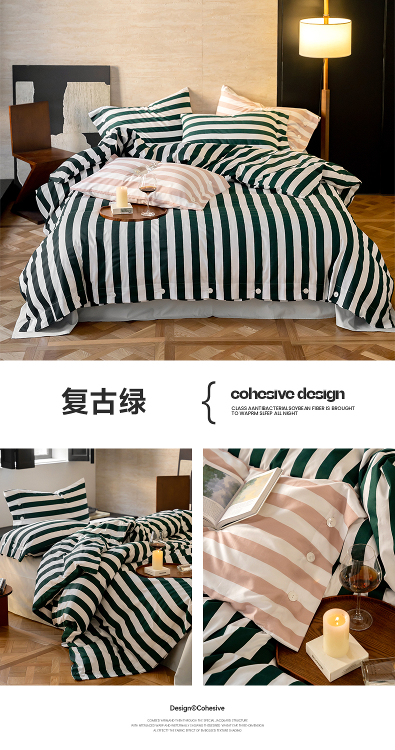 华超针织 2023新款100支轻磨毛全棉四件套 复古绿