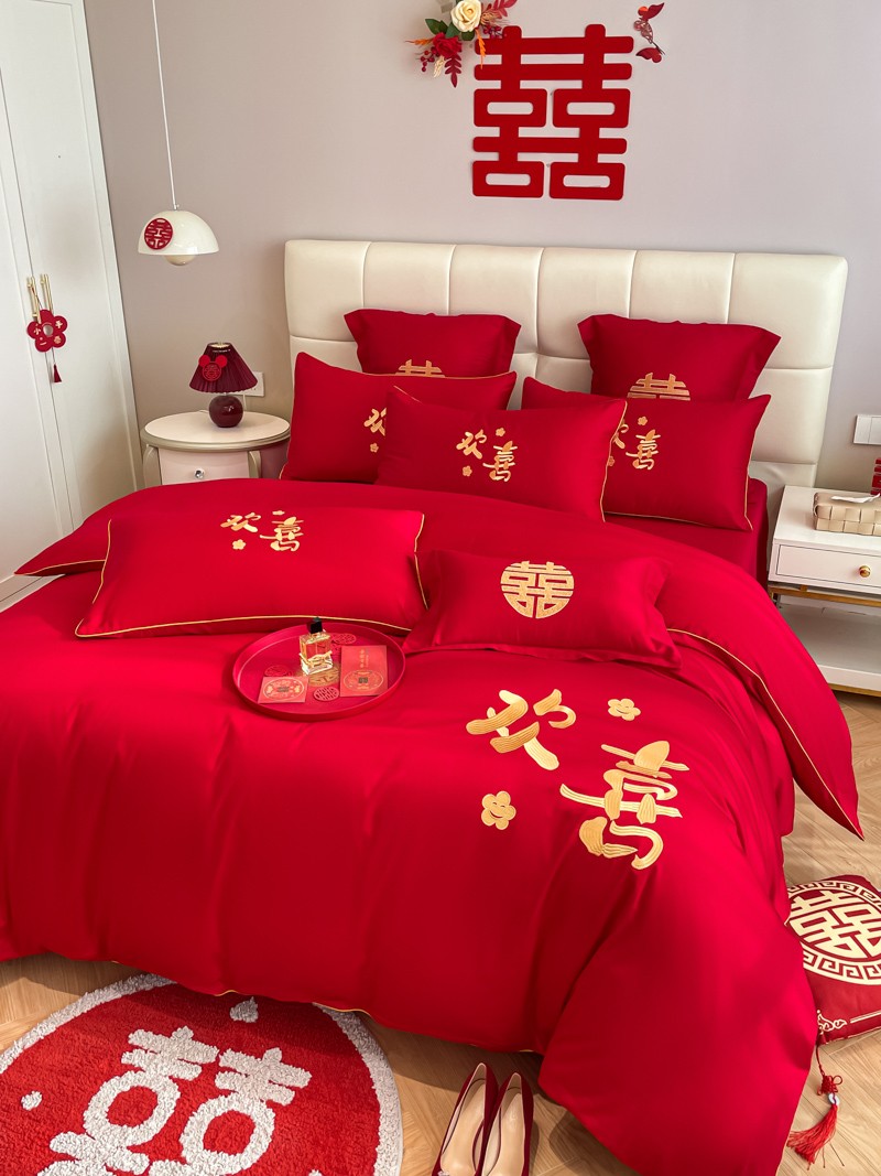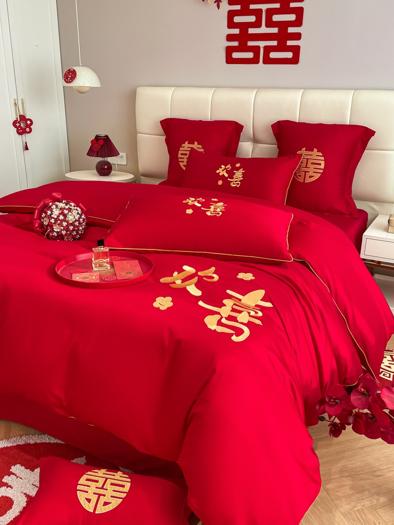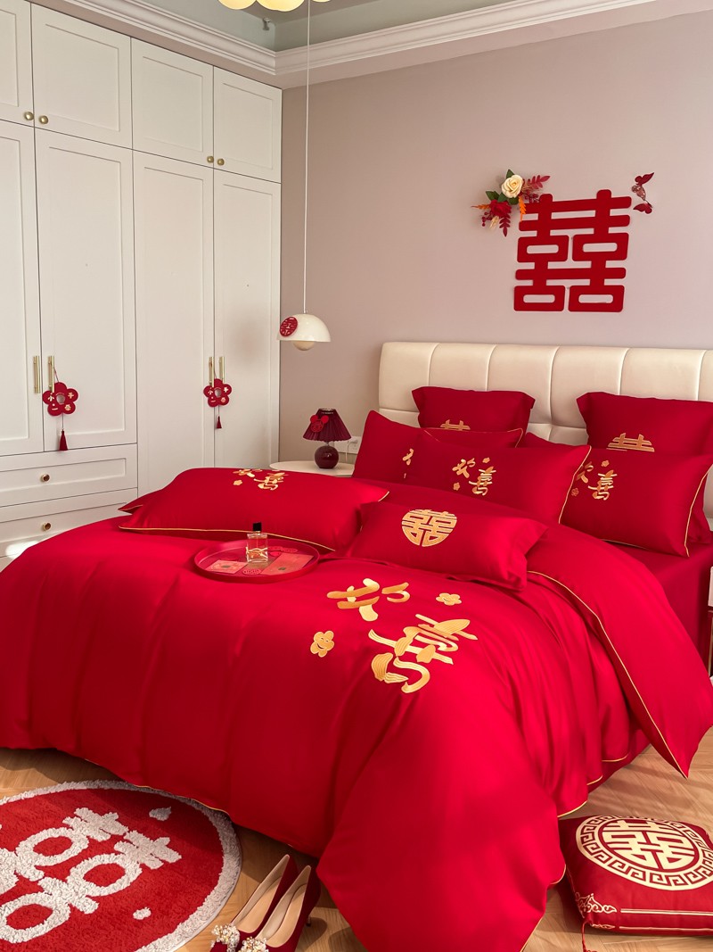 当前位置: 91家纺网 > 商品网购 > 床品套件 > 四件套 > 婚庆四件套 > 欧乐蒂 2025新款亲肤刺绣婚庆四件套 欢喜