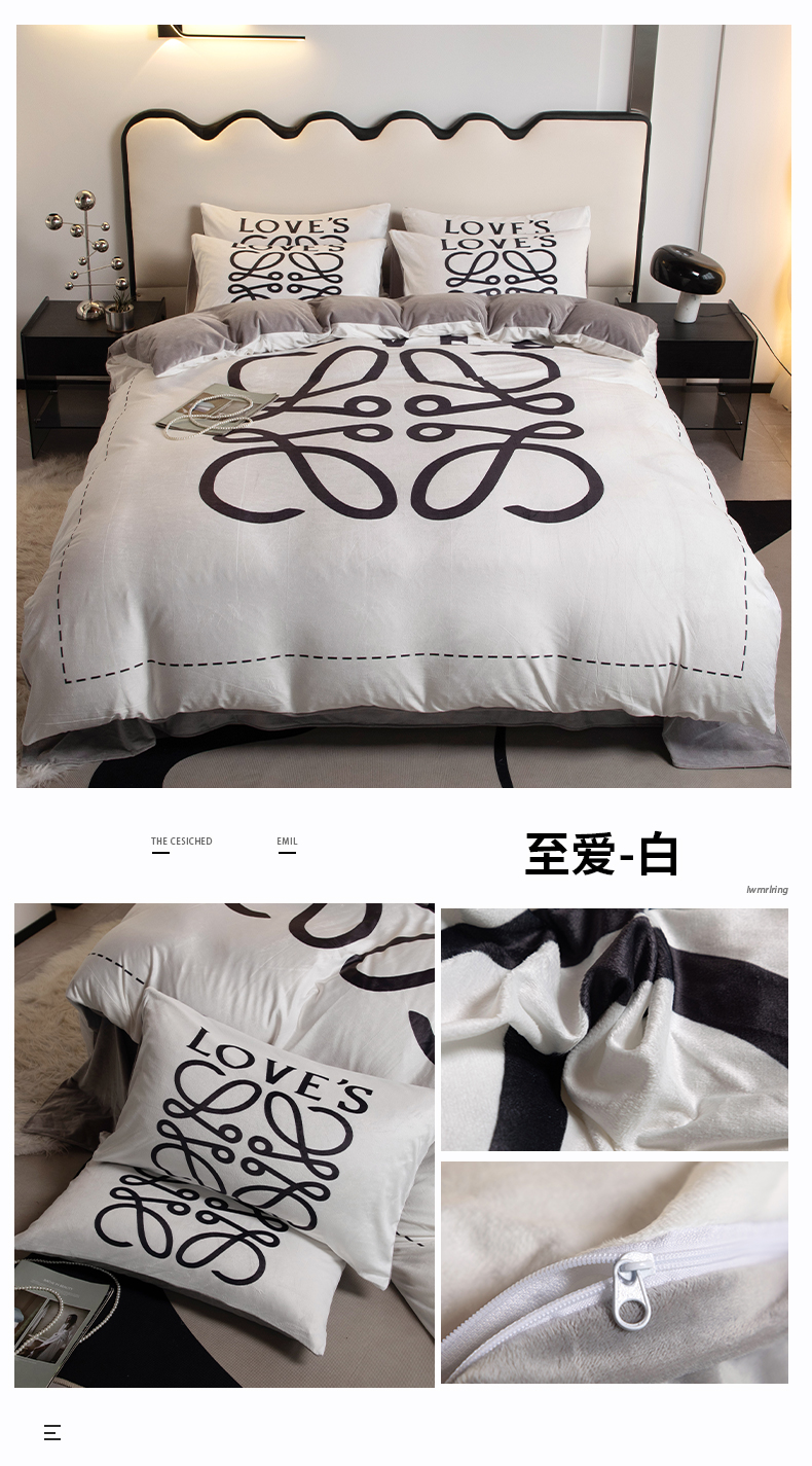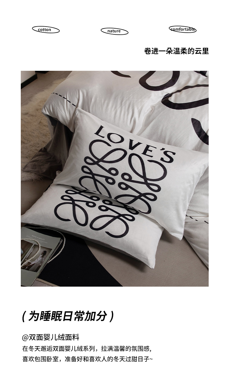 摩卡 2024新款秋冬新品网红款婴儿绒毛四件套 至爱白