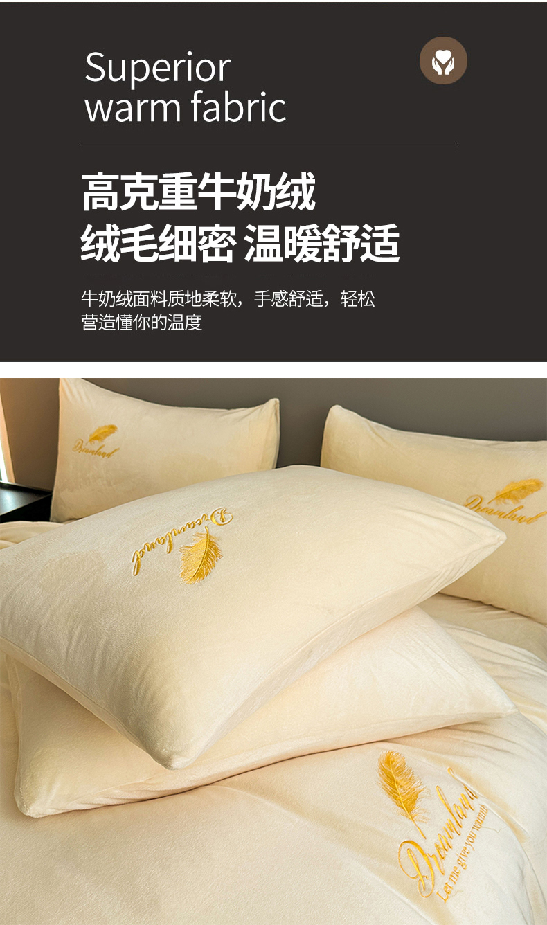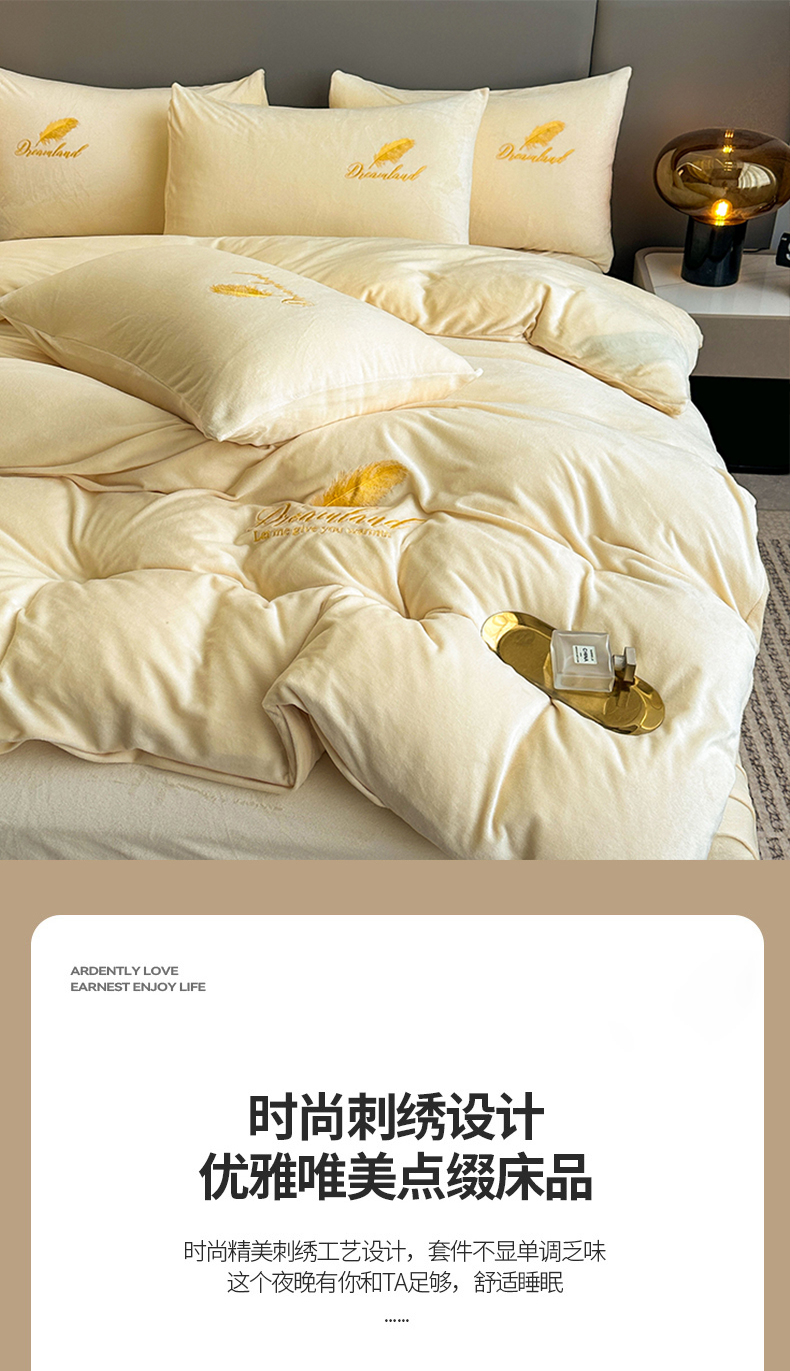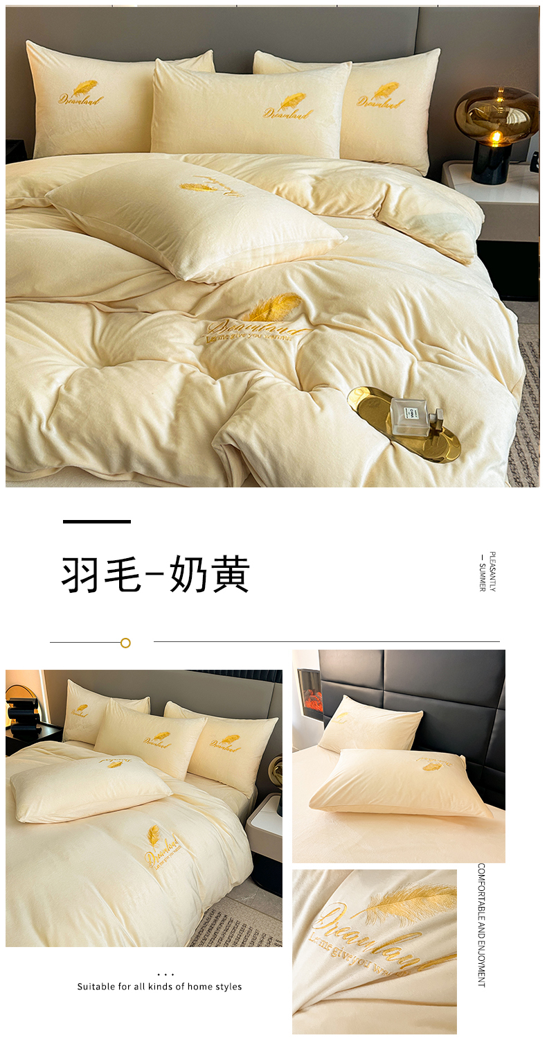 当前位置: 91家纺网 > 商品网购 > 床品套件 > 四件套 > 牛奶绒四件套 > yyds网供 2024新款短绒羽毛刺绣水晶绒四件套轻奢秋冬牛奶绒简约-羽毛系列 羽毛-奶黄