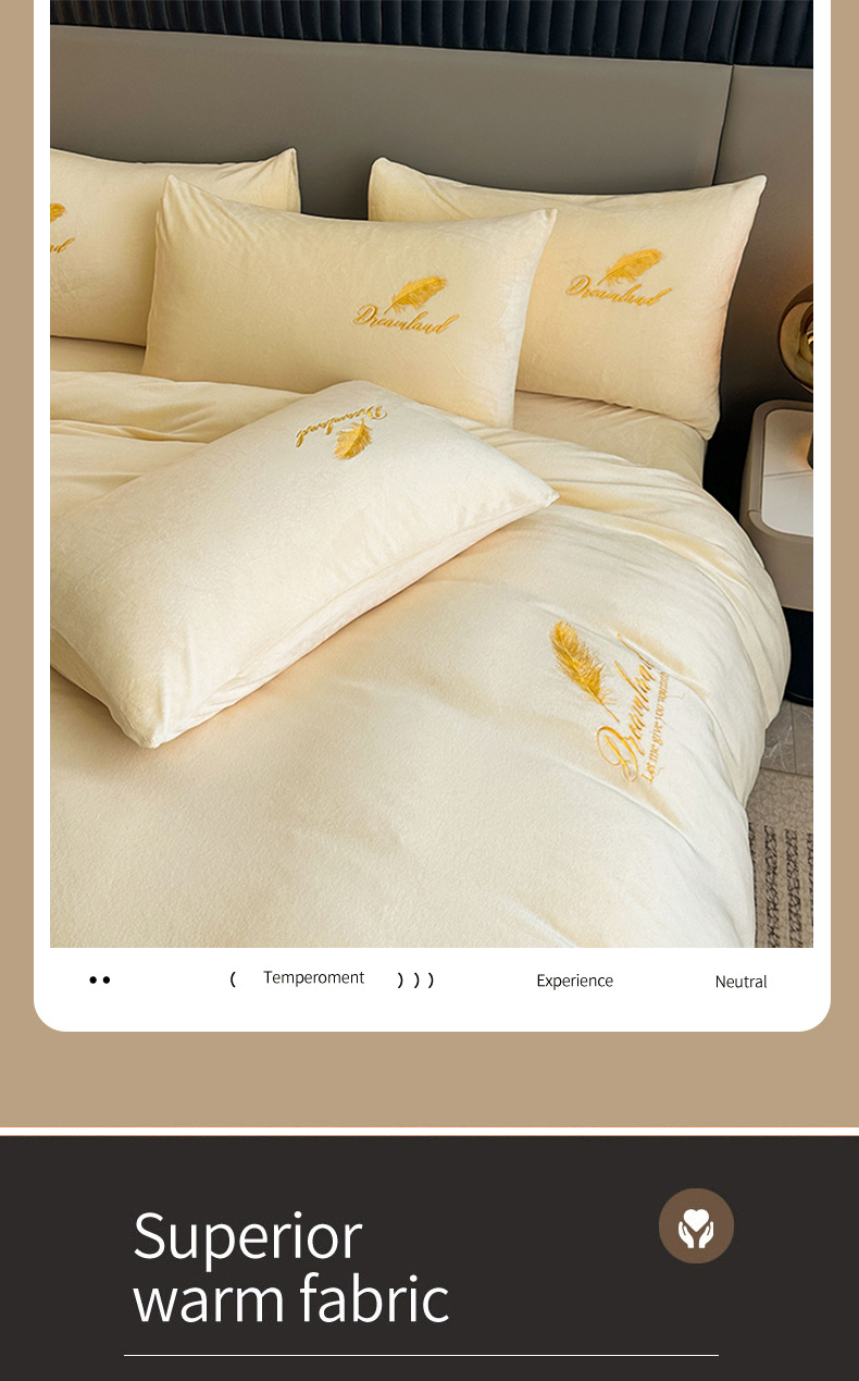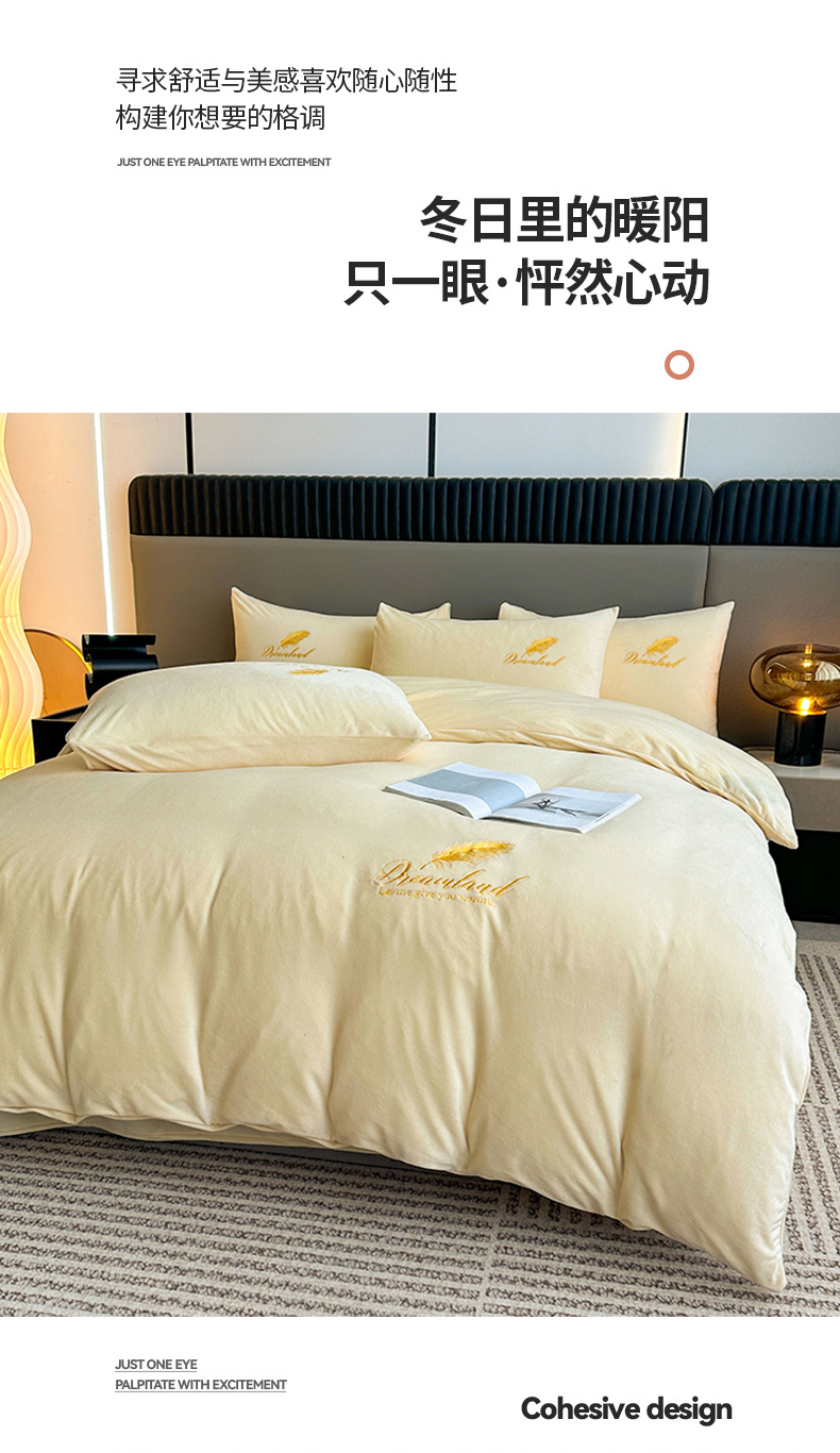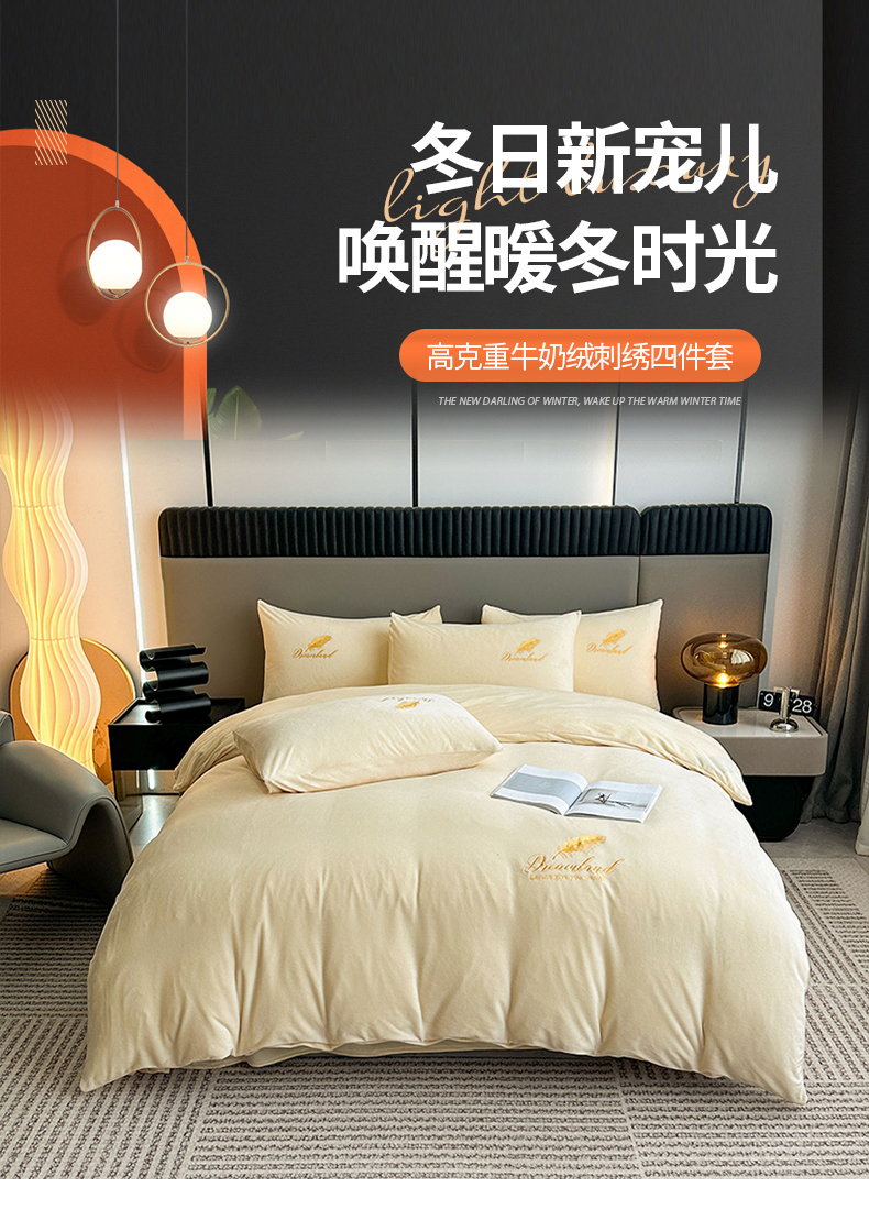当前位置: 91家纺网 > 商品网购 > 床品套件 > 四件套 > 牛奶绒四件套 > yyds网供 2024新款短绒羽毛刺绣水晶绒四件套轻奢秋冬牛奶绒简约-羽毛系列 羽毛-奶黄
