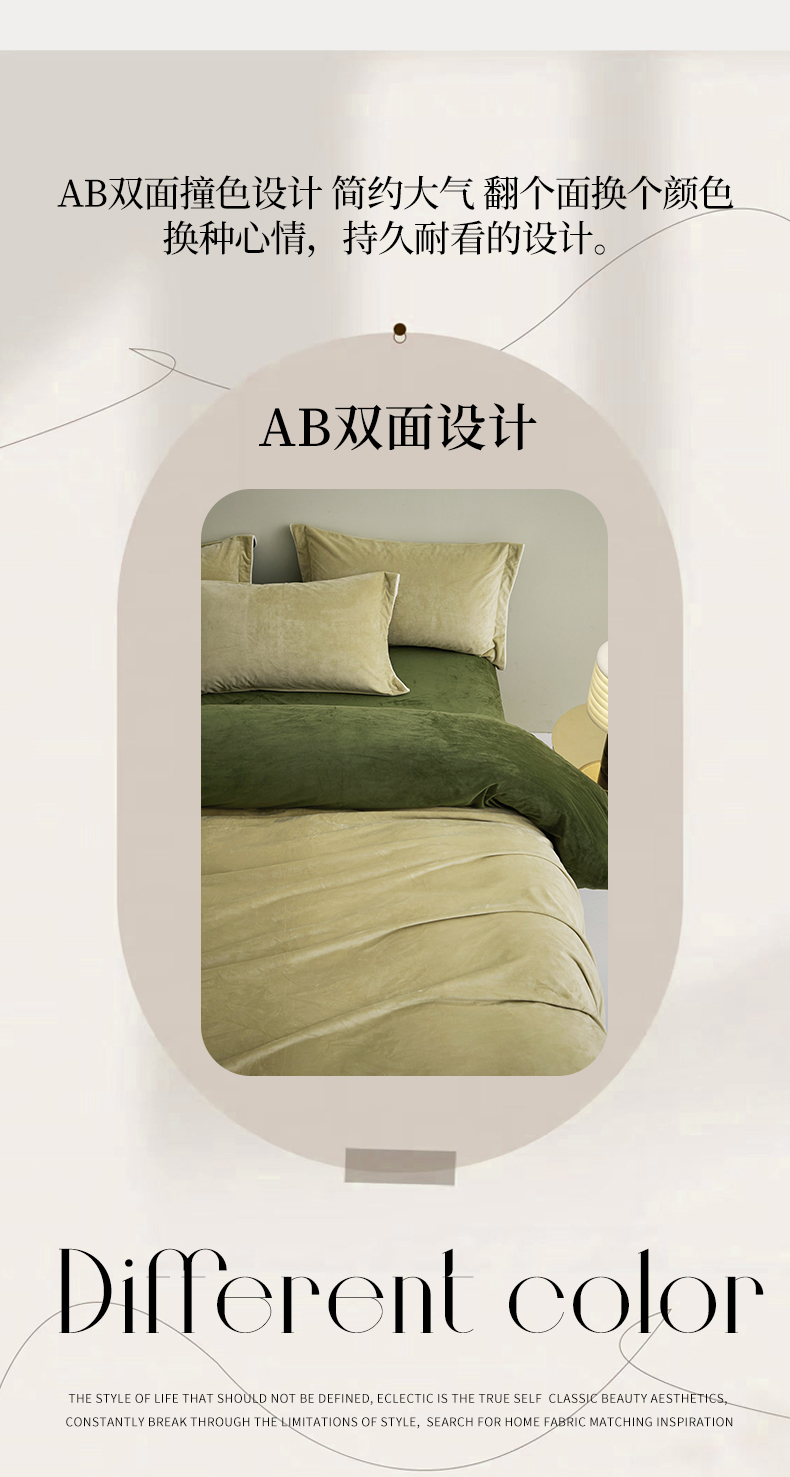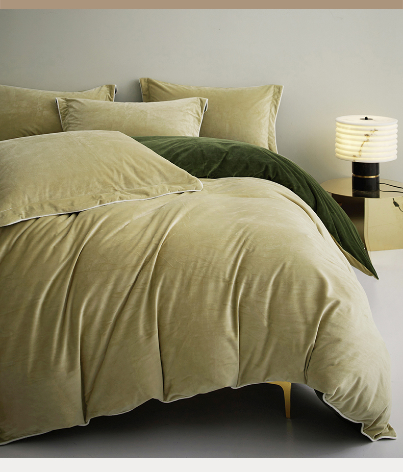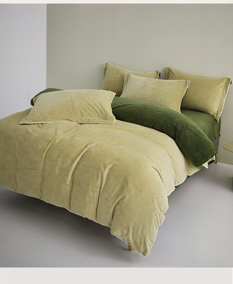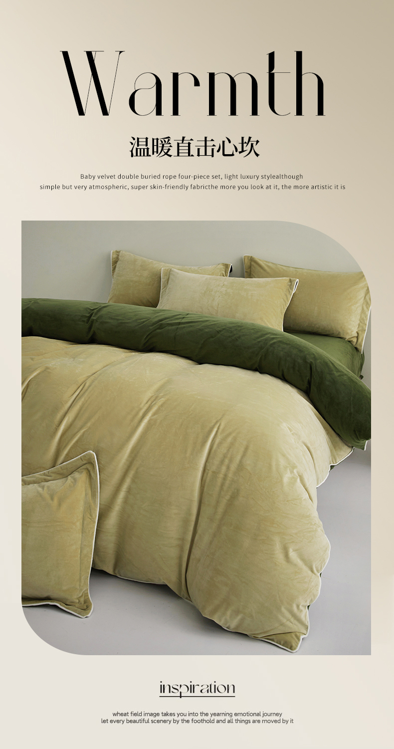 丝涟2023新款轻奢风高克重230g婴儿绒德肤绒亲肤舒适双拼色埋线款滚绳四件套 亮绿+深果绿