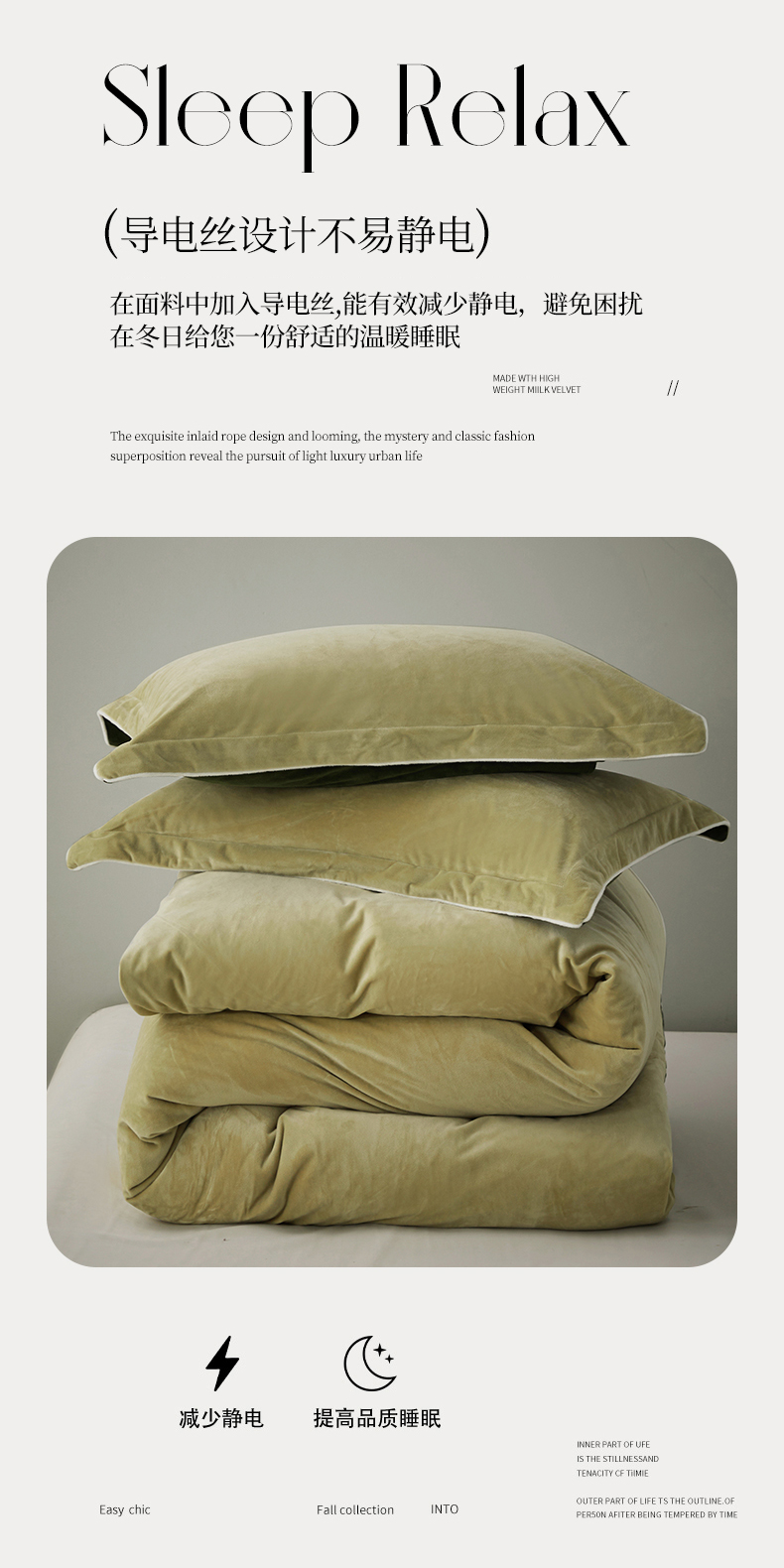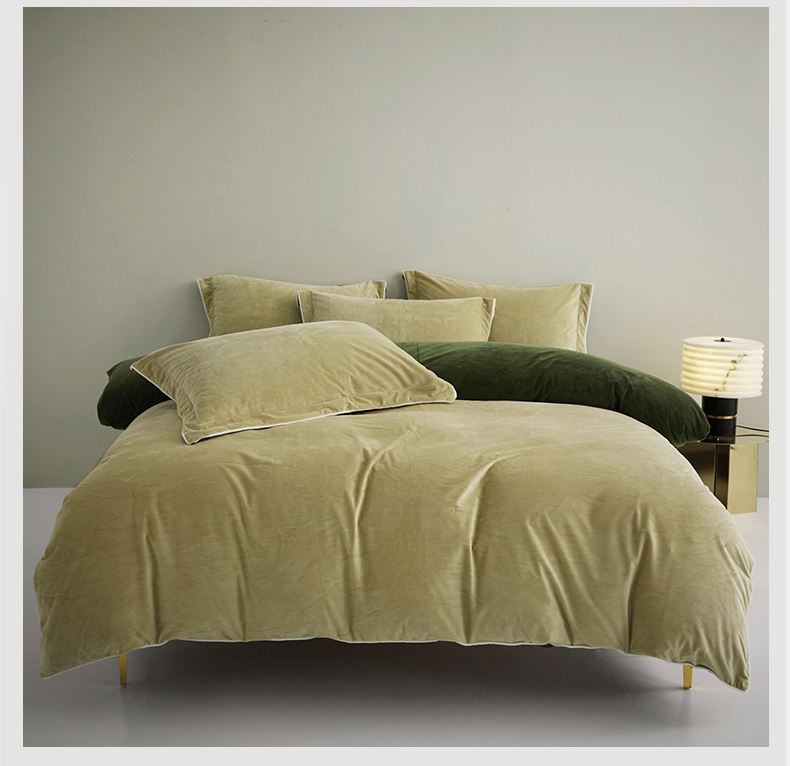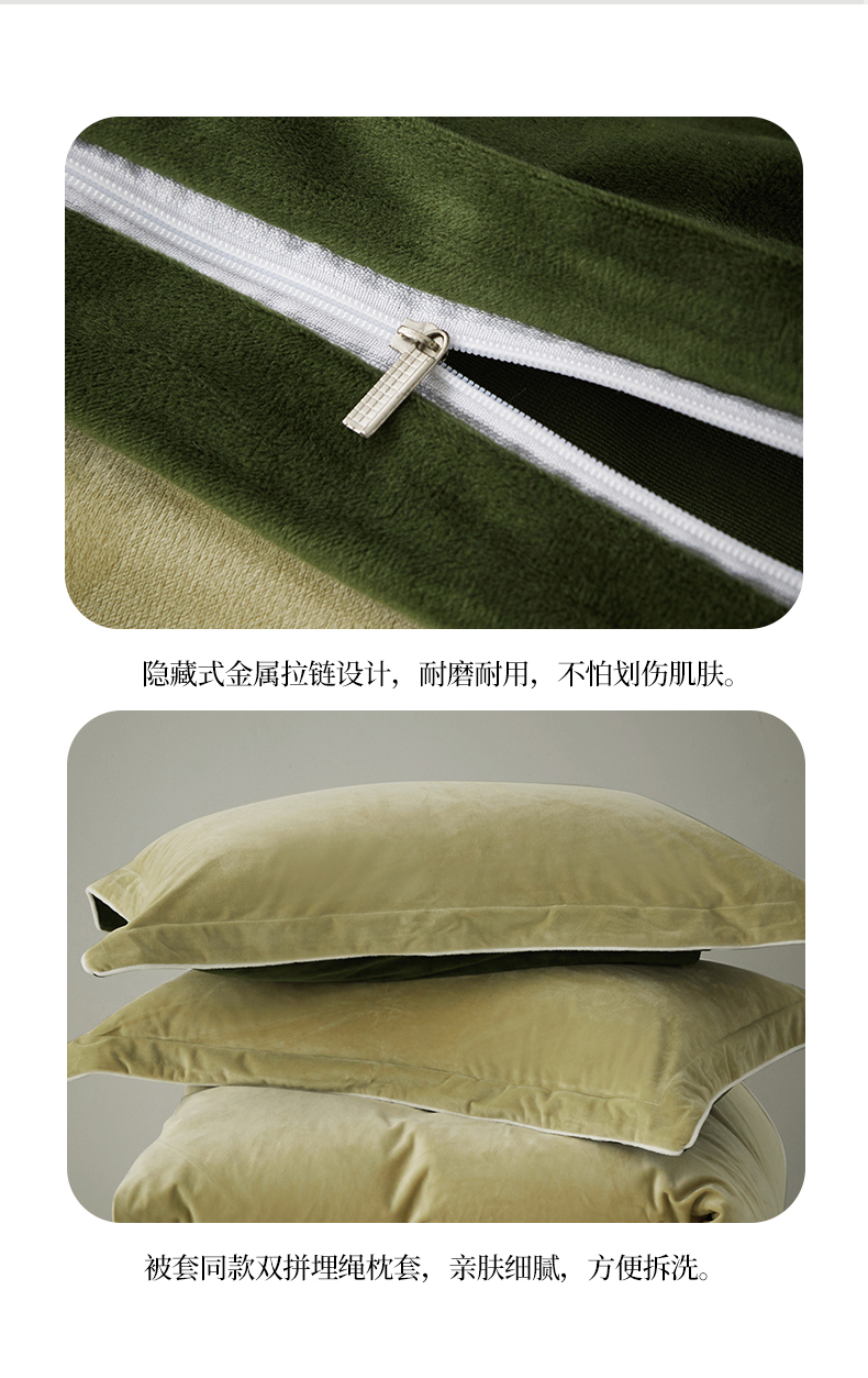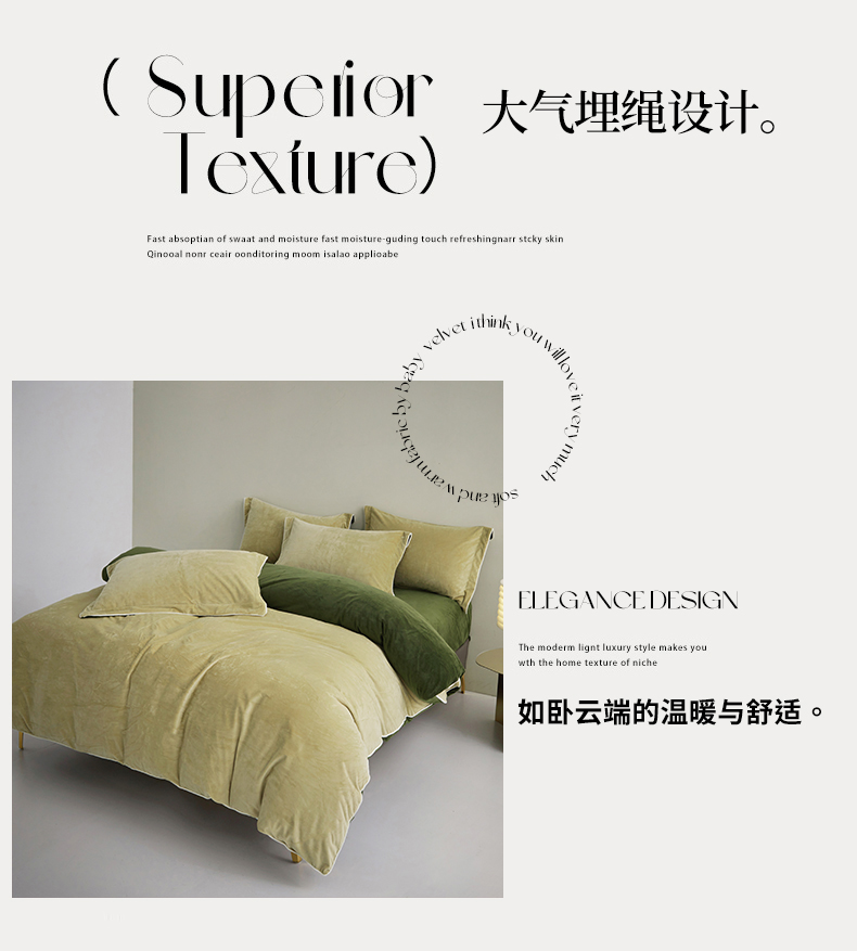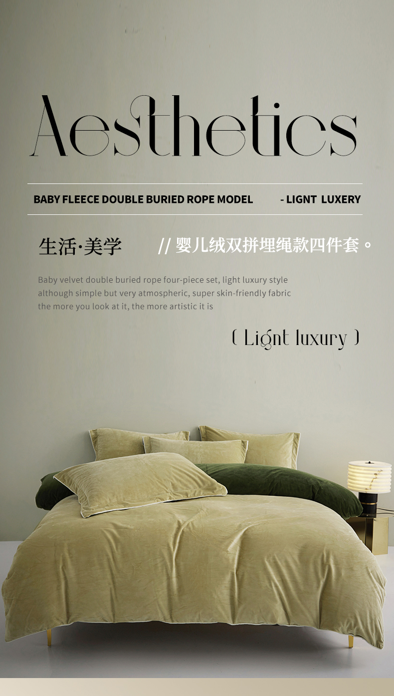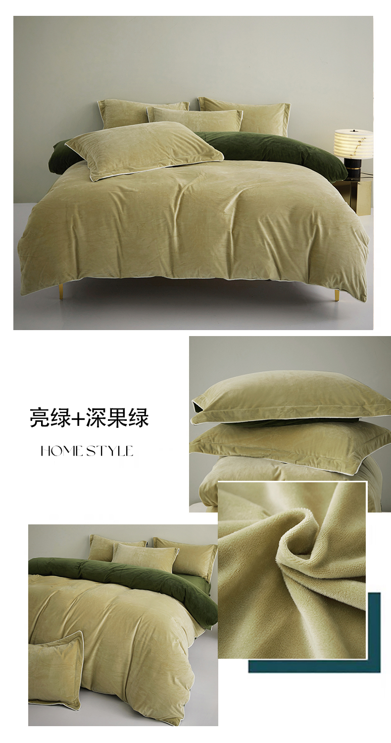 商品名称:丝涟2023新款轻奢风高克重230g婴儿绒德肤绒亲肤舒适双拼色埋线款滚绳四件套 亮绿+深果绿