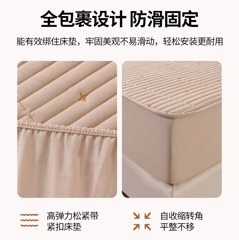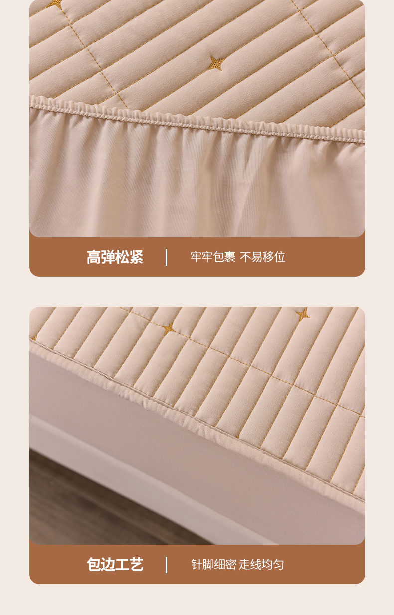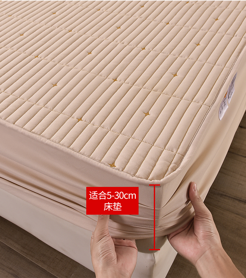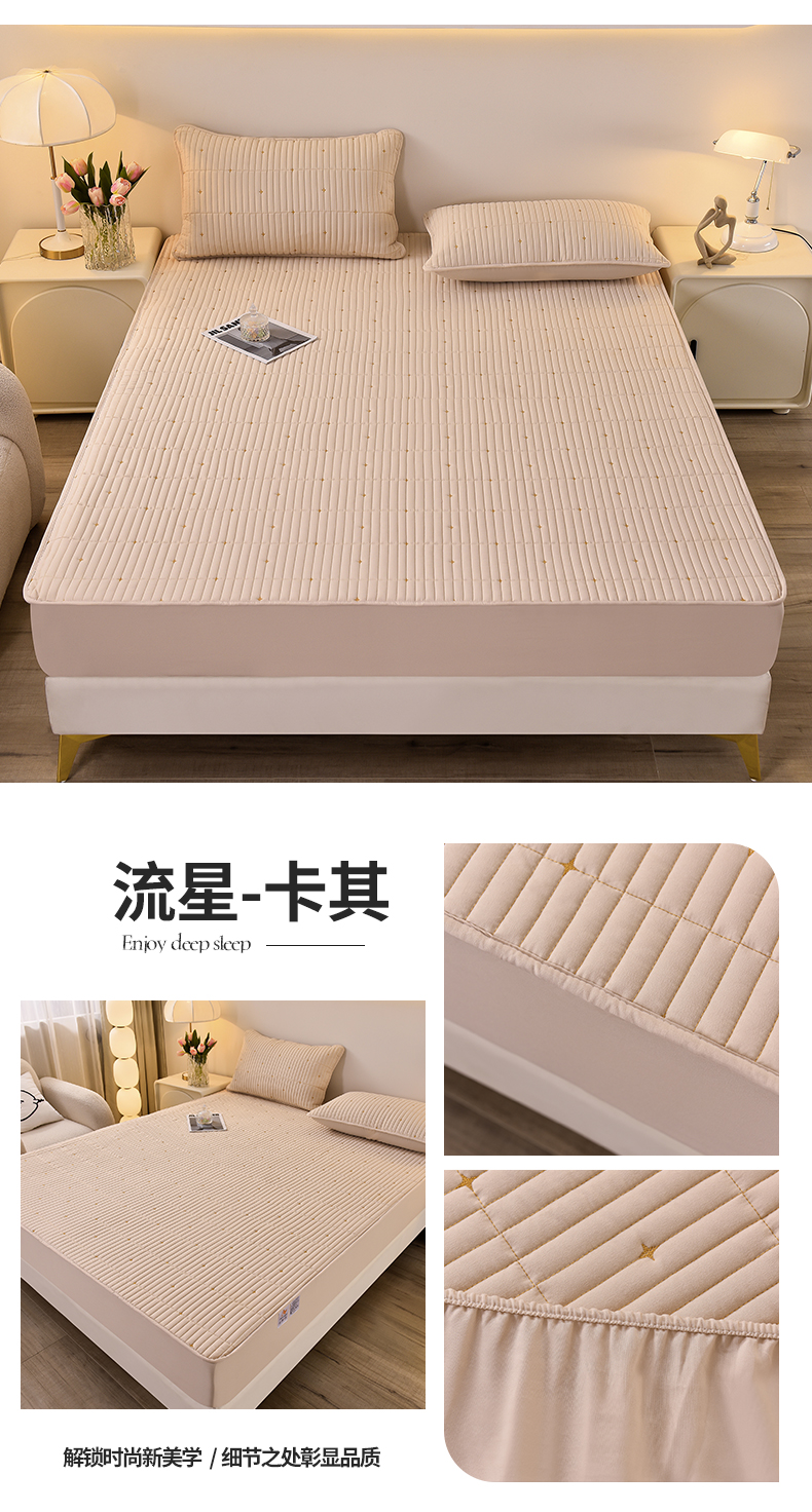 X猫先生A类水洗抗菌夹棉床笠小清新刺绣纯色床垫保护罩直播 流星-卡其