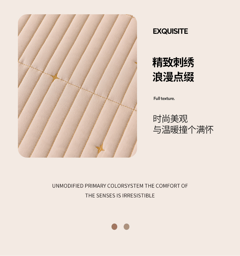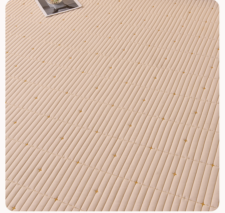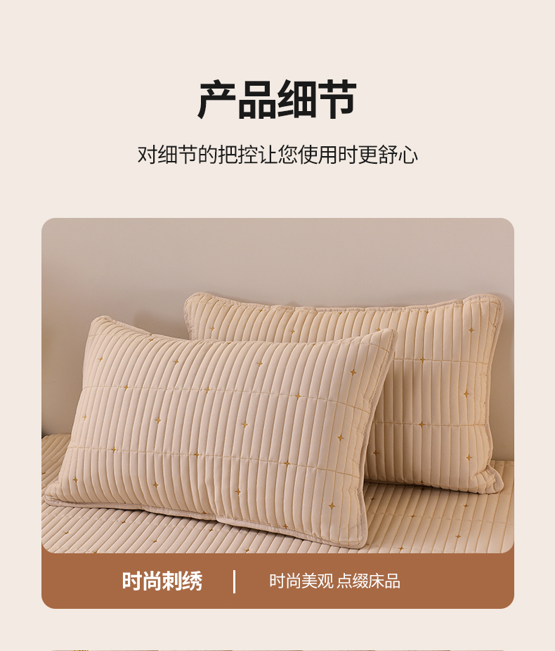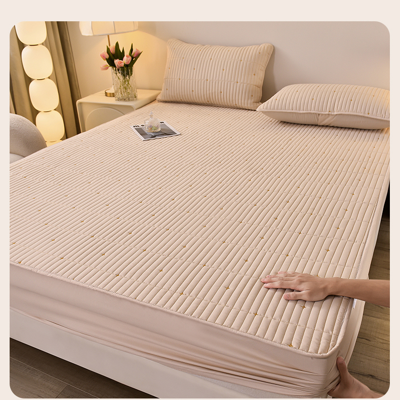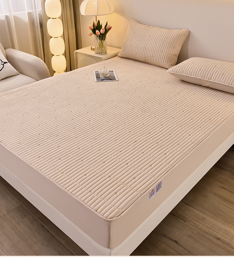 X猫先生A类水洗抗菌夹棉床笠小清新刺绣纯色床垫保护罩直播 流星-卡其