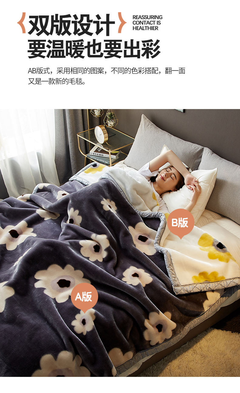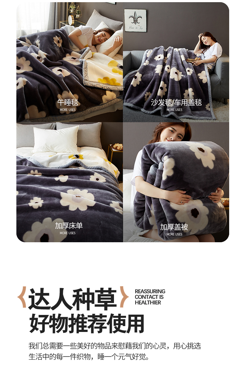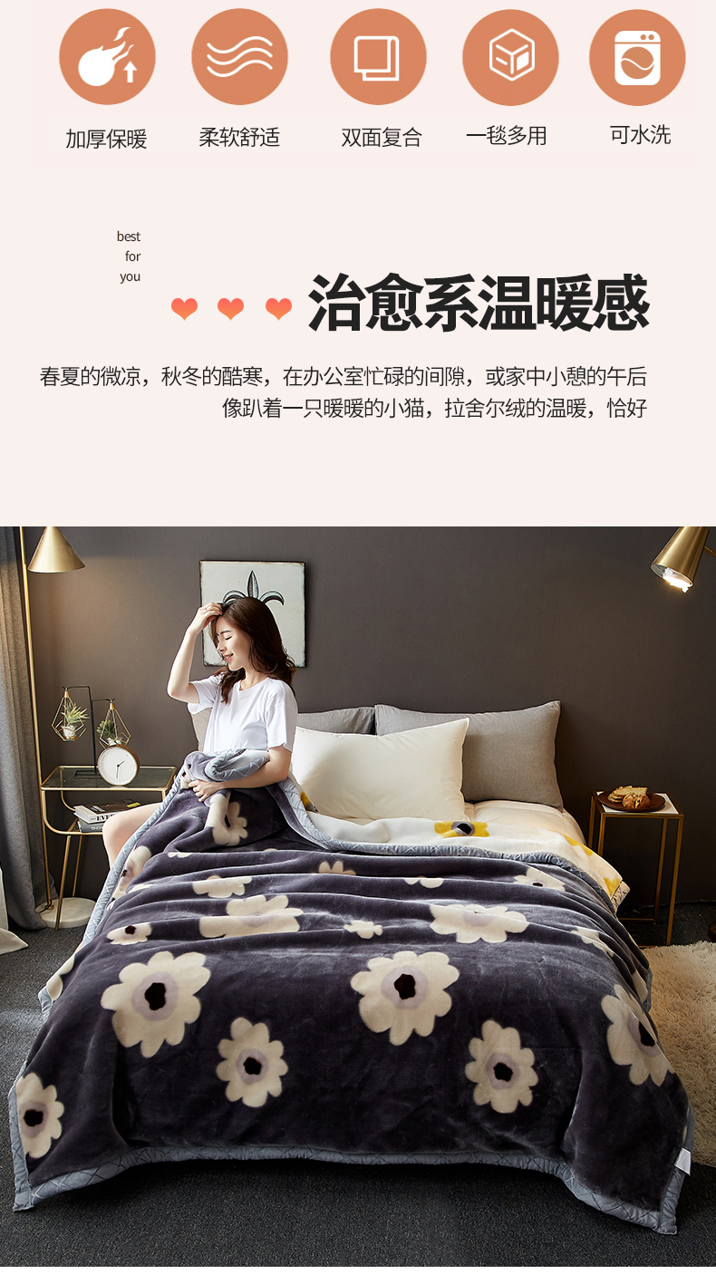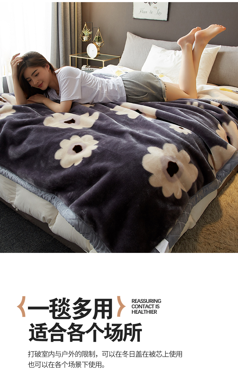 航途席业 2025新款拉舍尔毛毯盖毯 闭月羞花-蓝