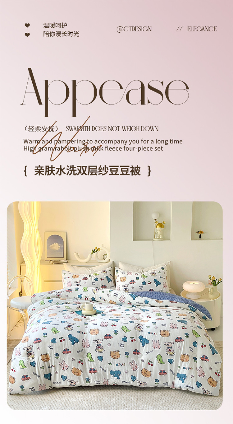 网客 2024新款亲肤水洗双层纱豆豆被 动物派对