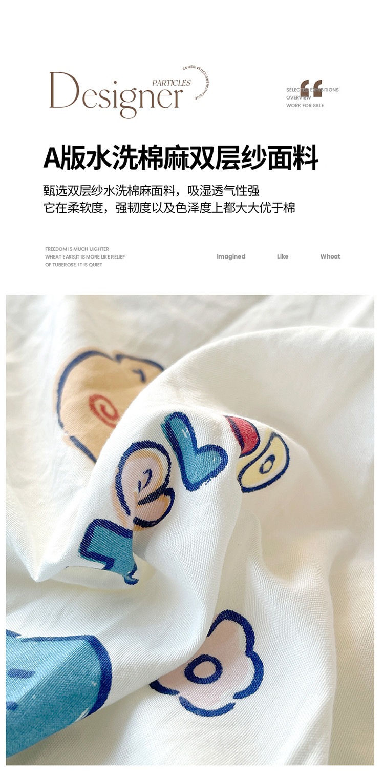 商品名称:网客 2024新款亲肤水洗双层纱豆豆被 动物派对