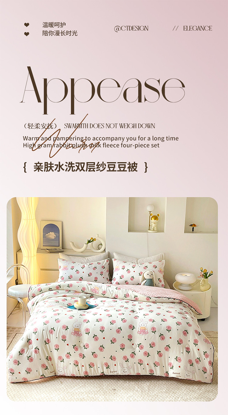 商品名称:网客 2024新款亲肤水洗双层纱豆豆被 郁金花兔