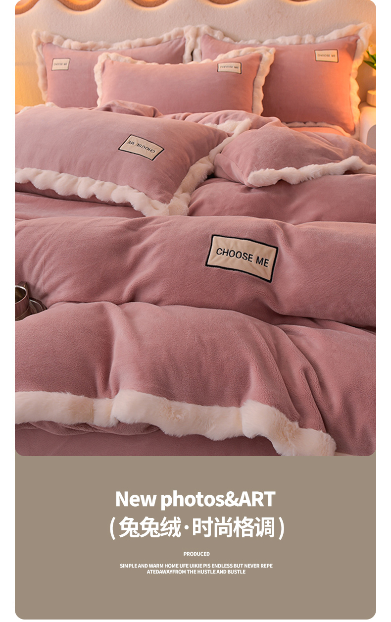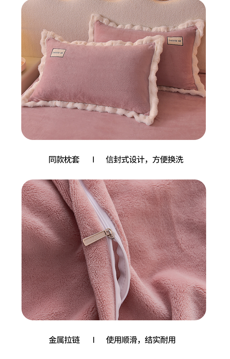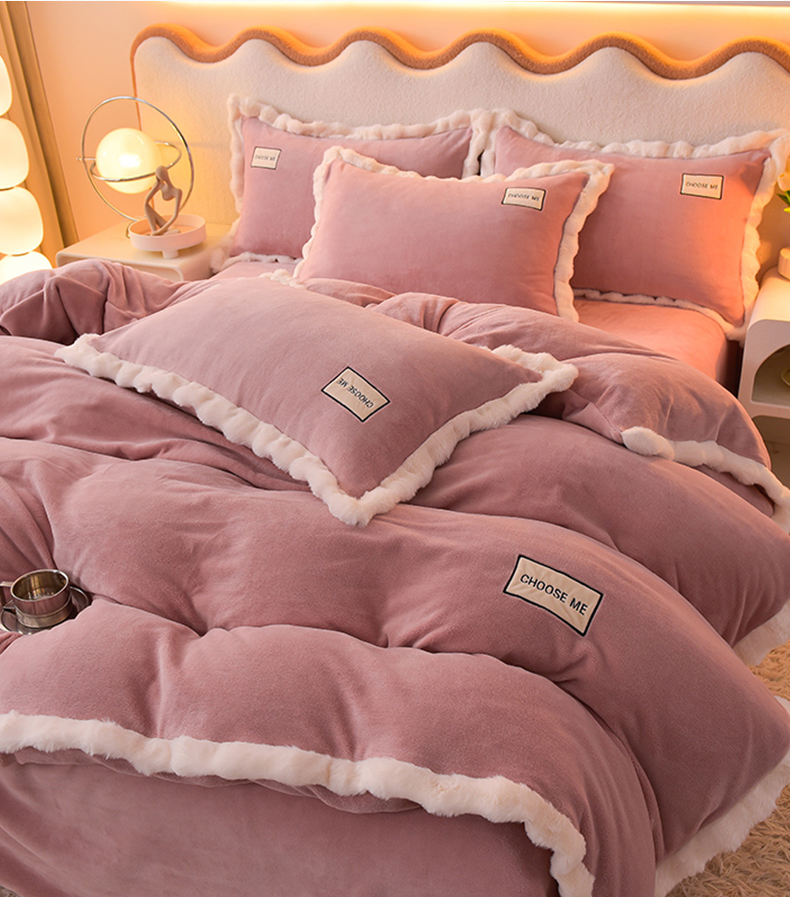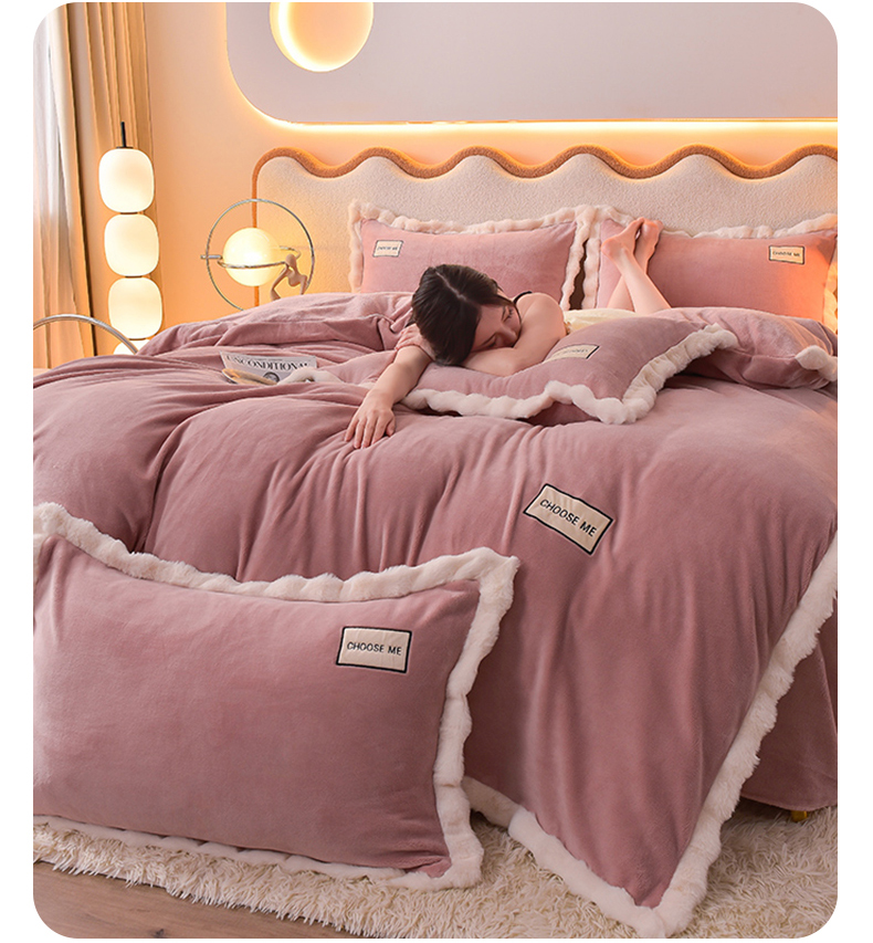 米奈家居 2025新款A类高克重牛奶绒四件套-卡洛琳 豆沙粉