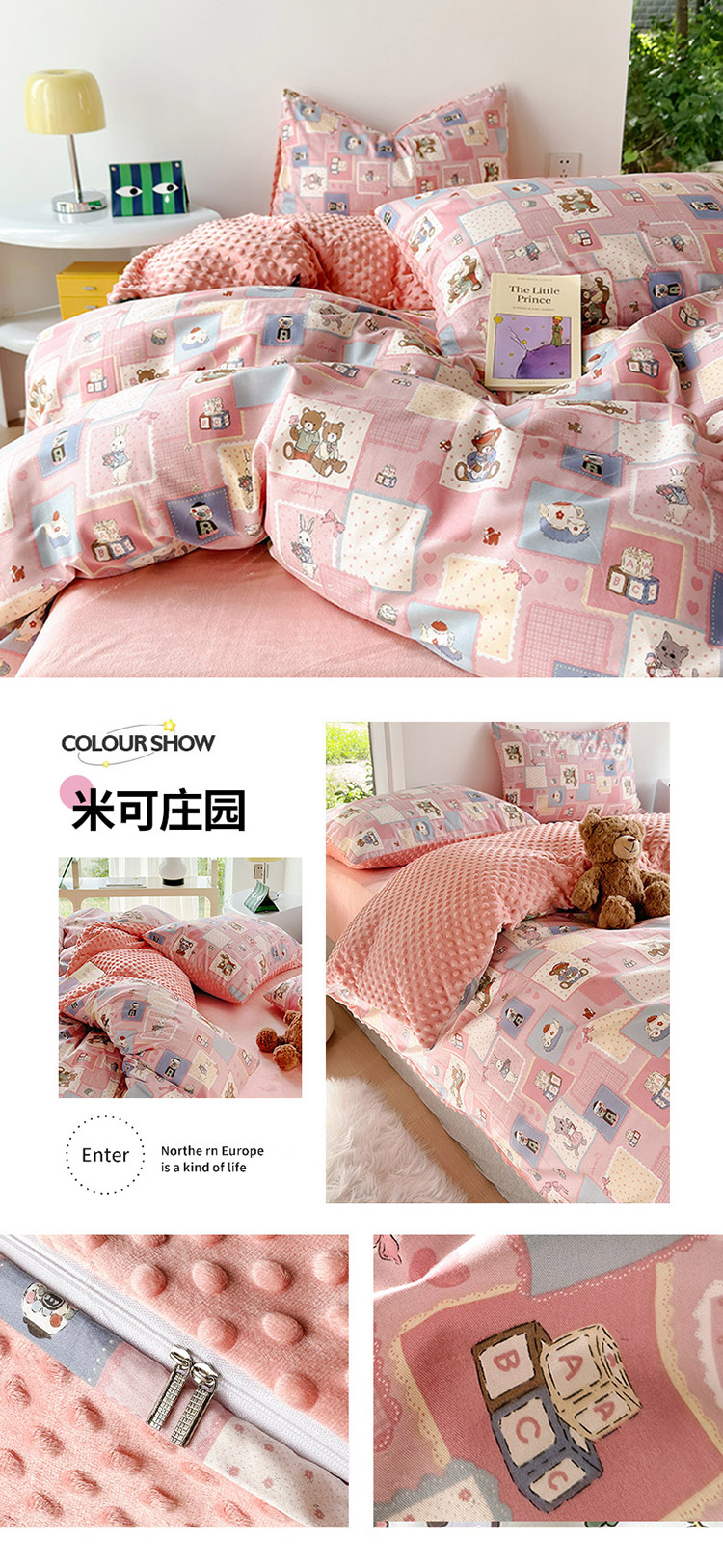 商品名称:怡家居 2023新款秋冬棉加豆豆绒印花四件套 米可庄园