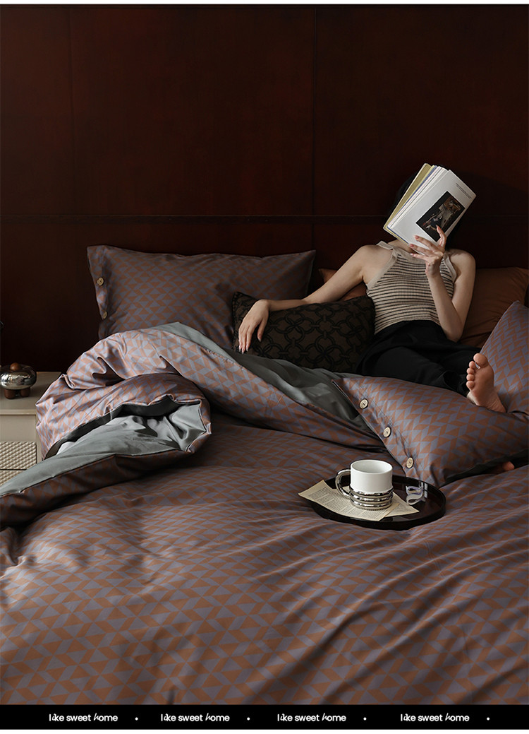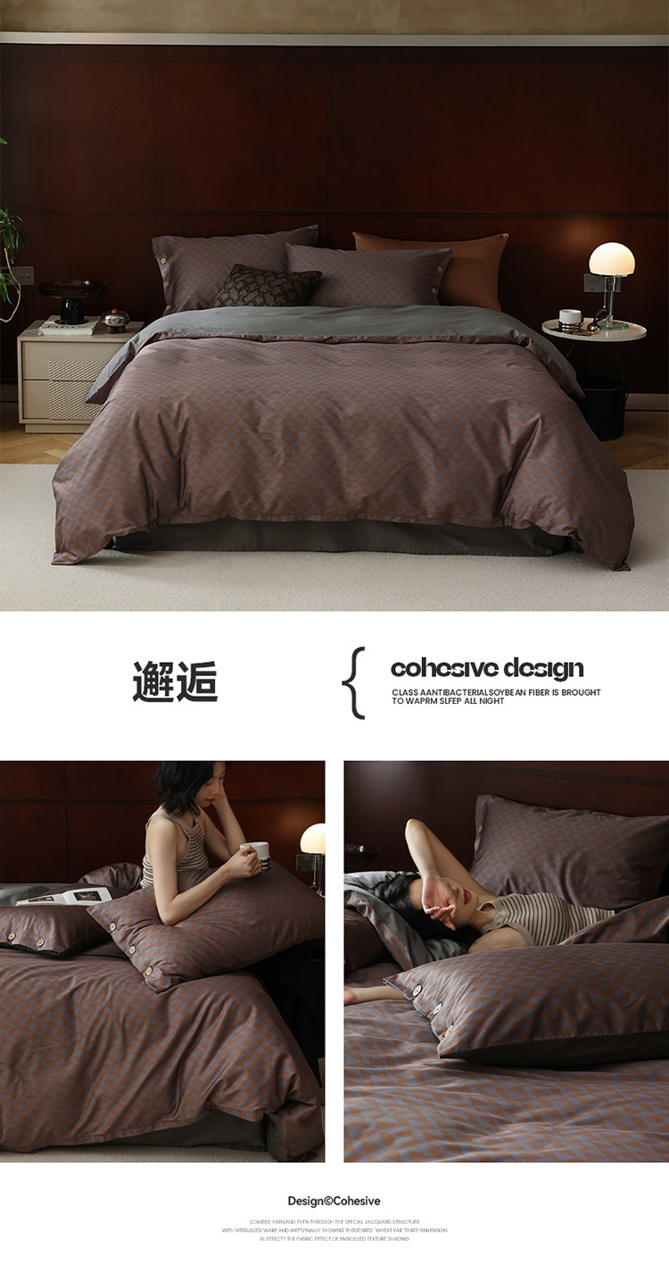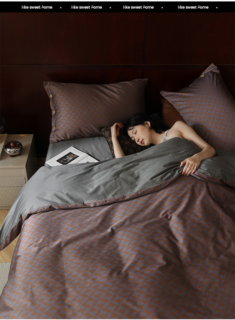 (总)寐眠 2025新款印花牛奶绒三角针贝壳款四件套,红蓝律动,黄绿森语,米韵红痕,墨格独白,暖黄千鸟,桃粉千鸟,雾灰千鸟,棕格时光