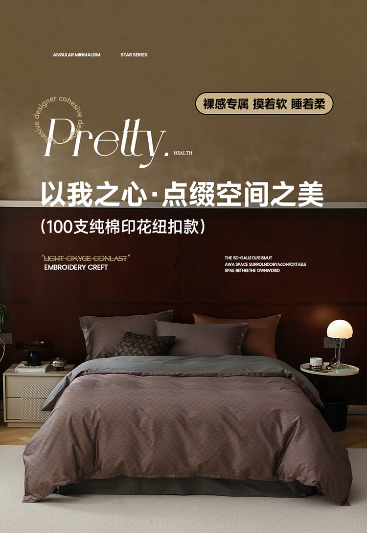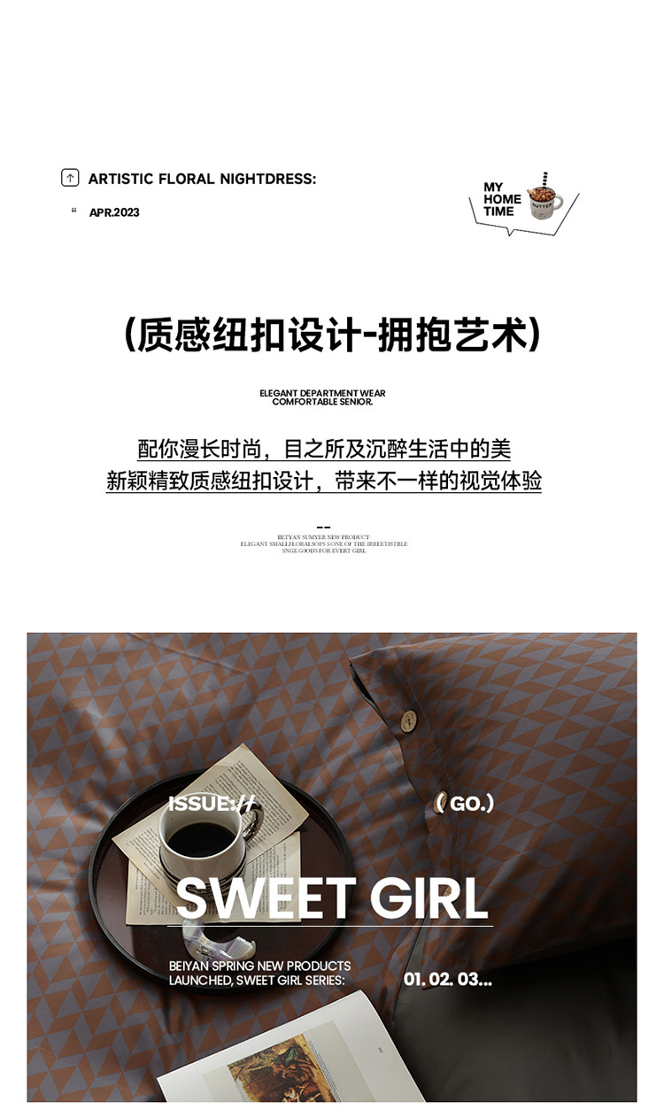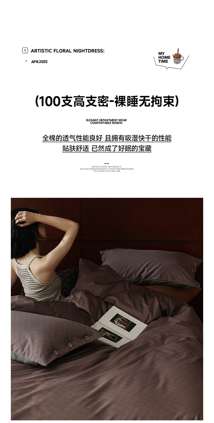 商品名称:寐眠 2023新款100支长绒棉全棉印花纽扣四件套 邂逅