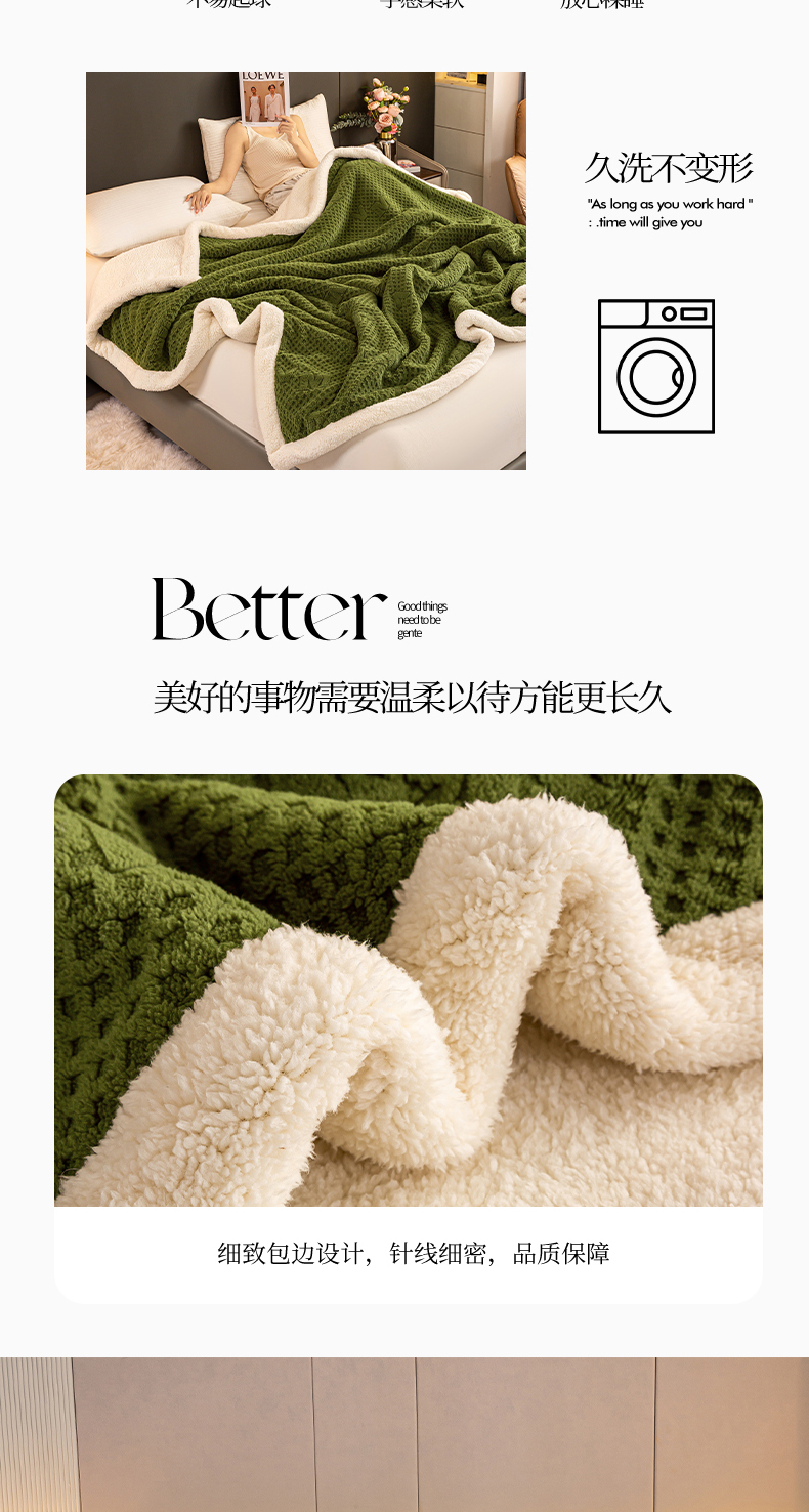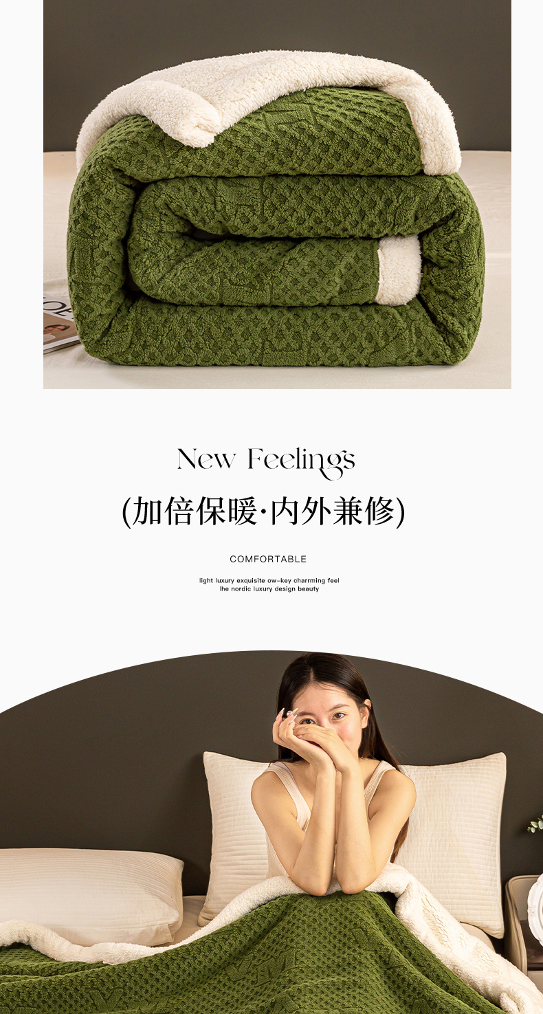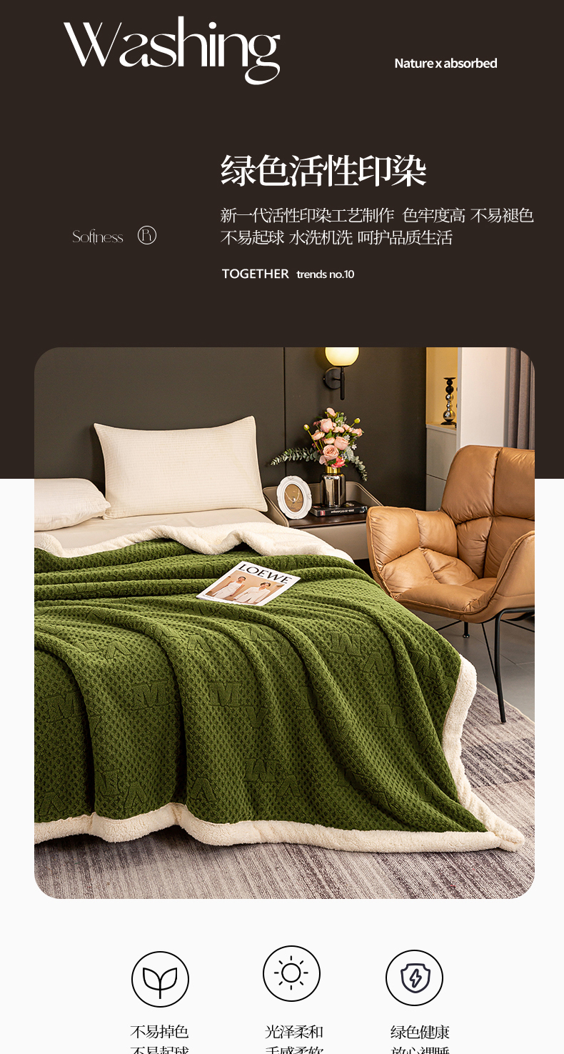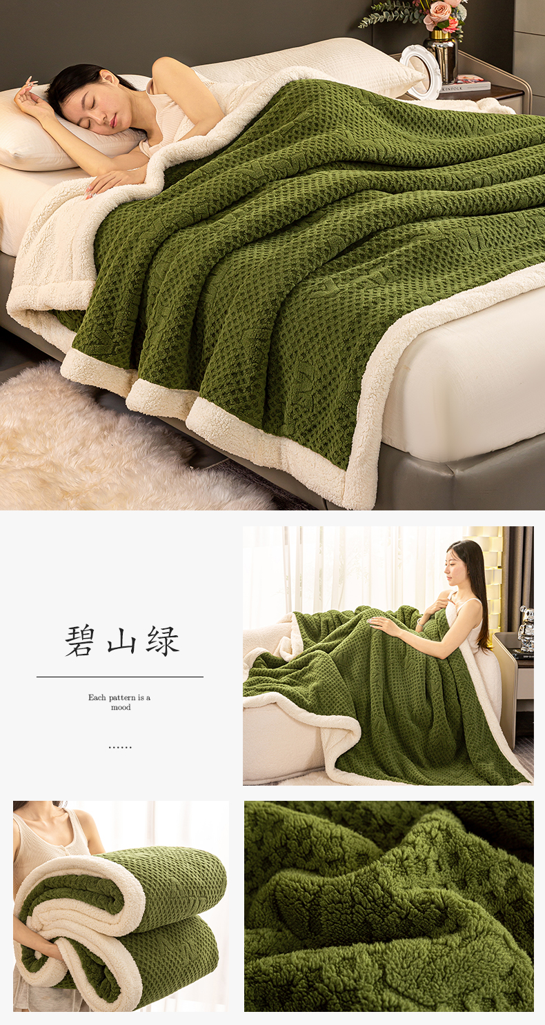 商品名称:慕木家纺 2025新款爆款加厚AB版提花雕花绒羊羔绒毛毯 碧山绿