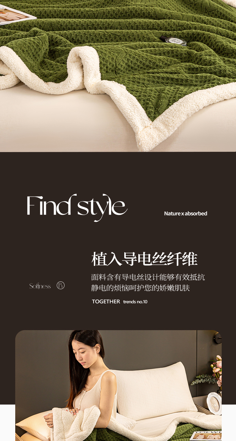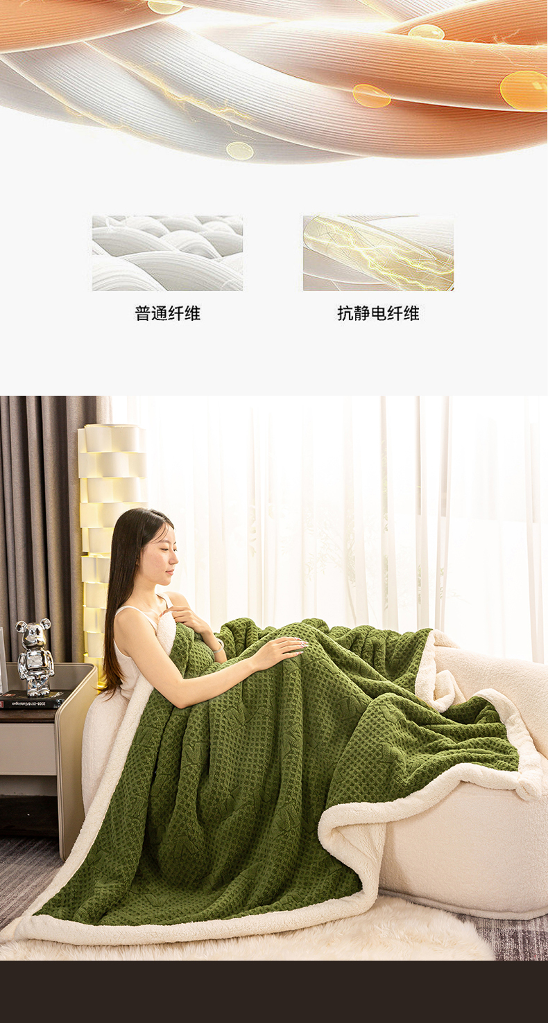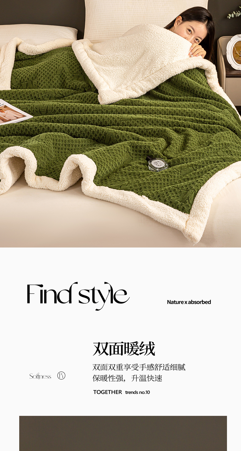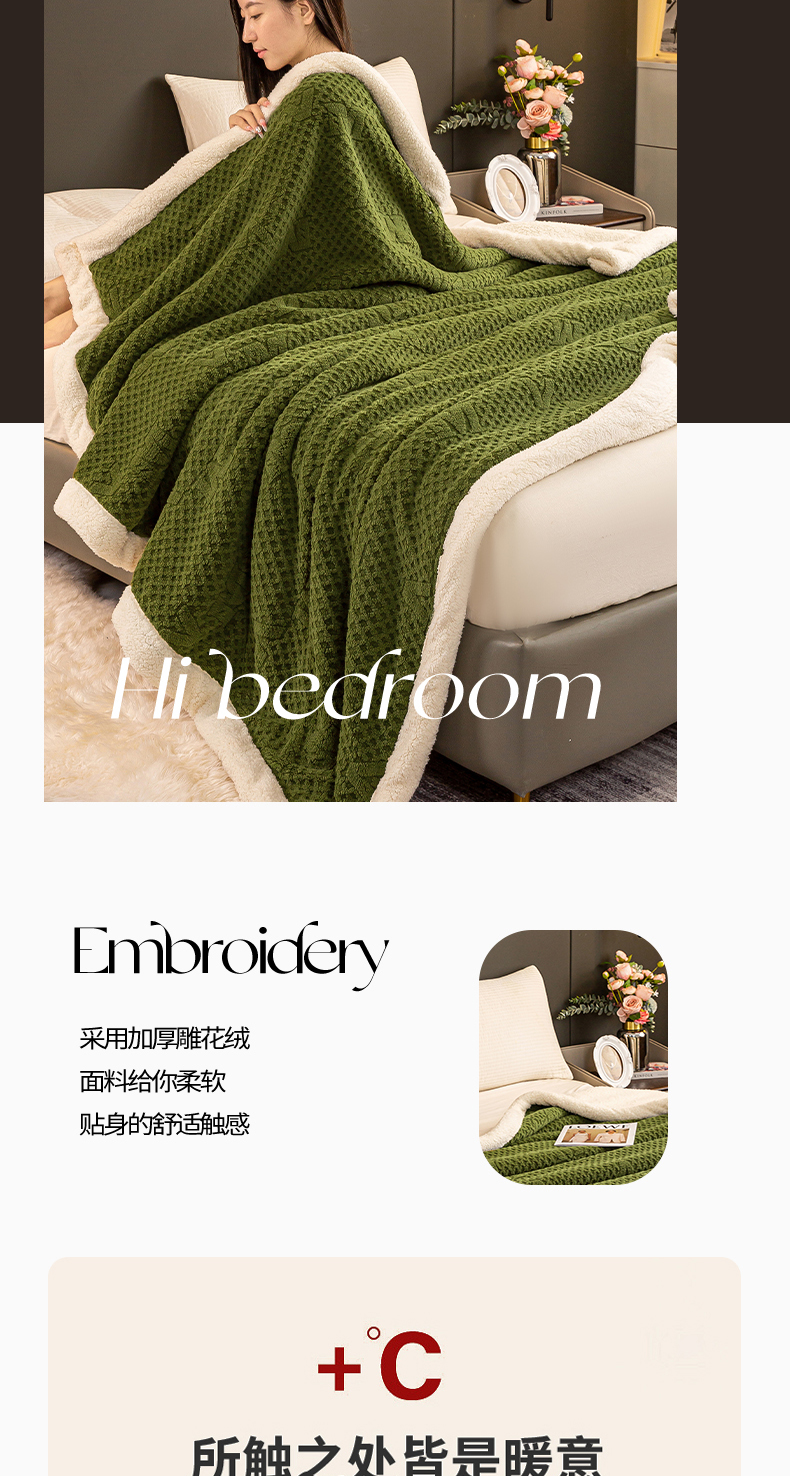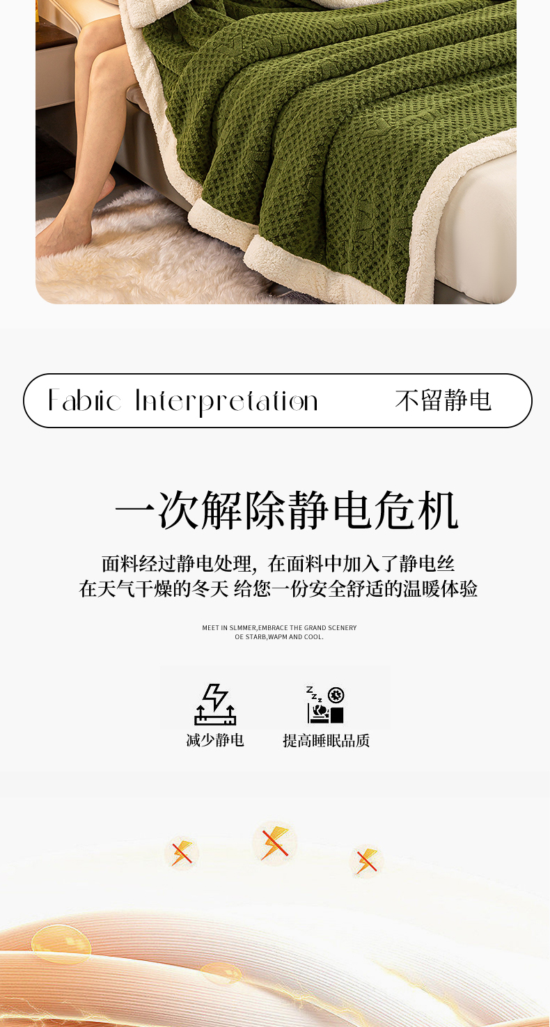 商品名称:慕木家纺 2025新款爆款加厚AB版提花雕花绒羊羔绒毛毯 碧山绿