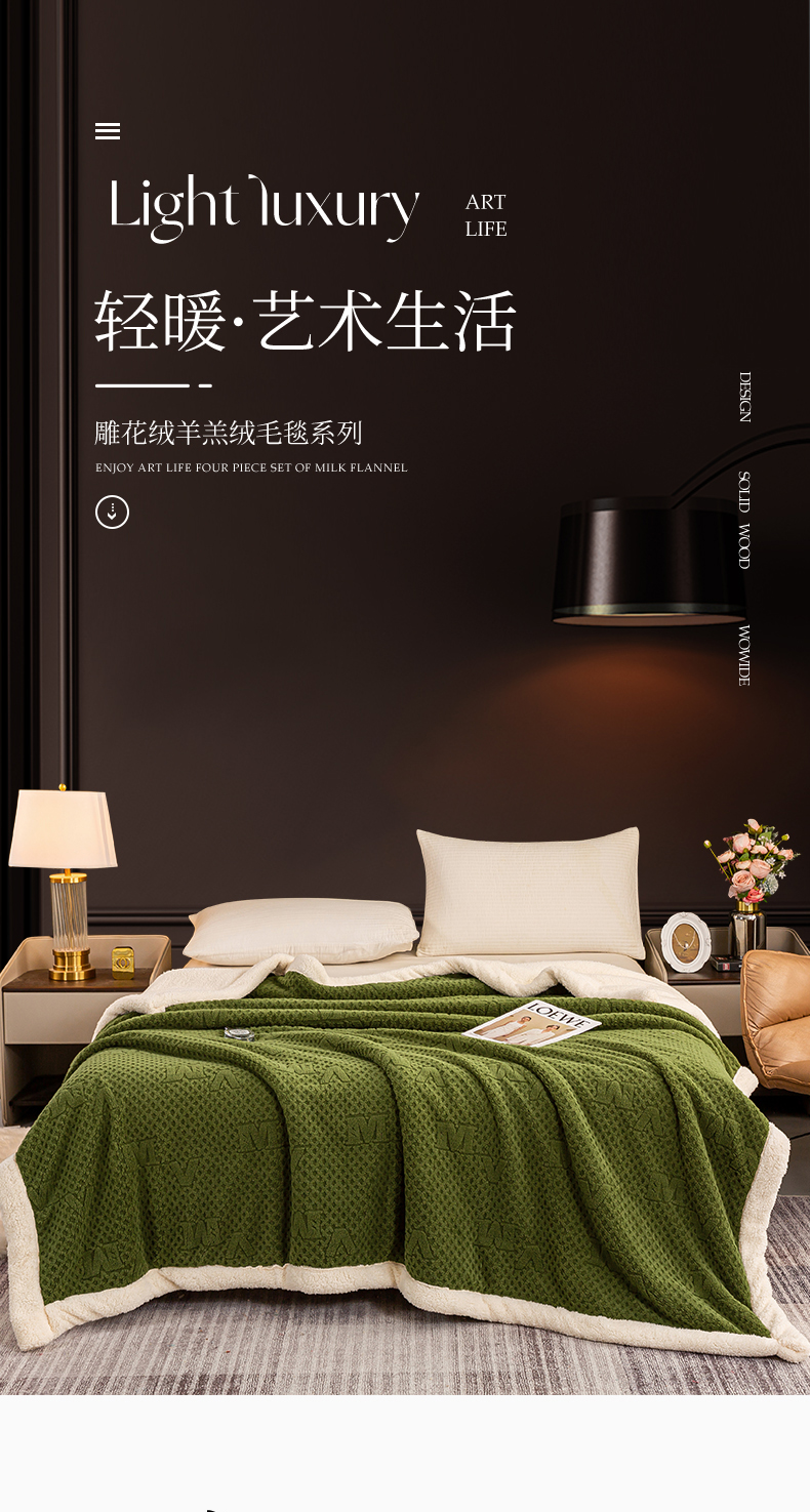 慕木家纺 2025新款爆款加厚AB版提花雕花绒羊羔绒毛毯 碧山绿