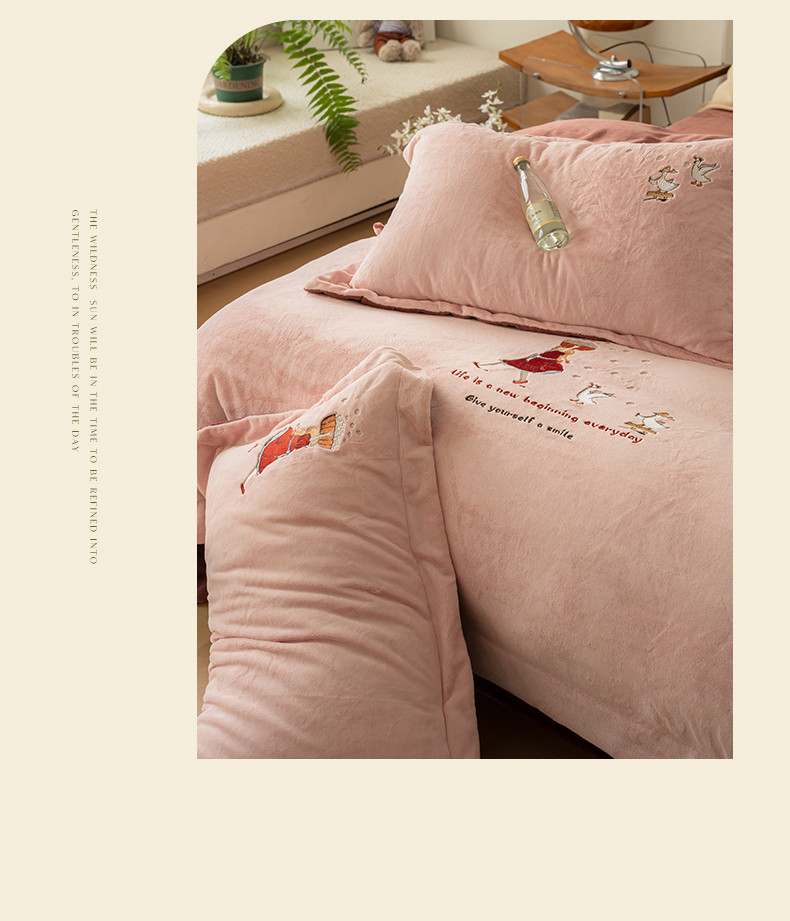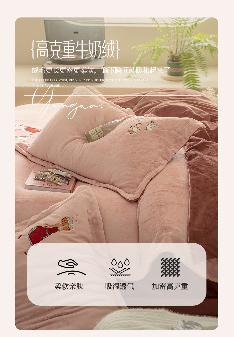 商品名称:名品优仓 2023新款高克重牛奶绒绣花四件套-安吉拉 安吉拉-浅樱粉
