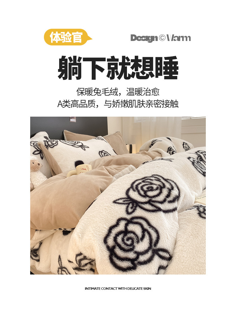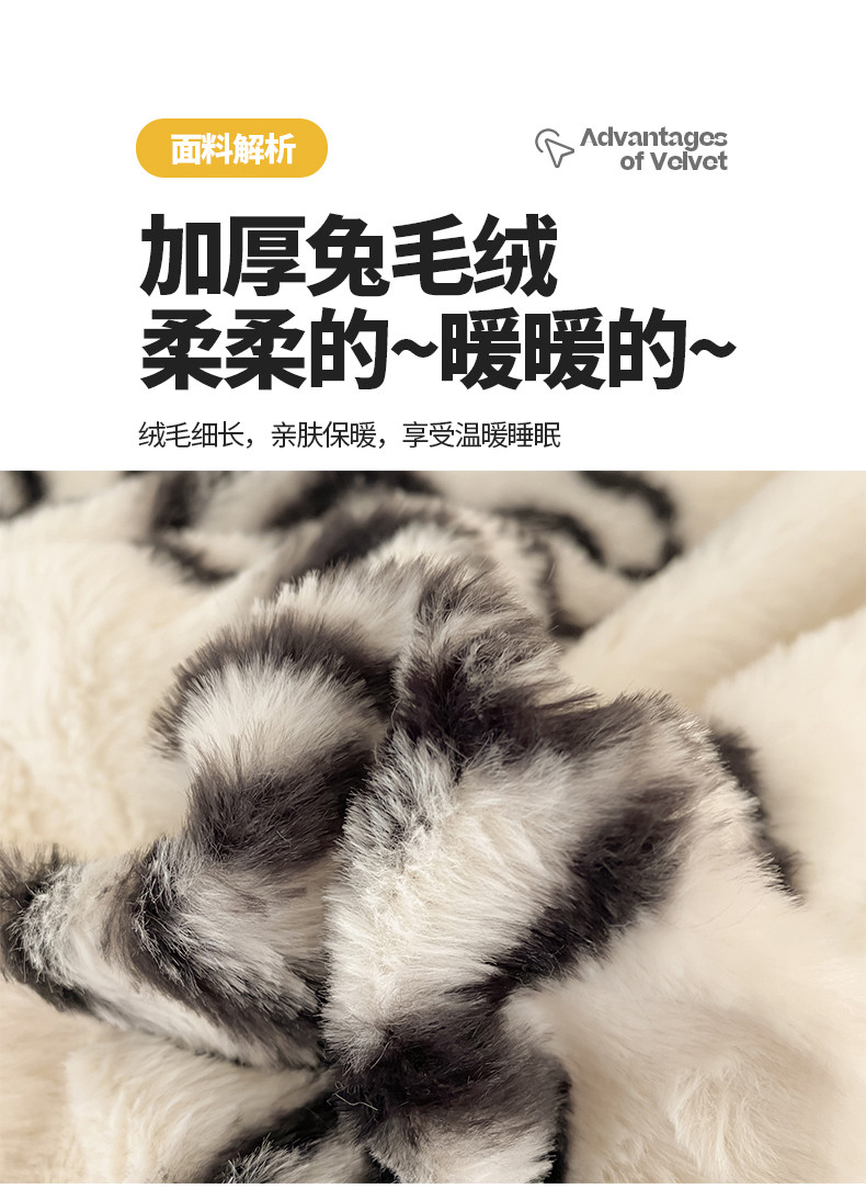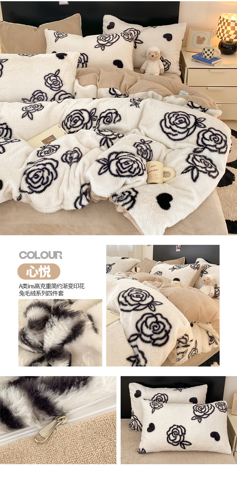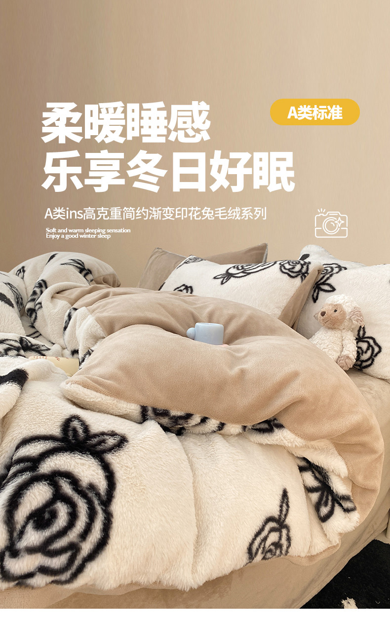 A类ins高克重320克简约渐变印花兔毛绒暖绒加厚牛奶绒系列四件套 绒兔毛-心悦