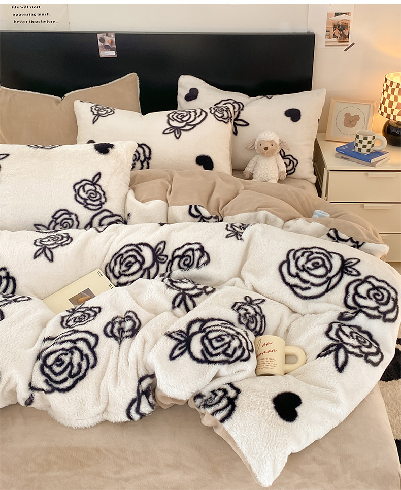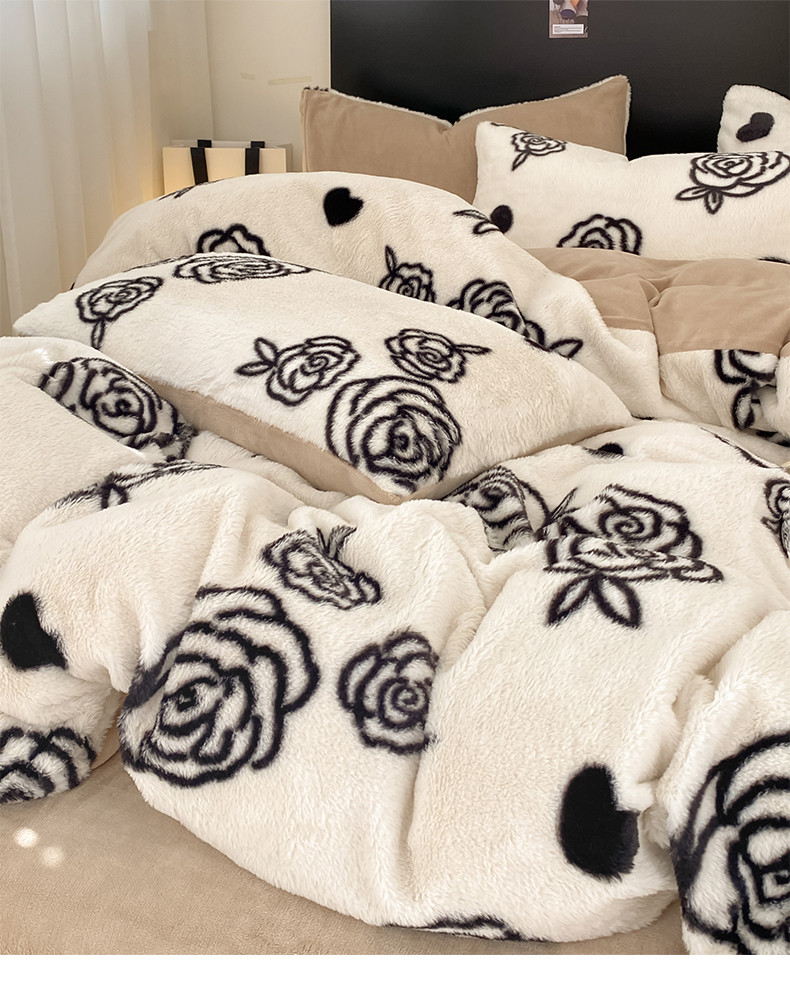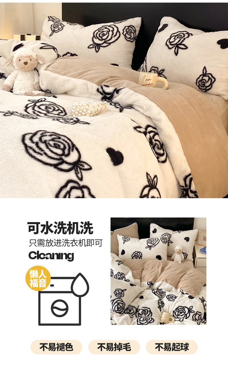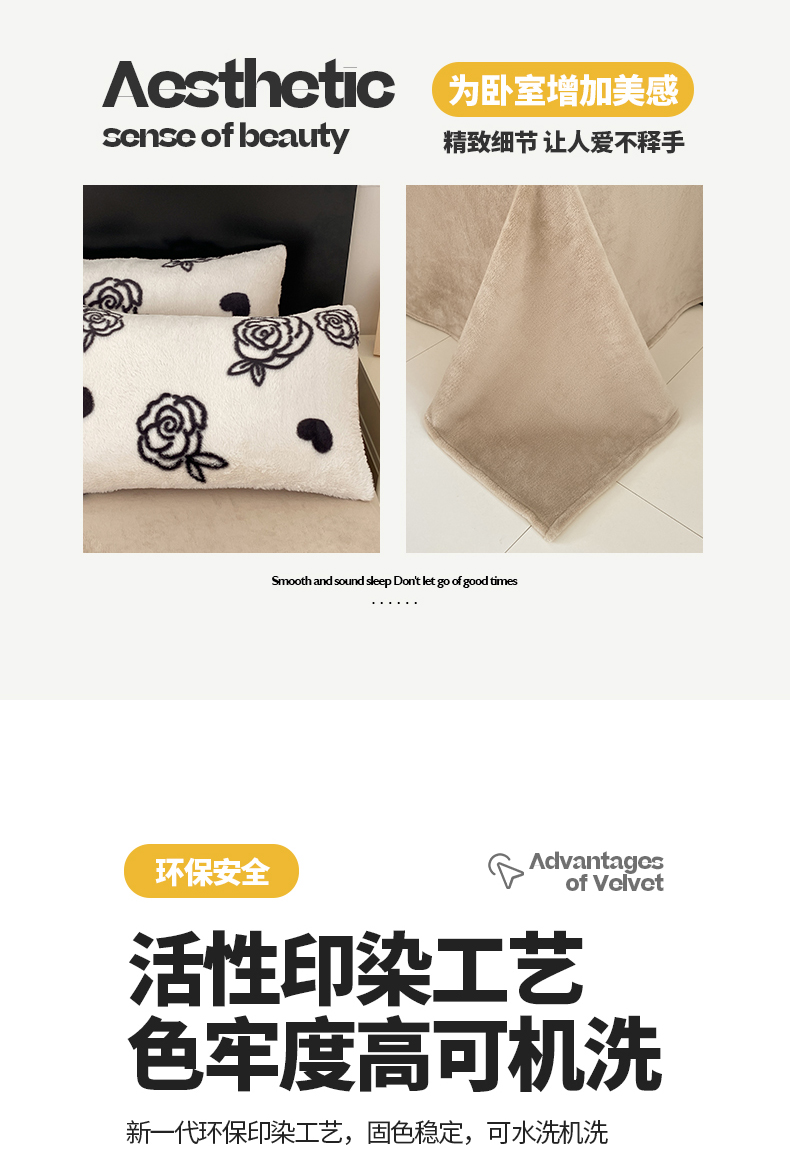 A类ins高克重320克简约渐变印花兔毛绒暖绒加厚牛奶绒系列四件套 绒兔毛-心悦