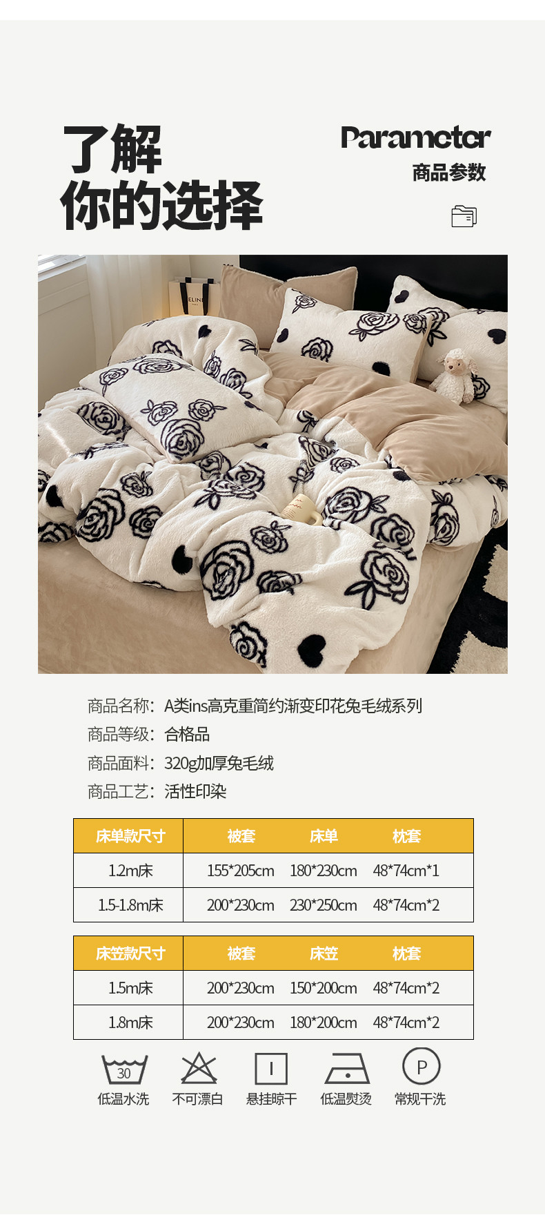 商品名称:A类ins高克重320克简约渐变印花兔毛绒暖绒加厚牛奶绒系列四件套 绒兔毛-心悦