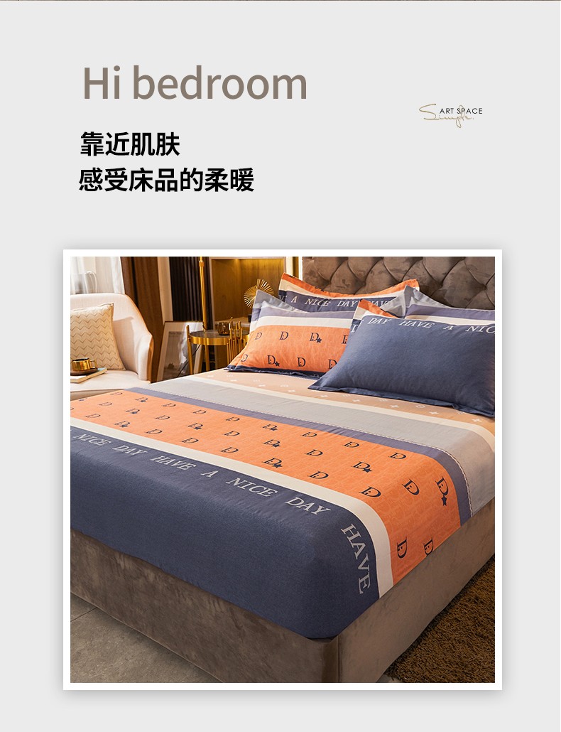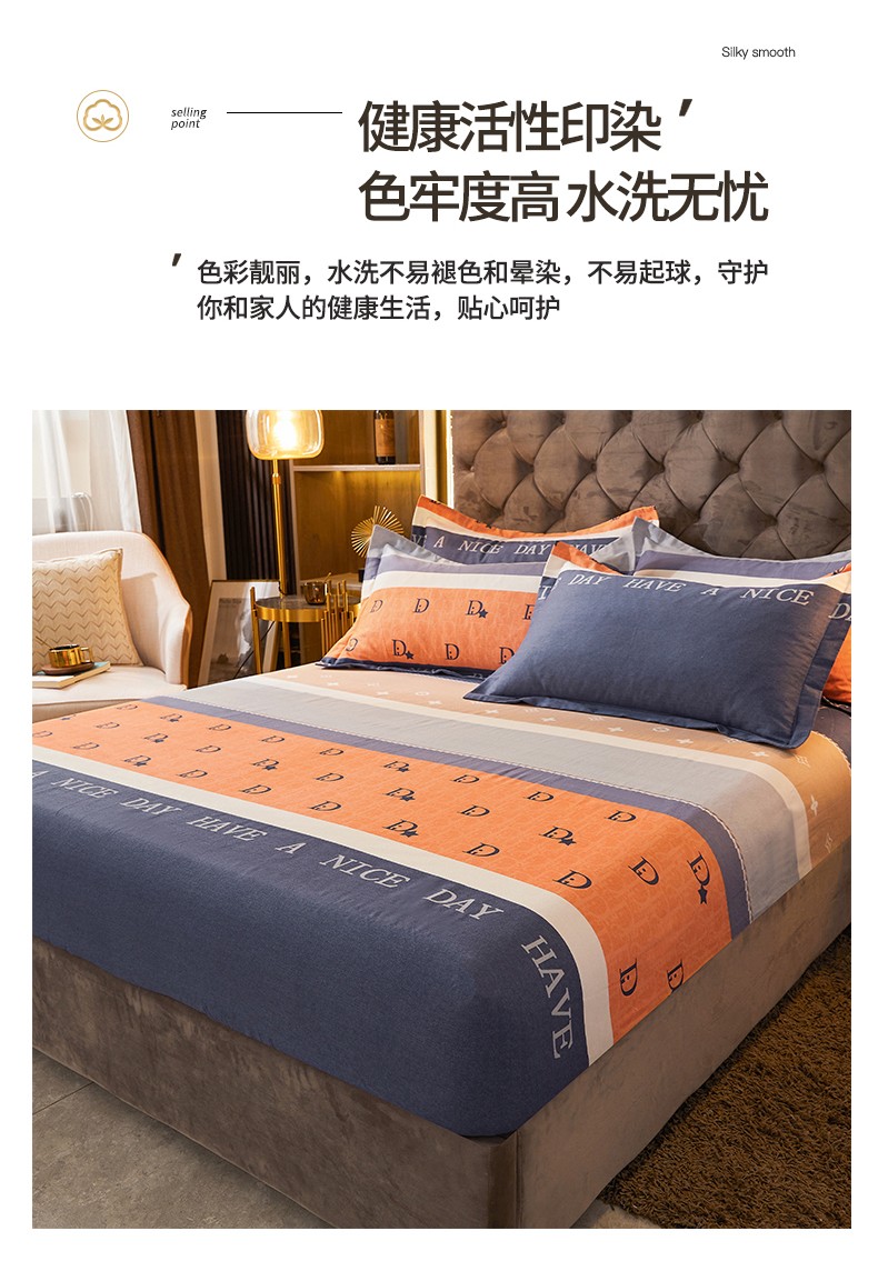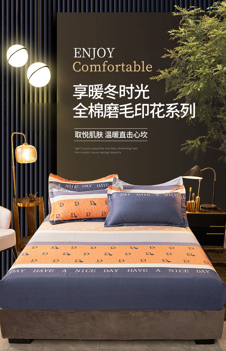 • 91家纺网 家纺一手货源 找家纺 伊而梦 2023新款全棉磨毛印花四件套系列单品床笠 时尚大牌-桔