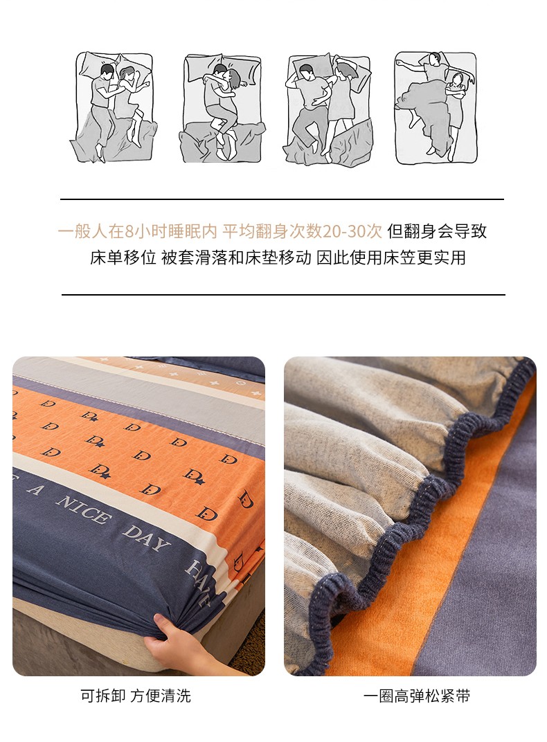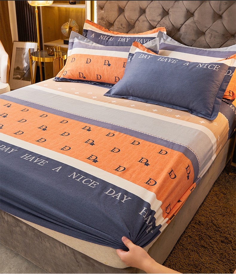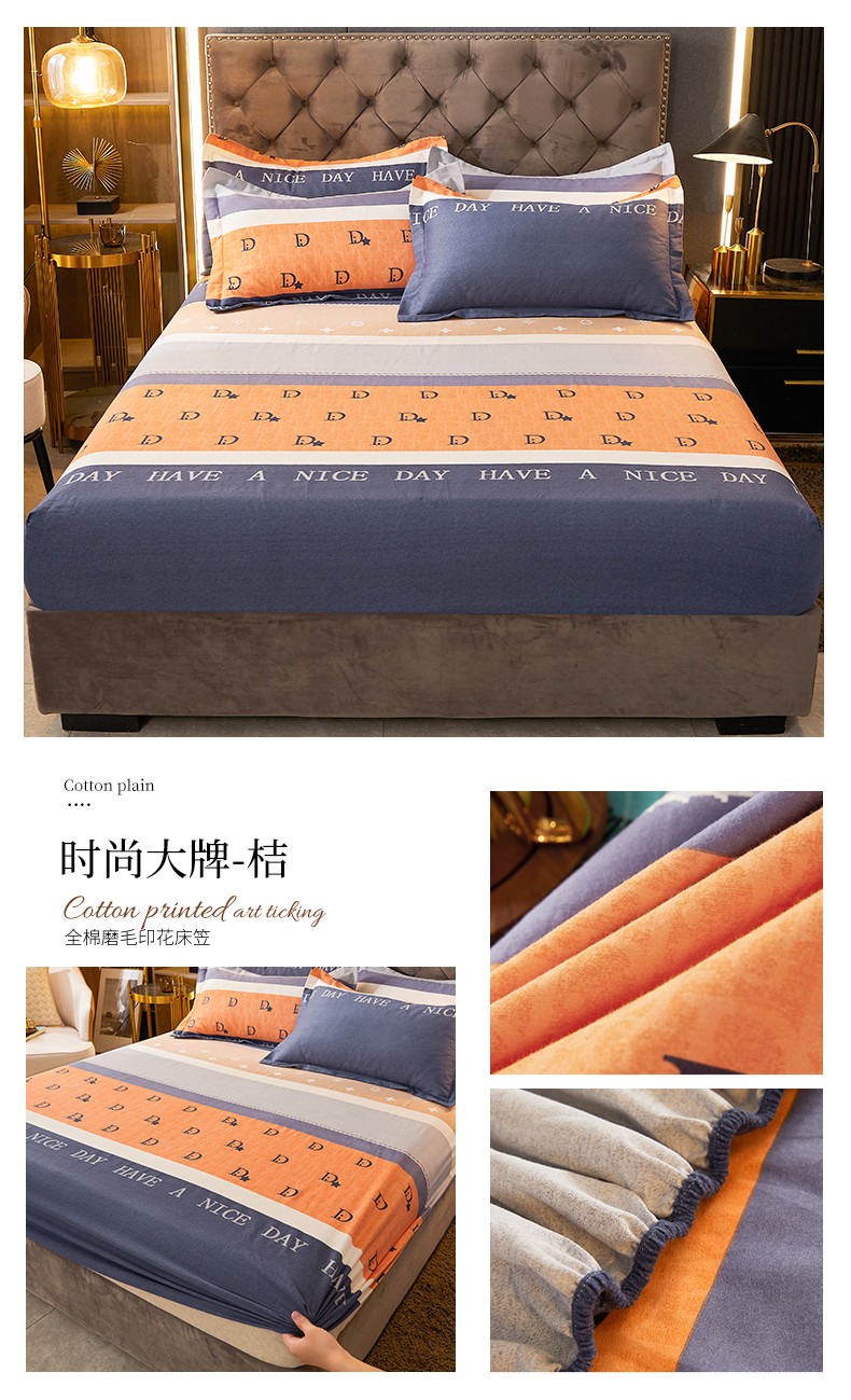 伊而梦 2023新款全棉磨毛印花四件套系列单品床笠 时尚大牌-桔