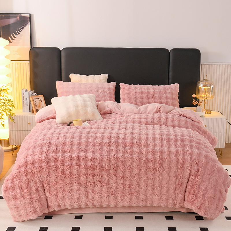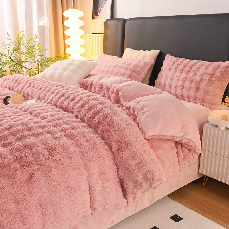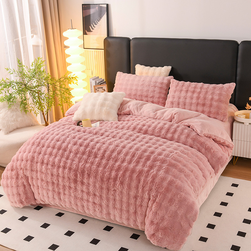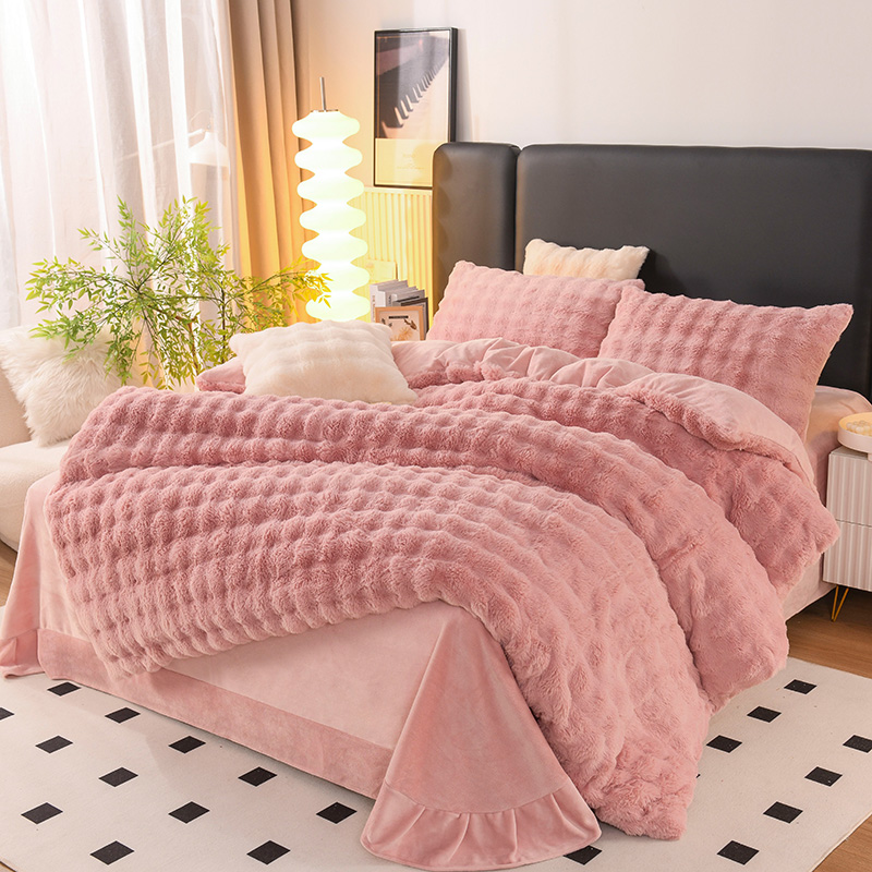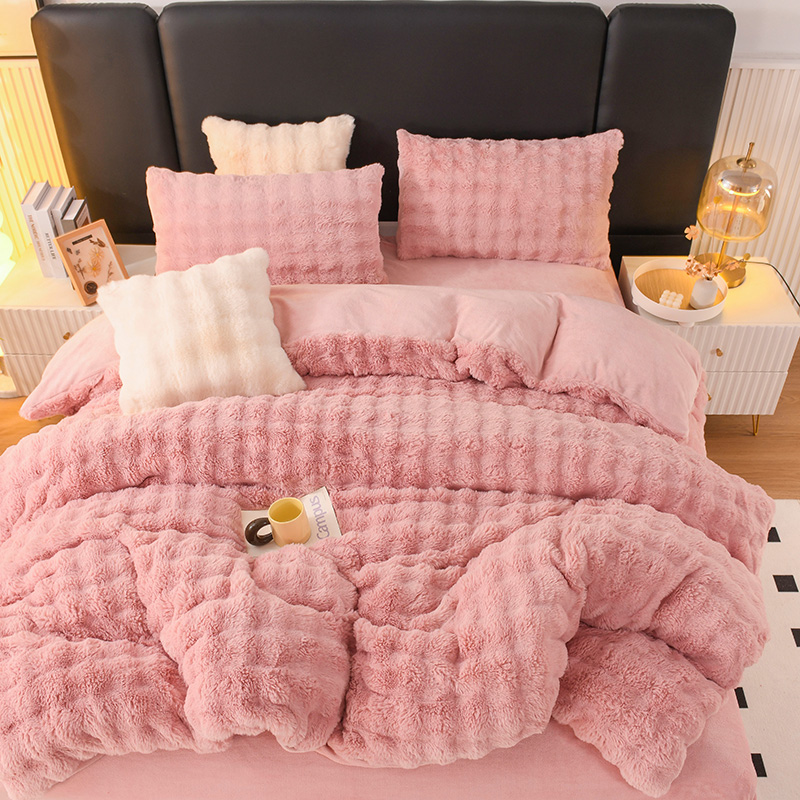 商品名称:寐时代 2023新款亲肤舒适高克重加厚保暖兔毛四件套 豆沙粉