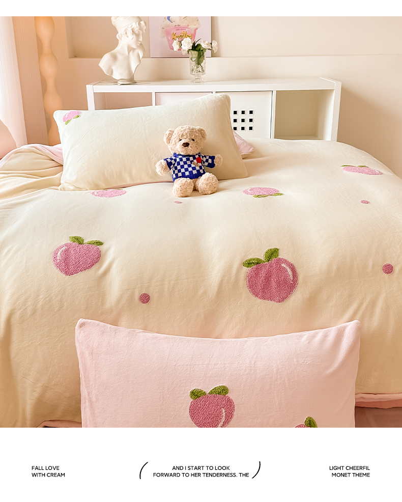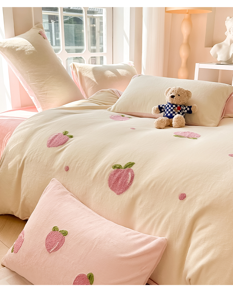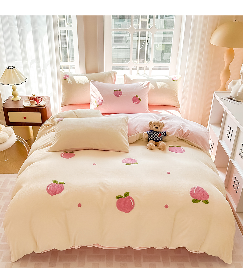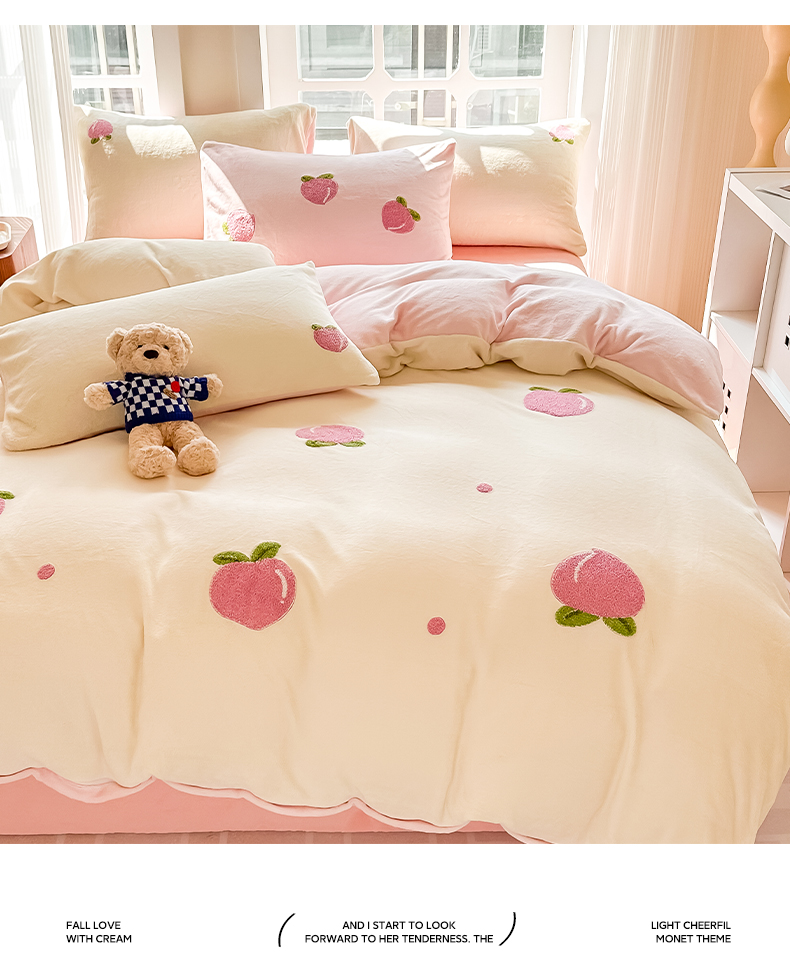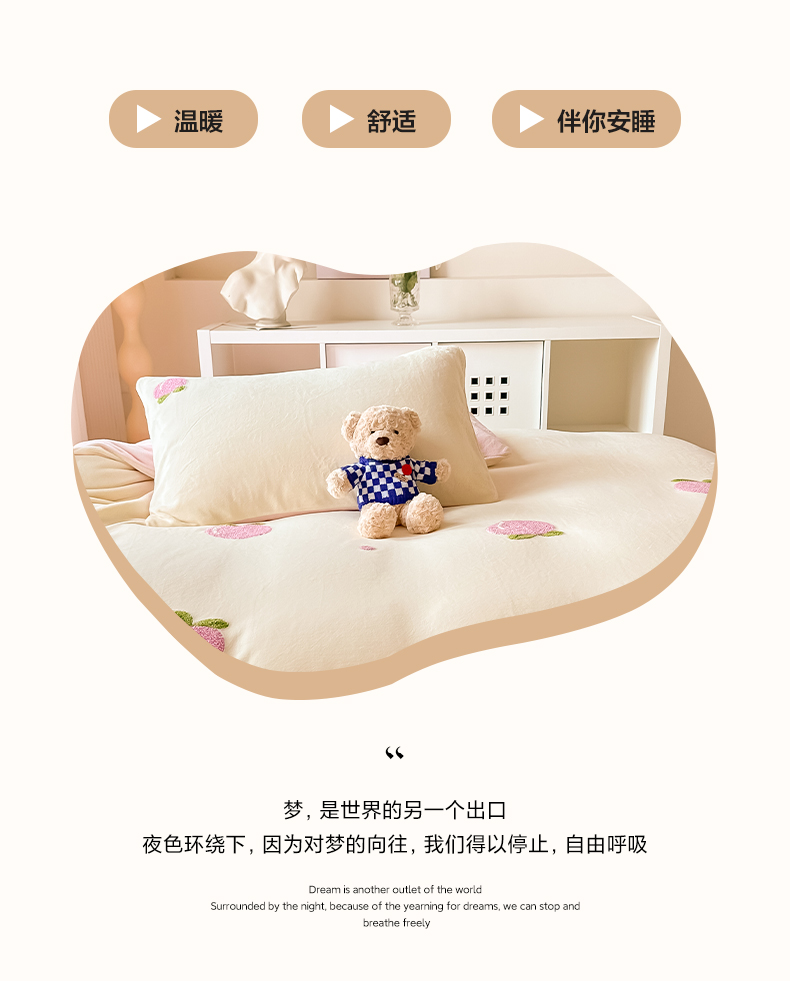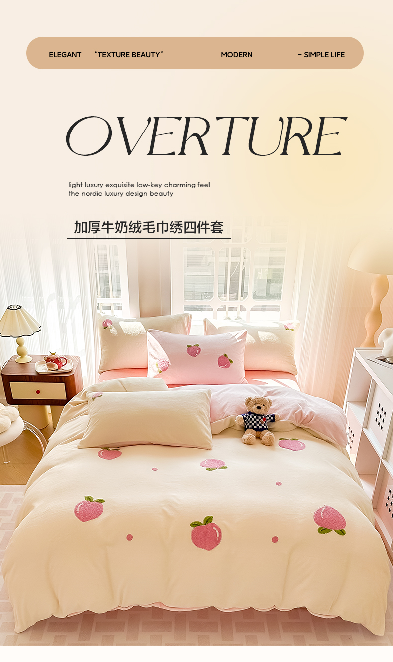 当前位置: 91家纺网 > 商品网购 > 床品套件 > 四件套 > 牛奶绒四件套 > 眠屿家纺 2023新款牛奶绒毛巾绣四件套(温馨版) 水蜜桃