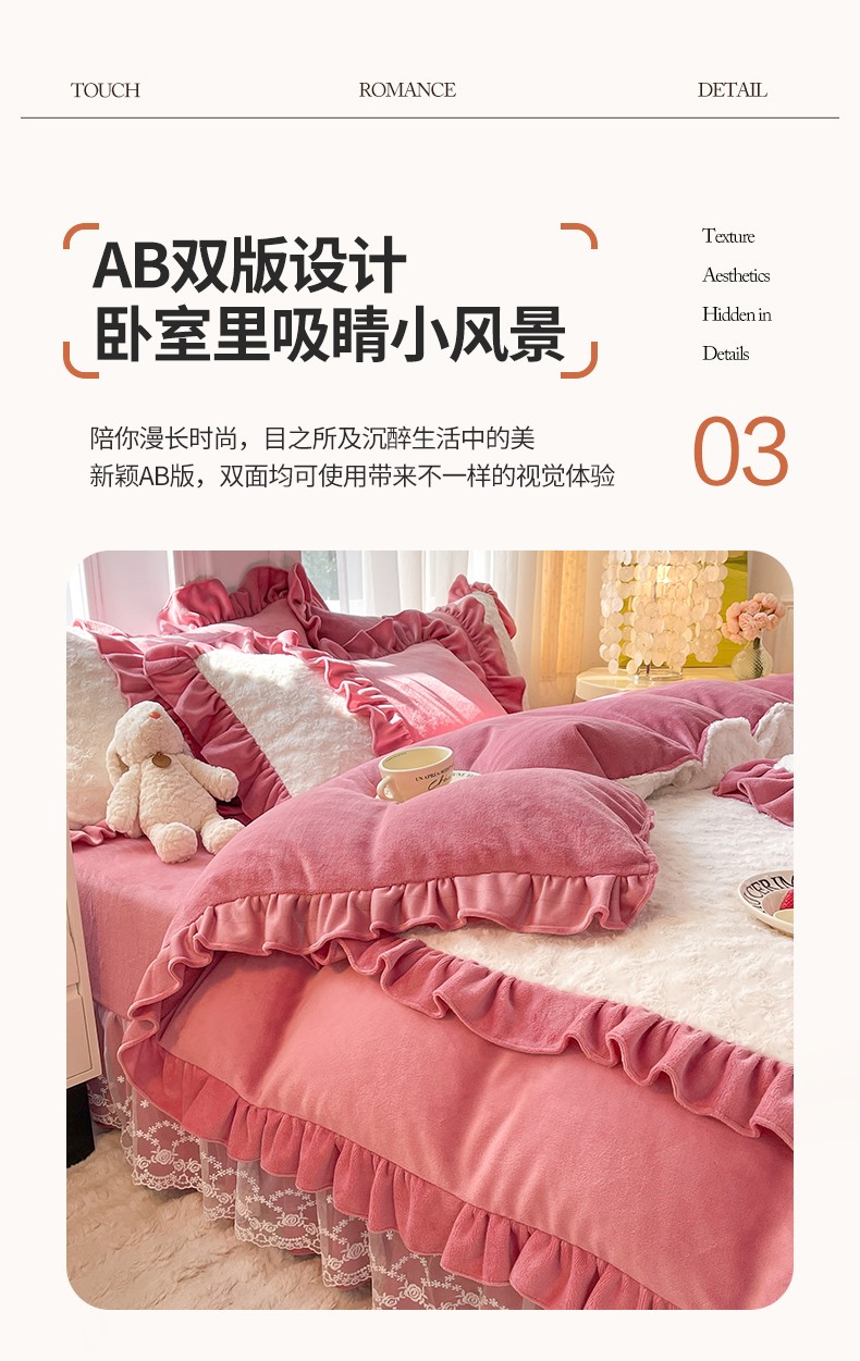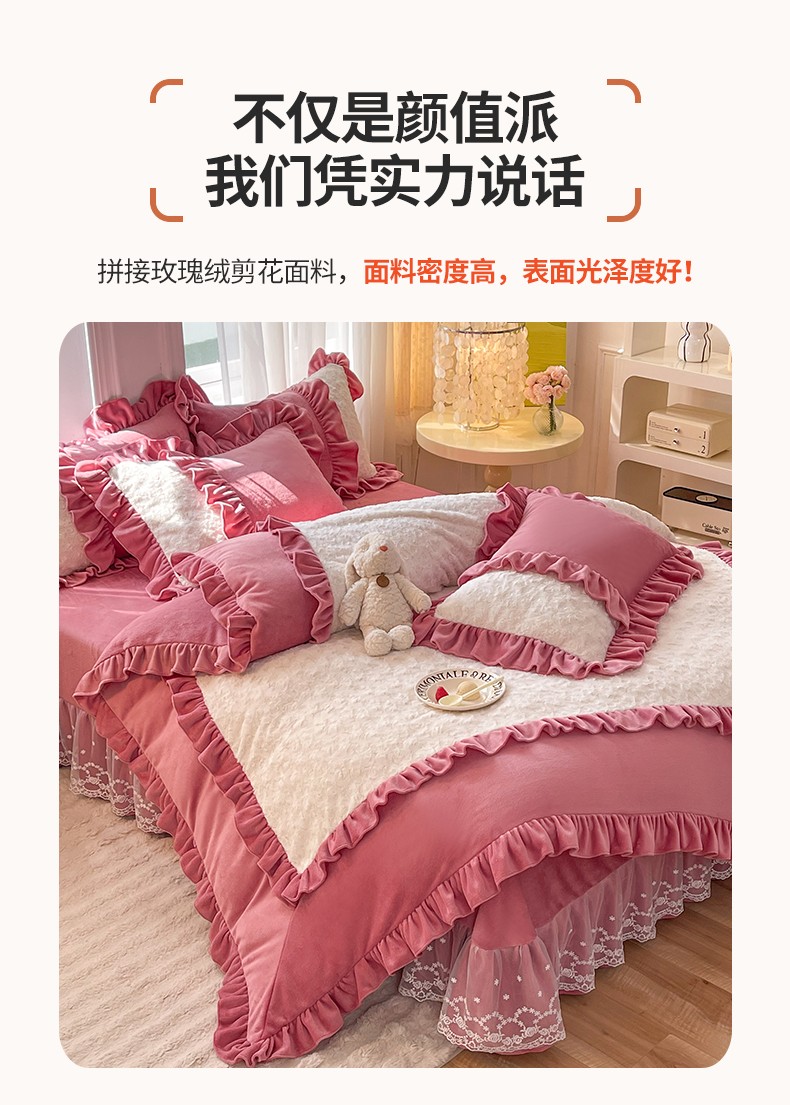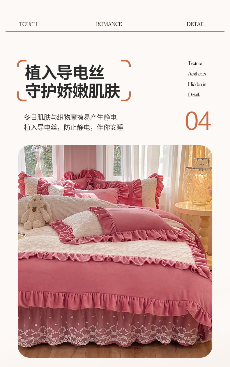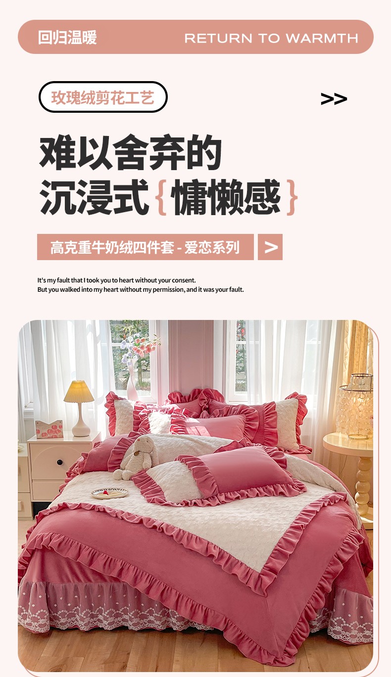 当前位置: 91家纺网 > 商品网购 > 床品套件 > 四件套 > 牛奶绒四件套 > 芭比蔓 2024新款高克重牛奶绒四件套-爱恋系列 爱恋-甜豆沙