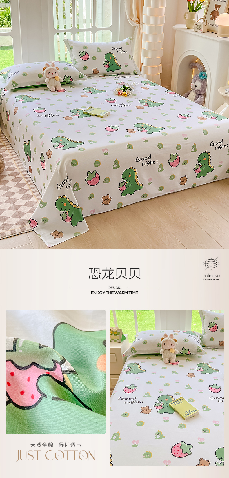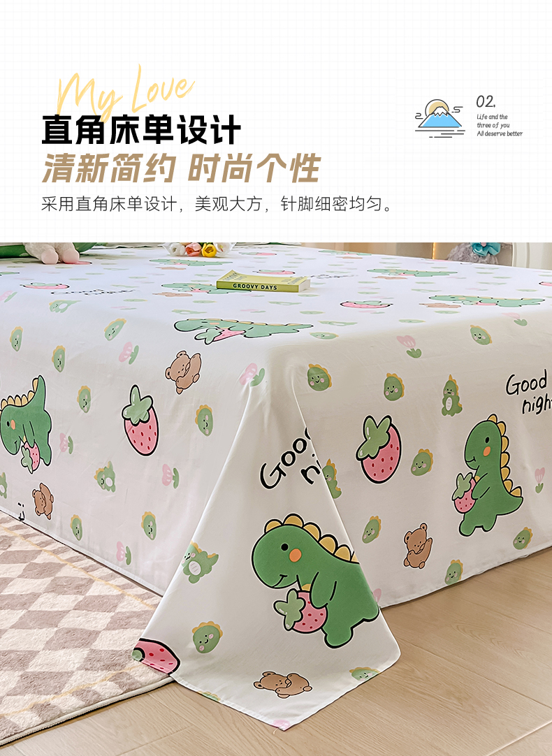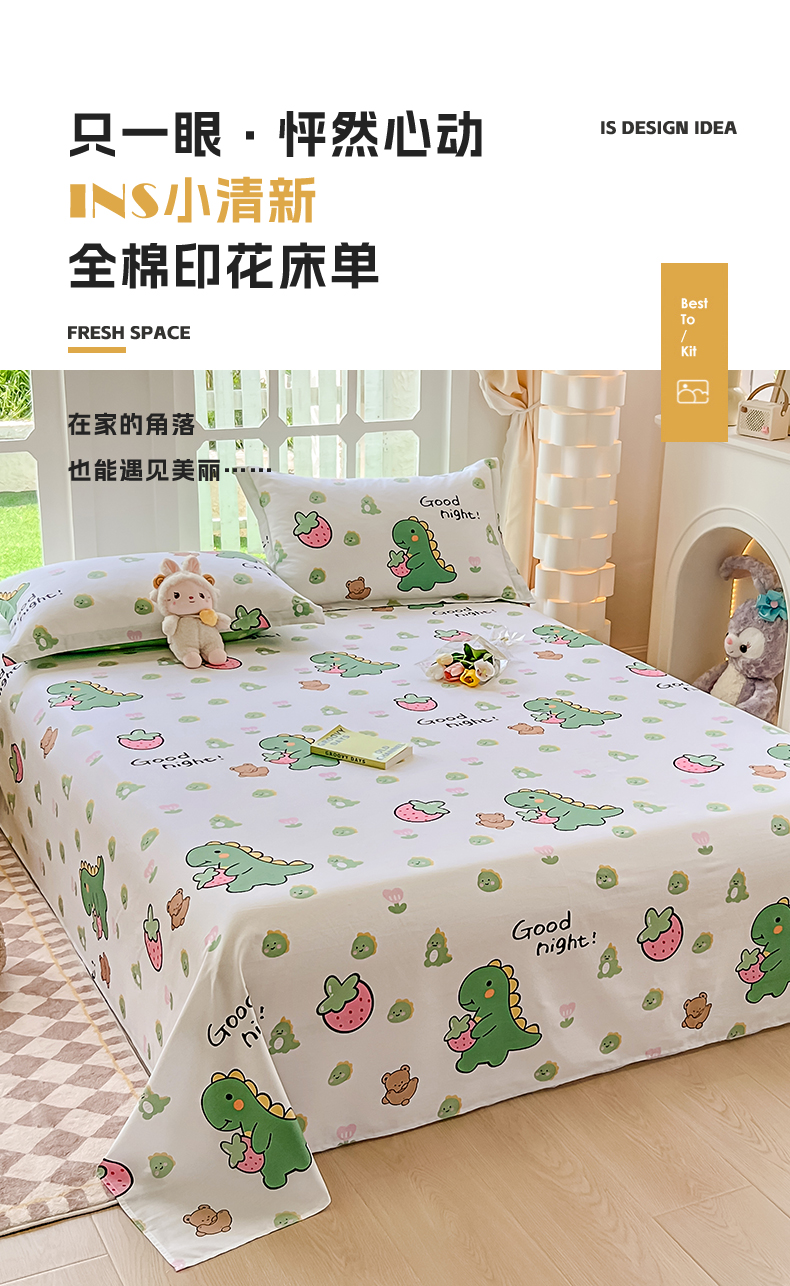 绵庭家纺 2023新款12868系列全棉小清新印花单床单 恐龙贝贝